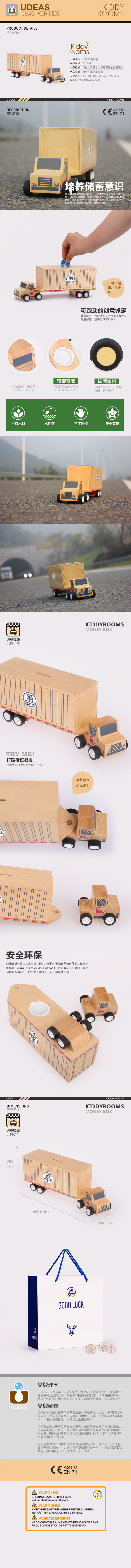UDEAS品牌小运仓联名木制集装箱卡车储钱罐