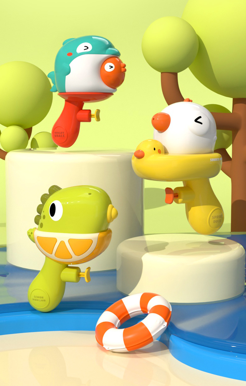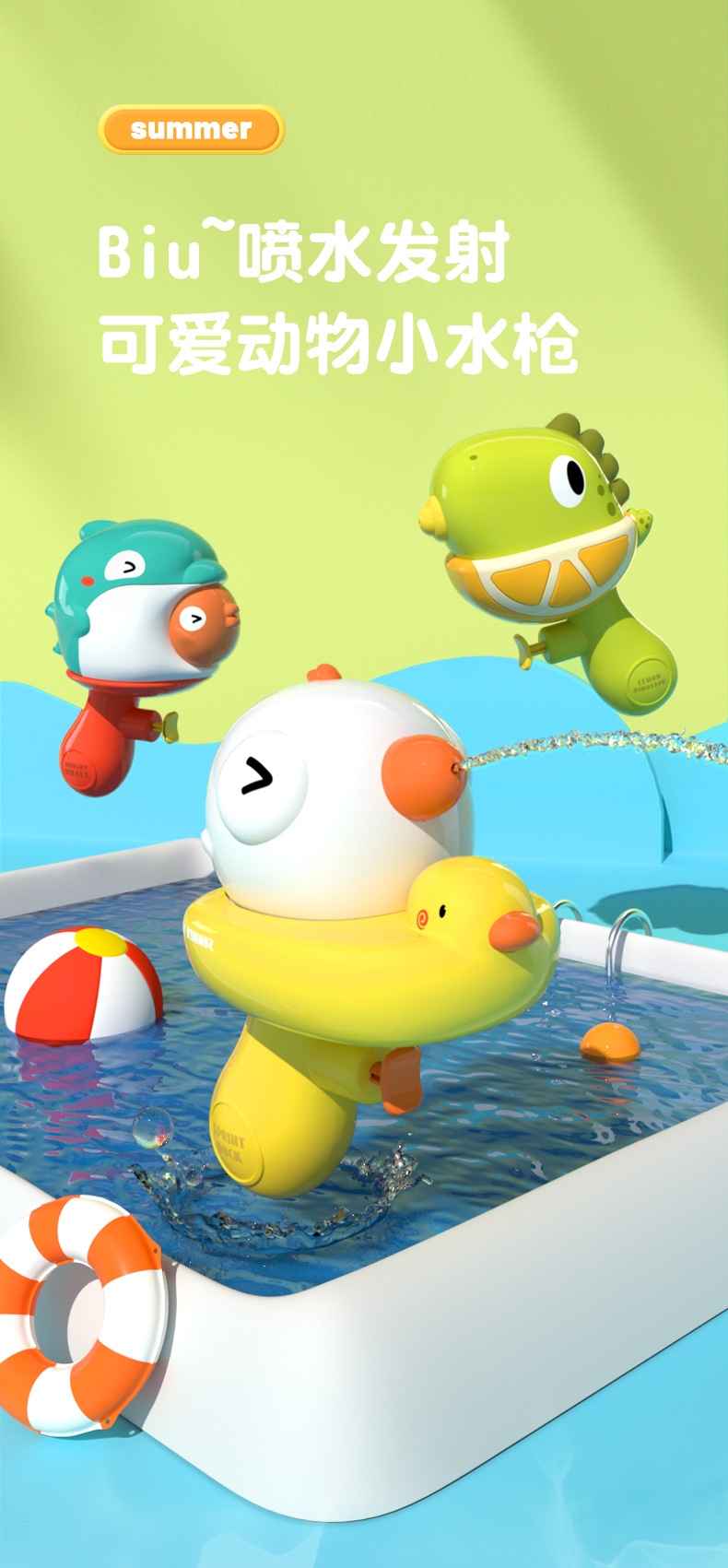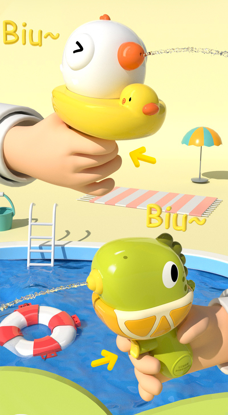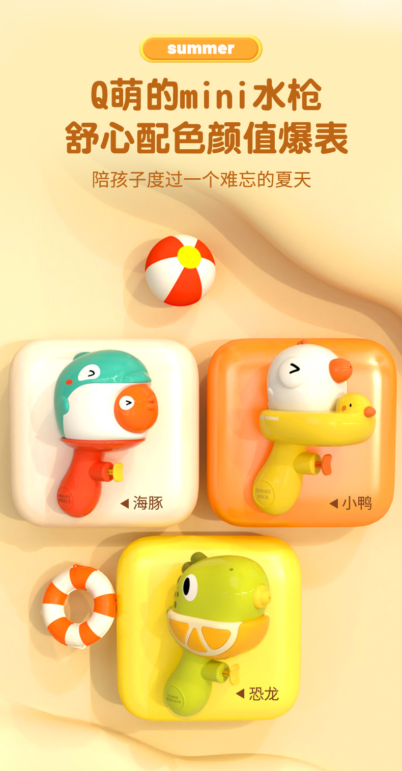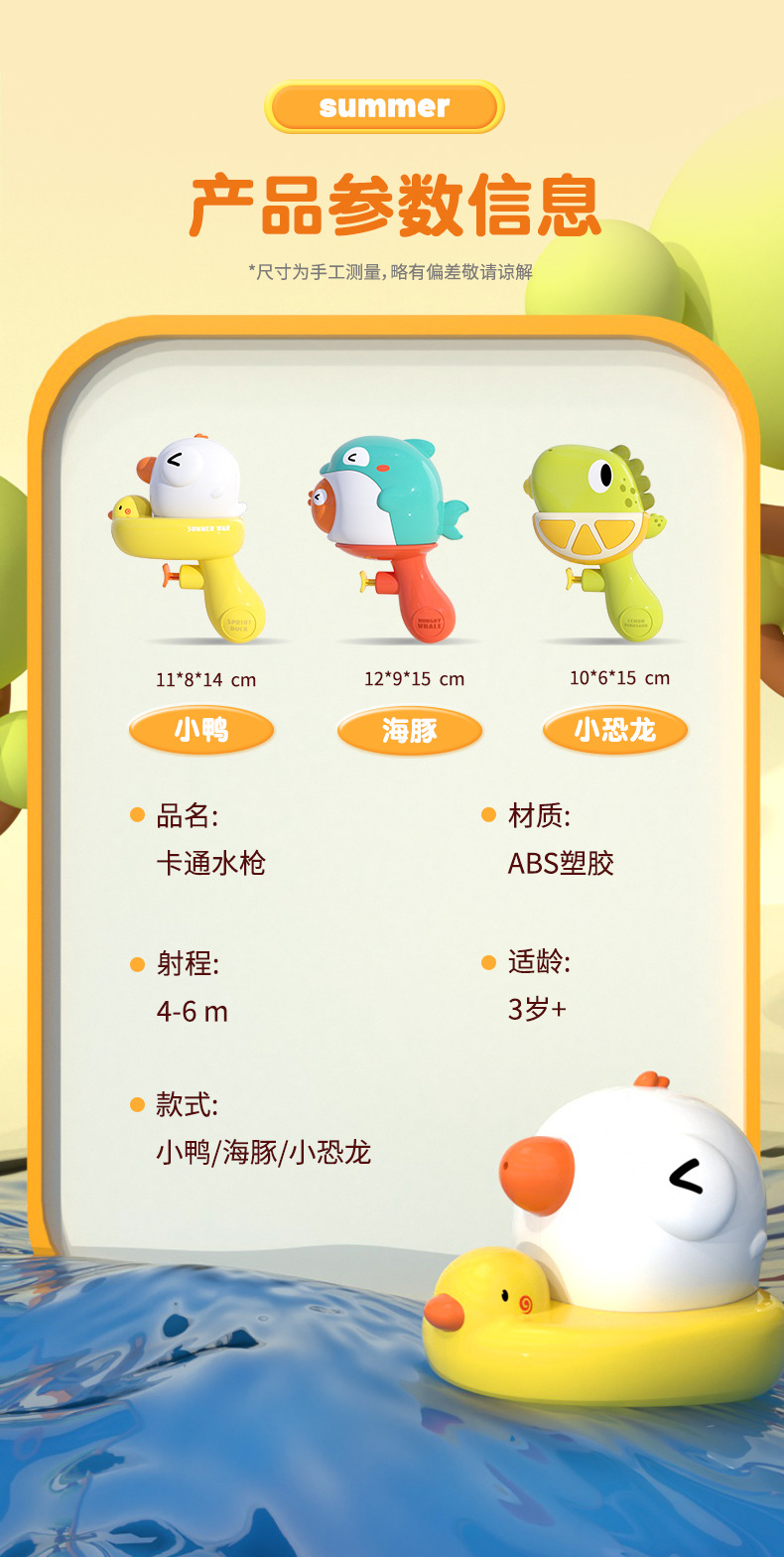 【19.9元抢Q萌动物小水枪2只装】卡通mini水枪 简易加水 4-6m喷水发射 小鸭/海豚/恐龙3种卡通造型可选