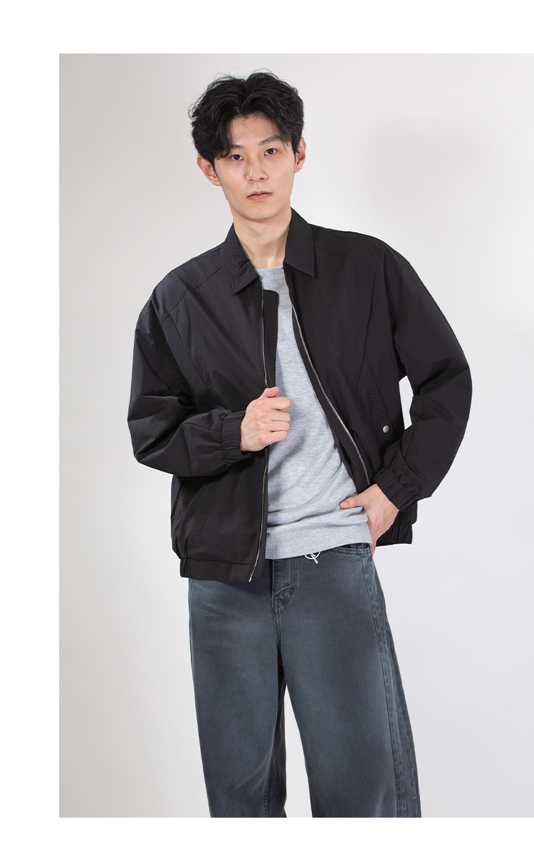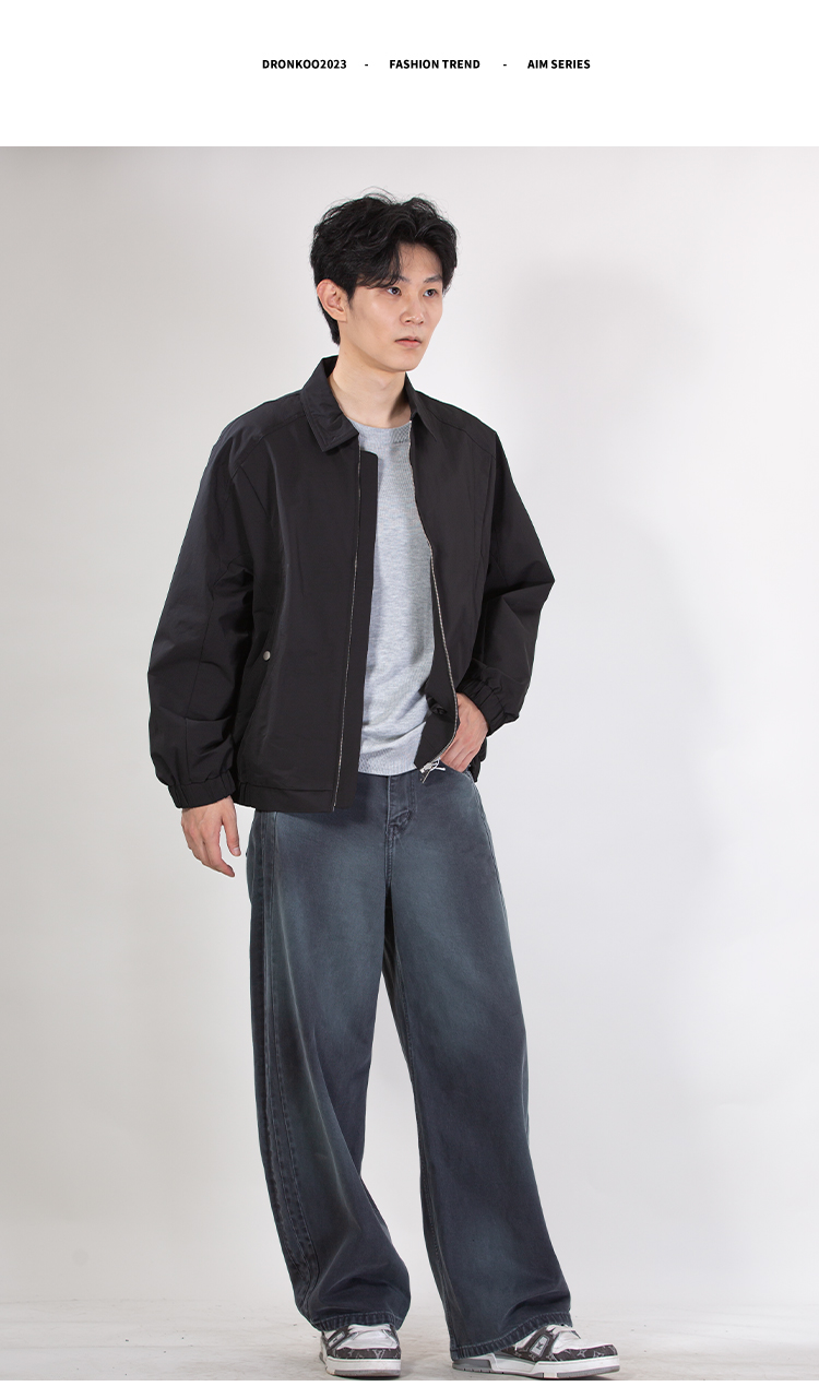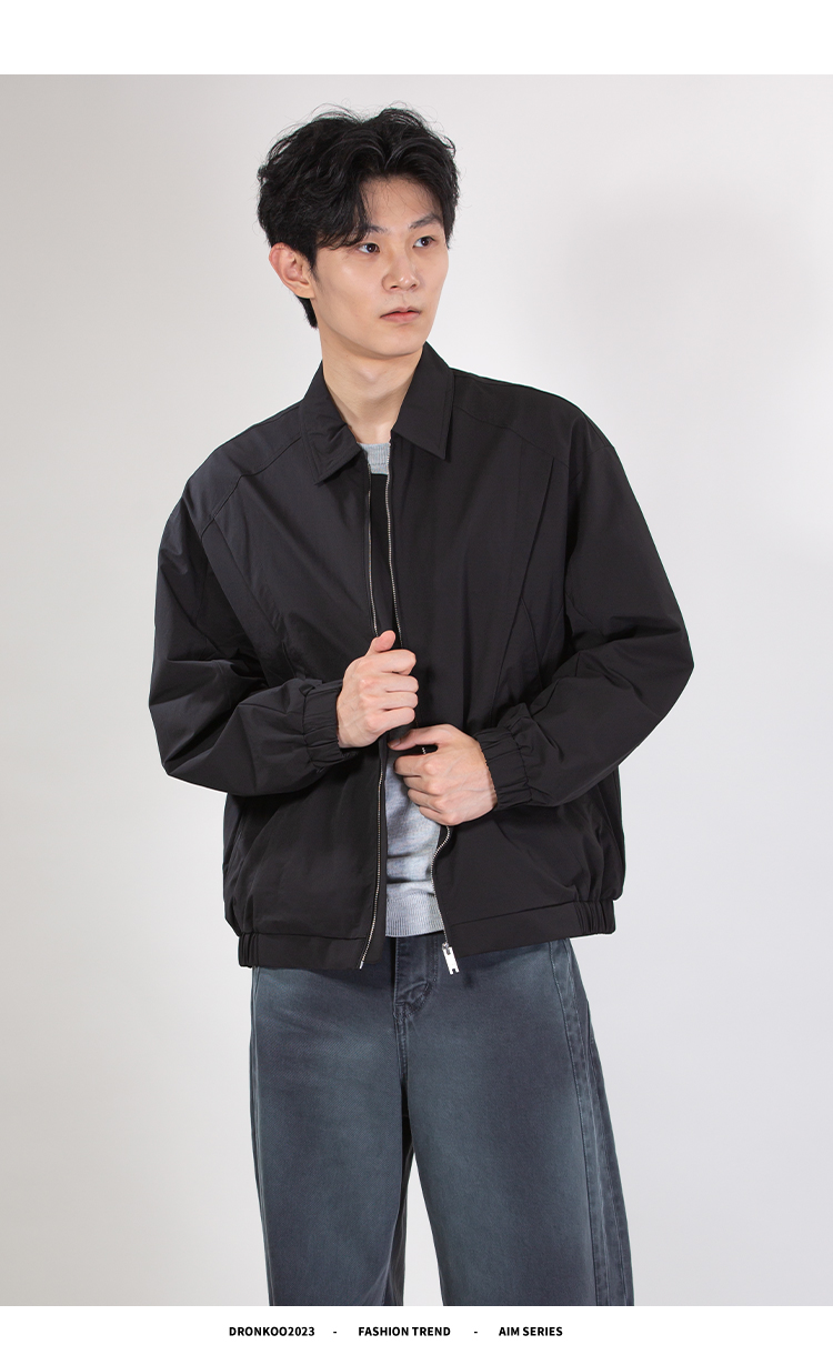 DRONKOO 2025 翻领前几何分割口袋金属扣中厚夹克