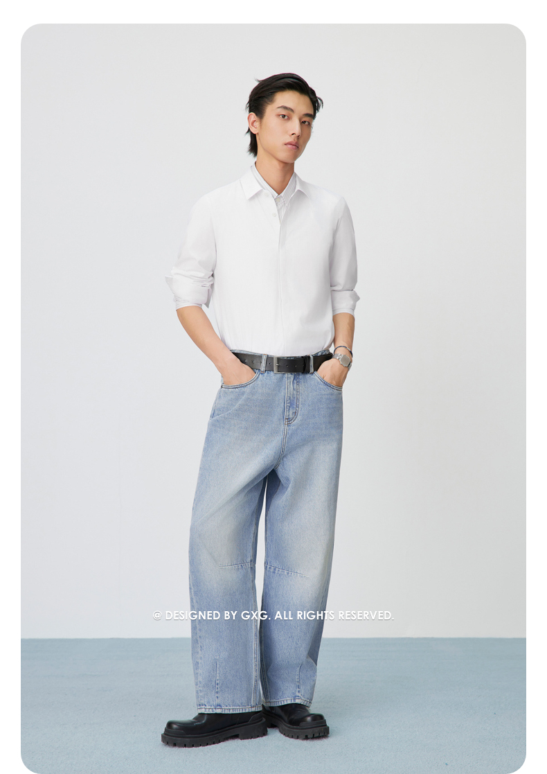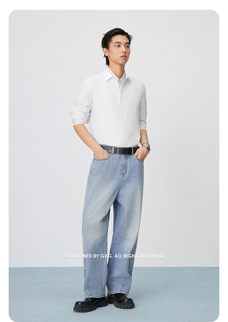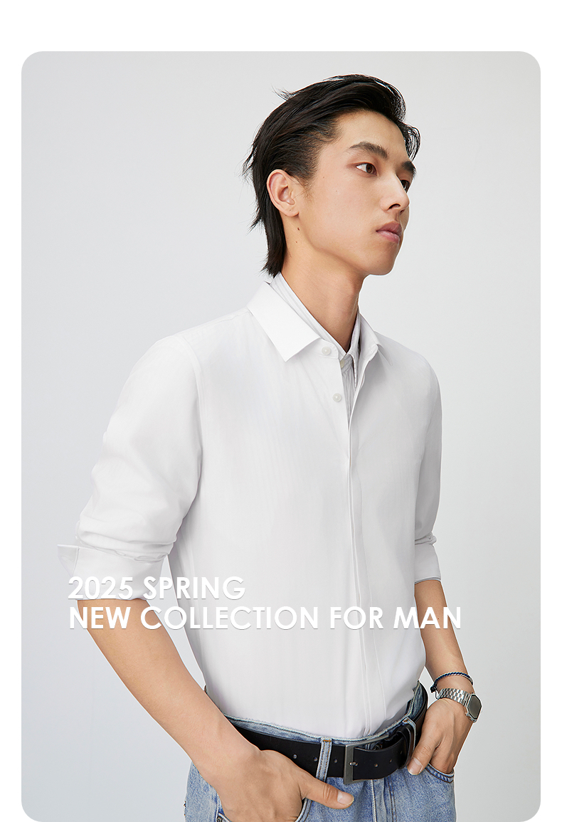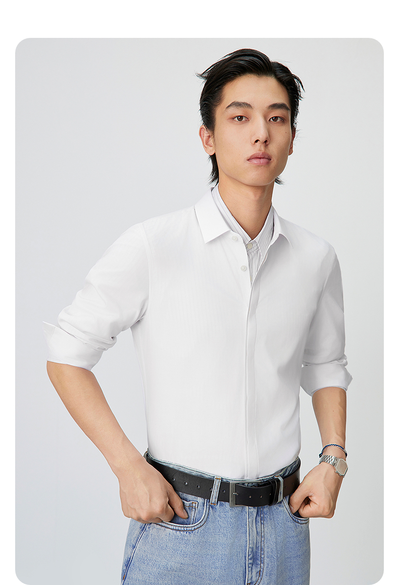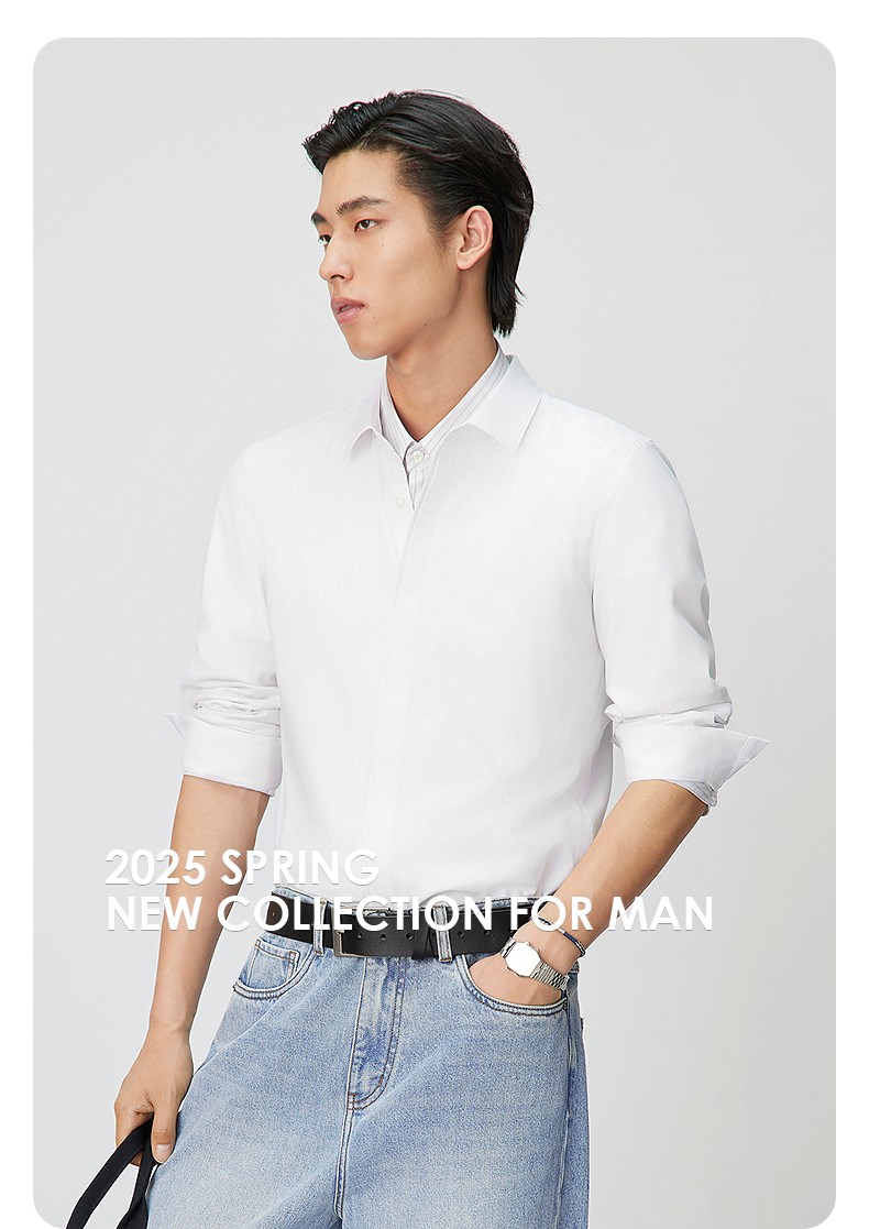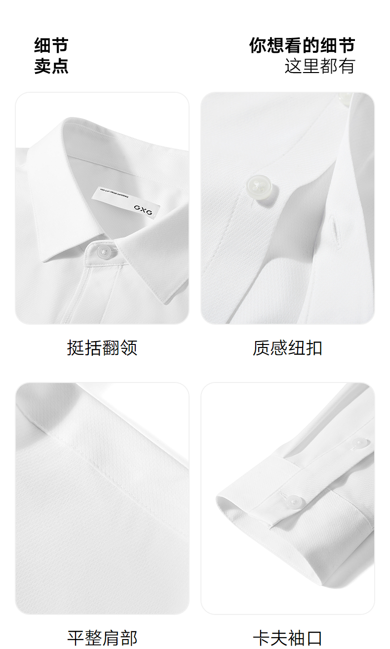 GXG男装 多色基础绣花凉感商务通勤长袖衬衫内搭 25年春热卖