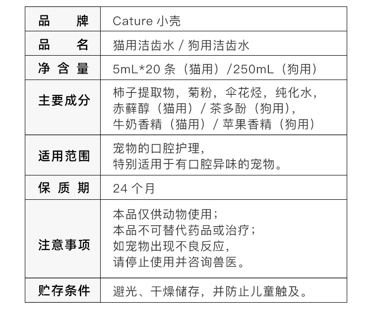 小壳洁齿水洁齿棒猫咪狗狗漱口水除口臭去牙结石可食用饮用