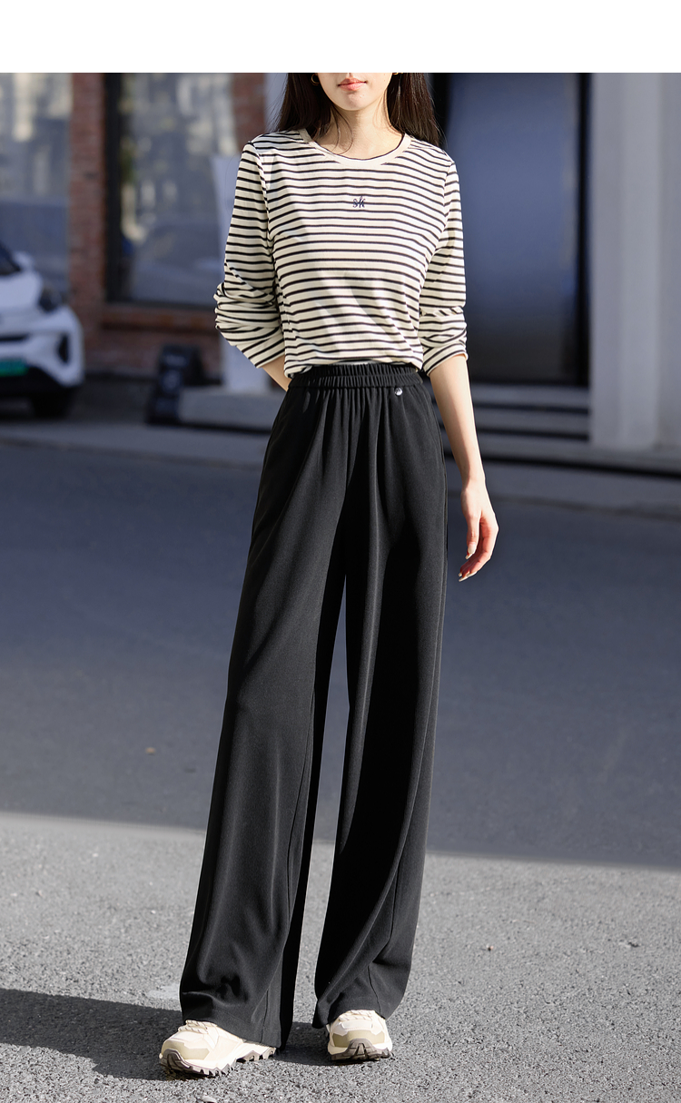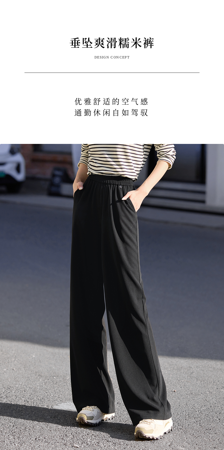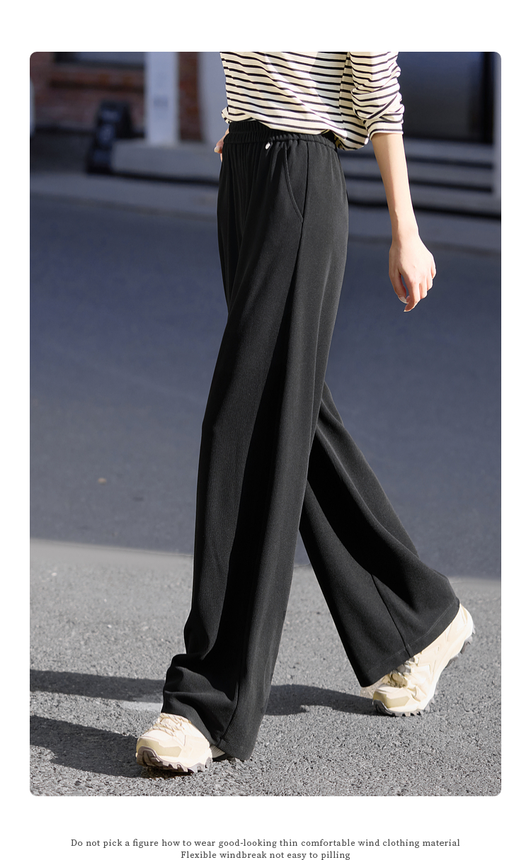 【专属特价】熙世界针织阔腿裤女2025春秋新款高腰显瘦休闲糯米裤窄版直筒长裤