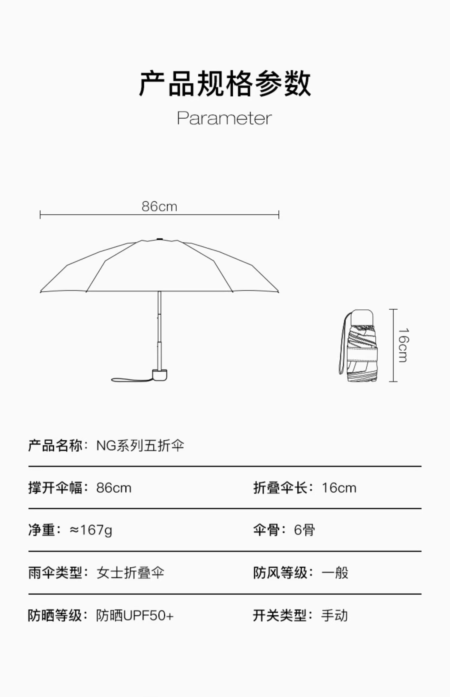 FULTON富尔顿 英国进口NG Tiny-2 UV Holbein 五折伞 WFTN2210