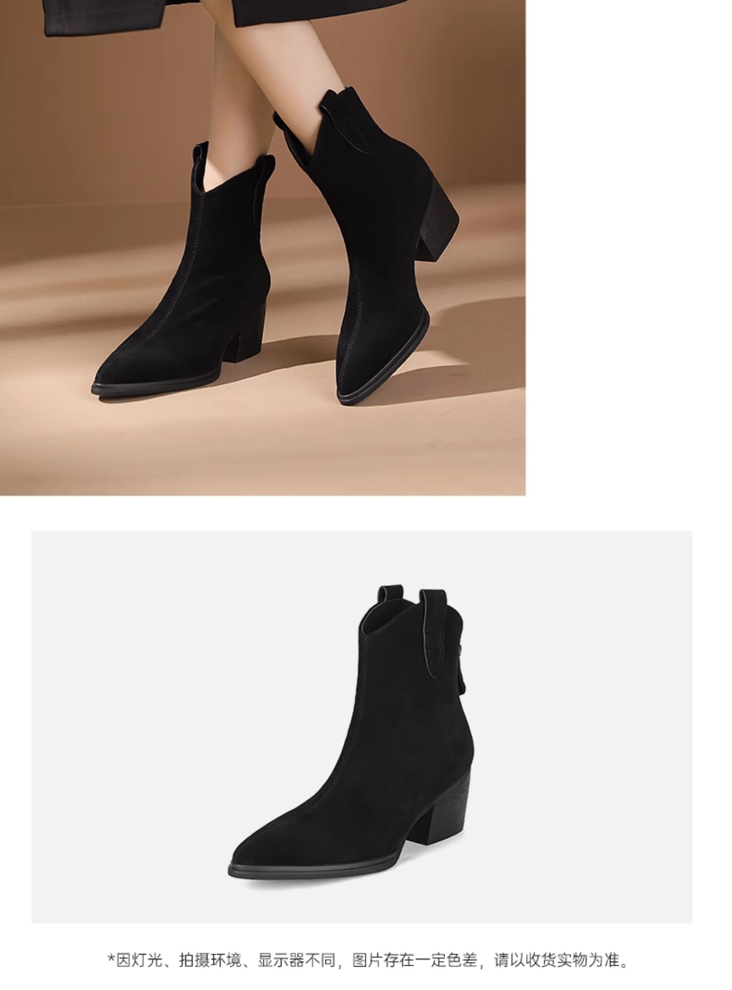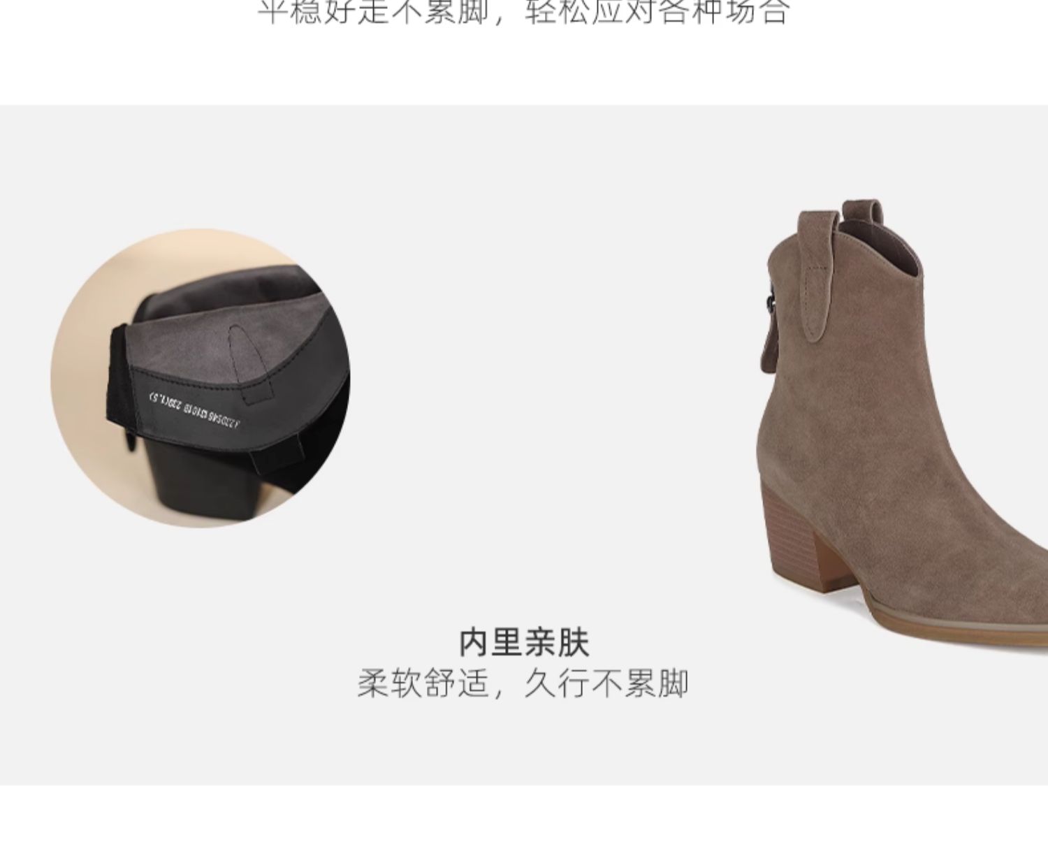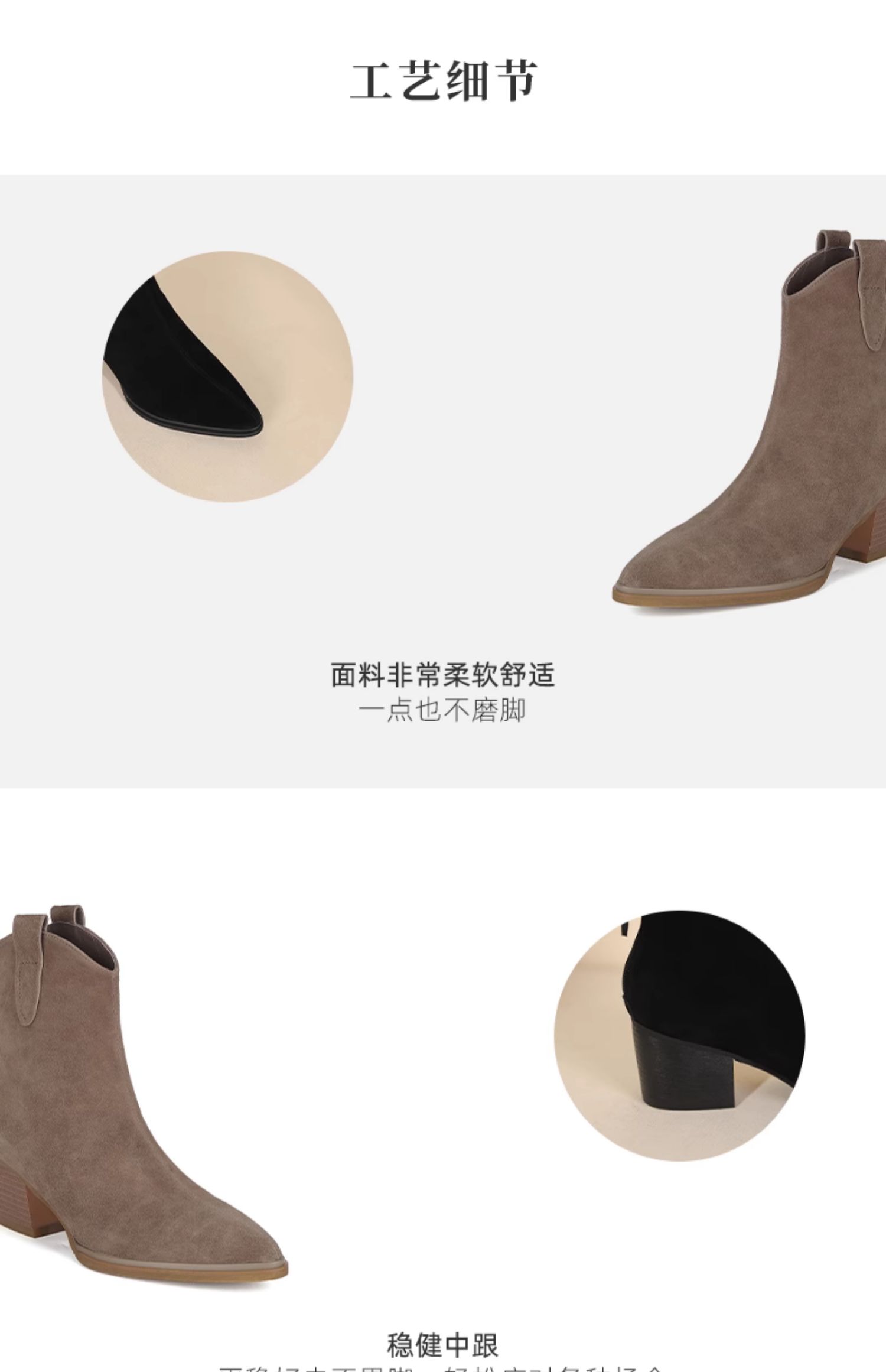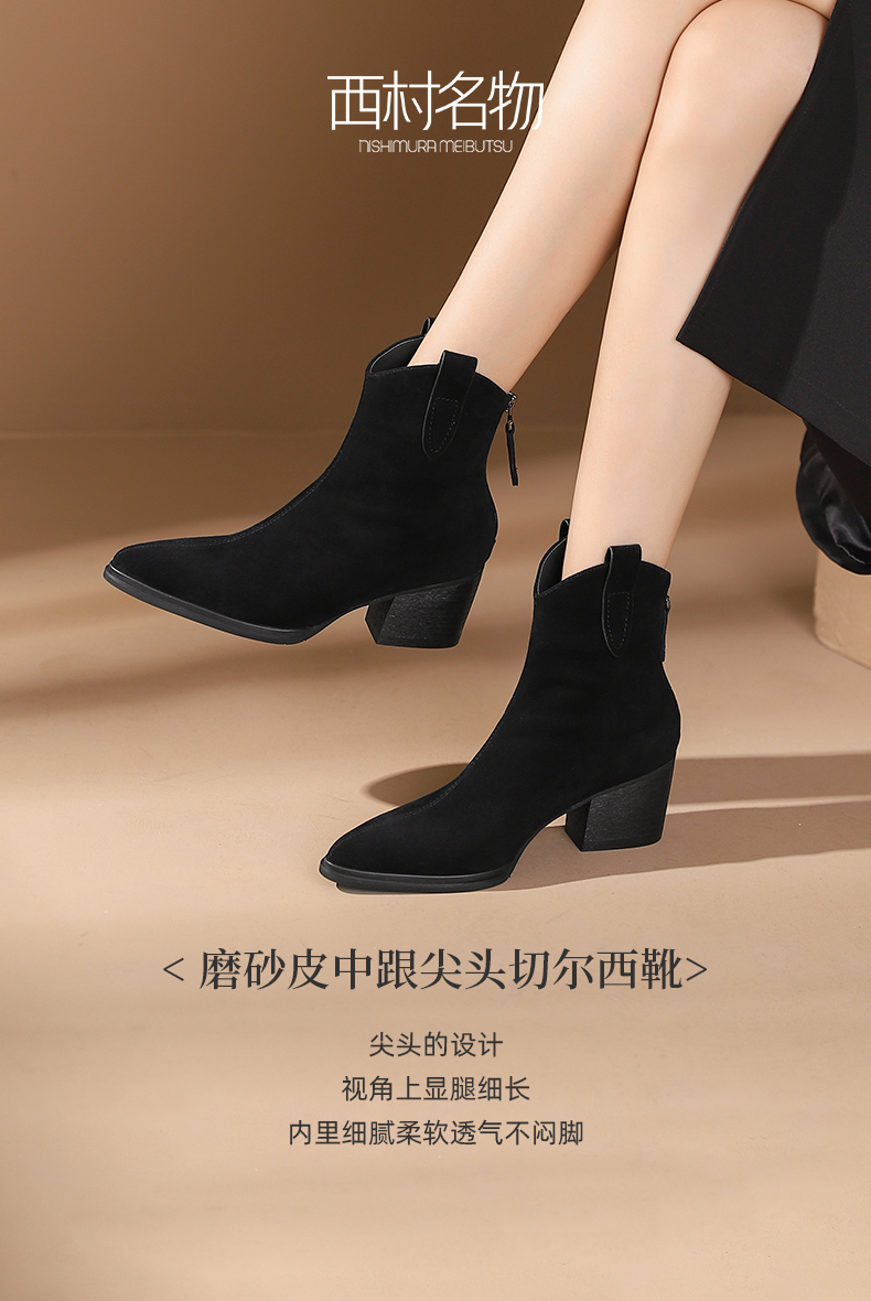 西村名物2023秋冬新款气质时尚磨砂皮中跟尖头切尔西靴女T23DS46131