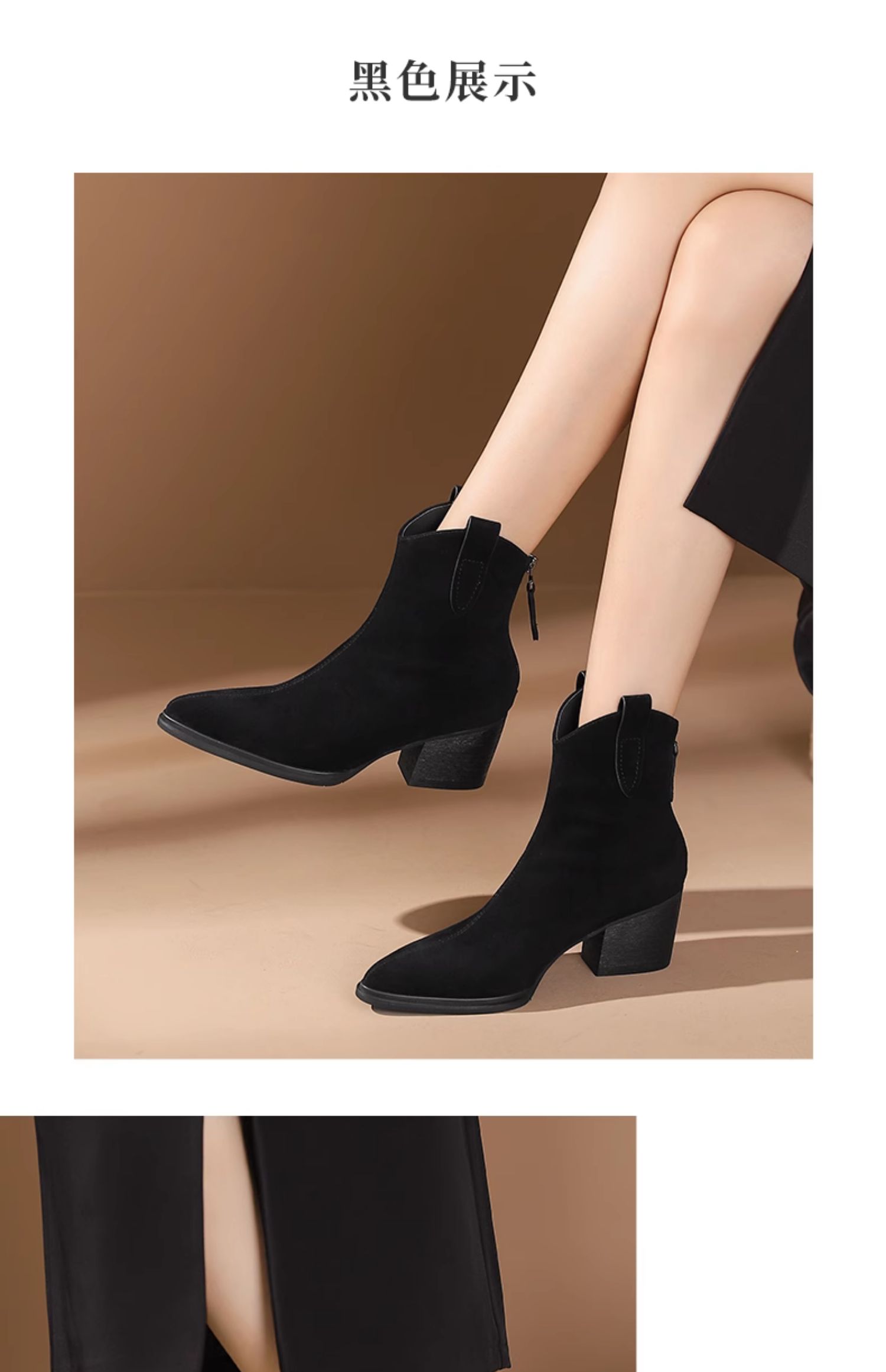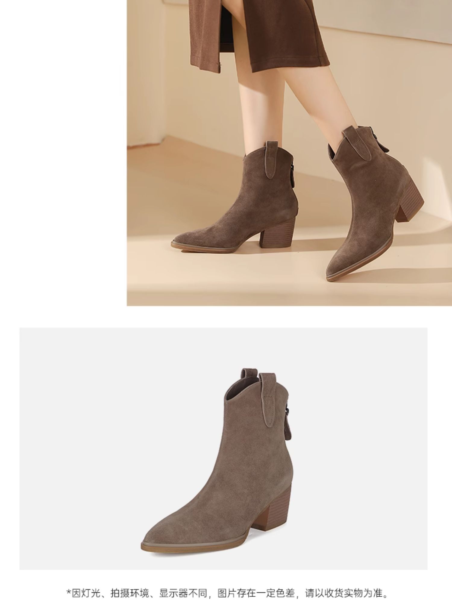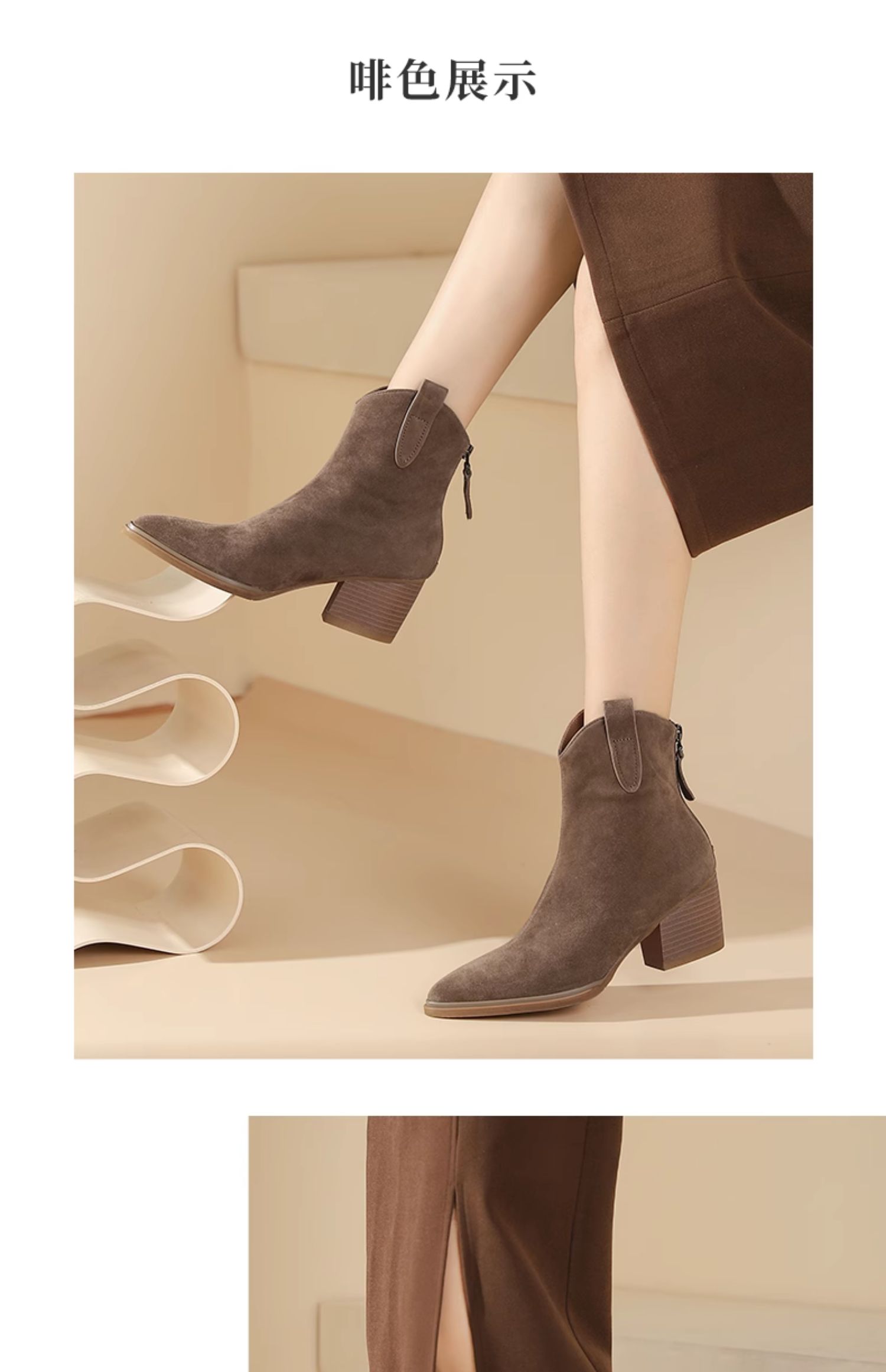 西村名物2023秋冬新款气质时尚磨砂皮中跟尖头切尔西靴女T23DS46131