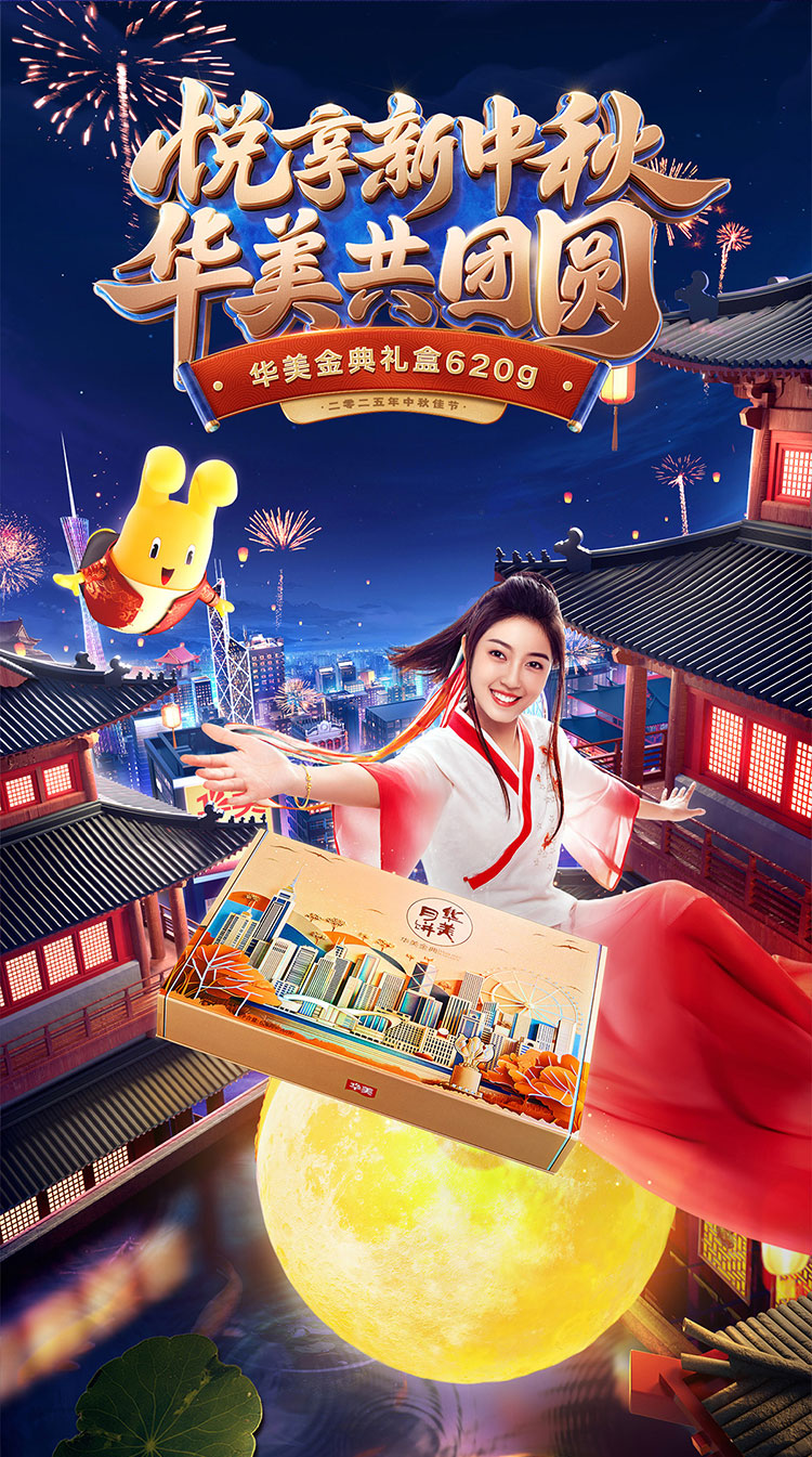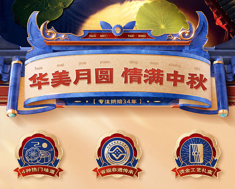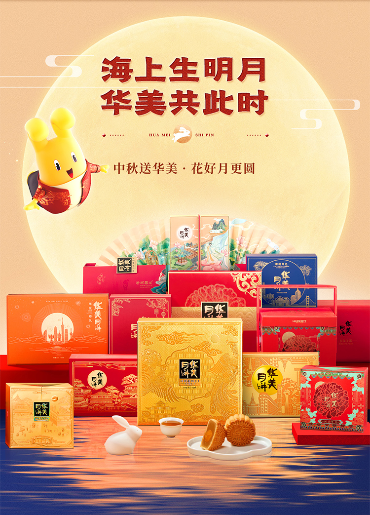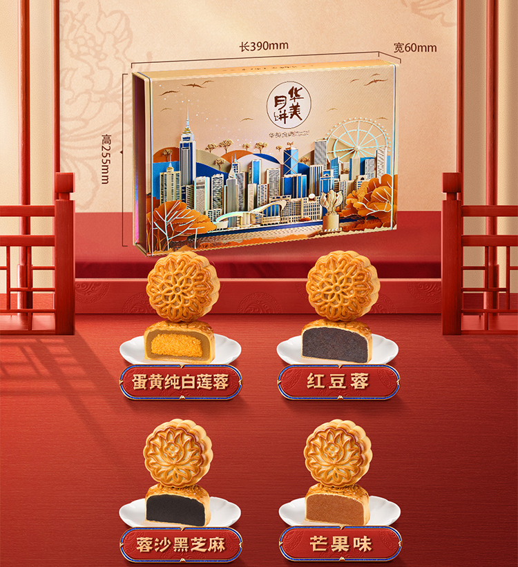 华美 金典 烫金 月饼礼盒 620g/盒 广式月饼 10饼4味 中秋 送礼 月饼 团购 糕点