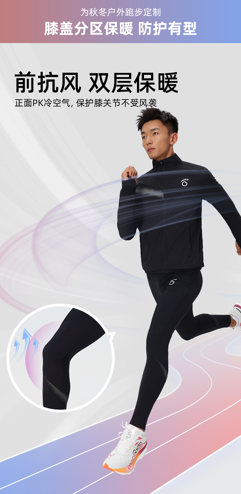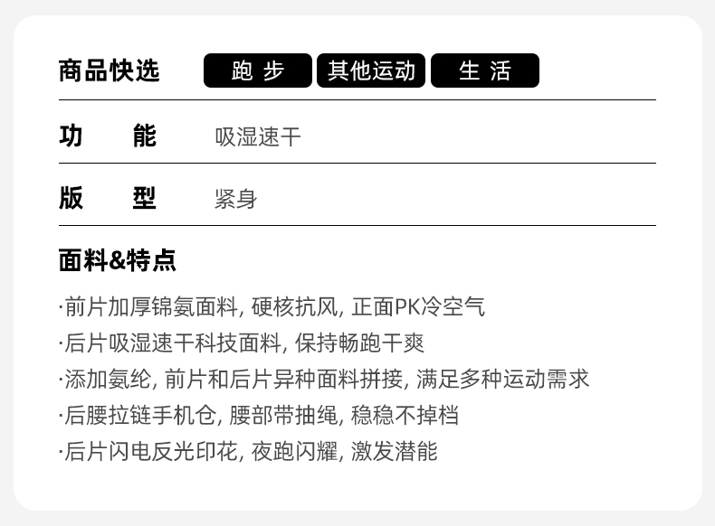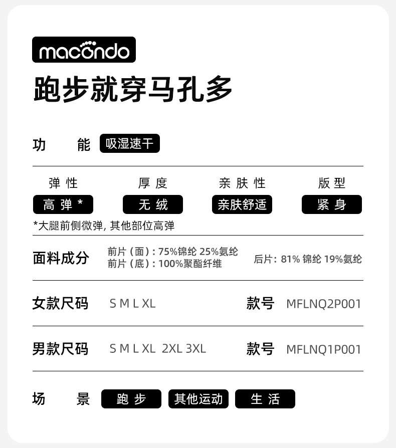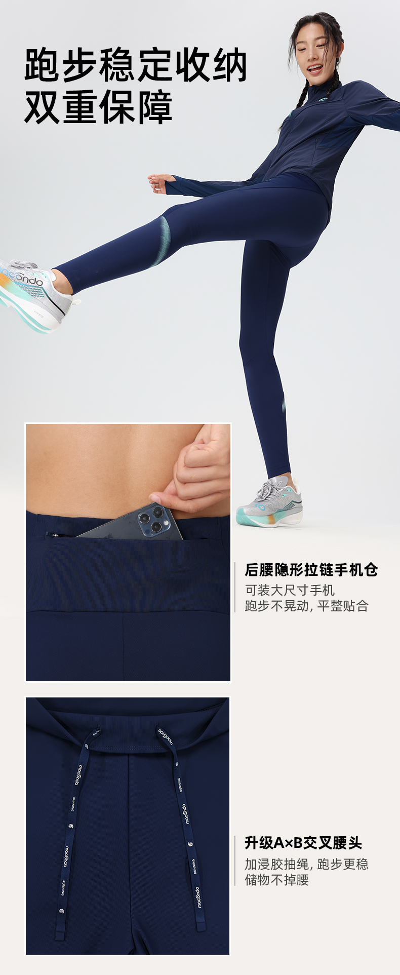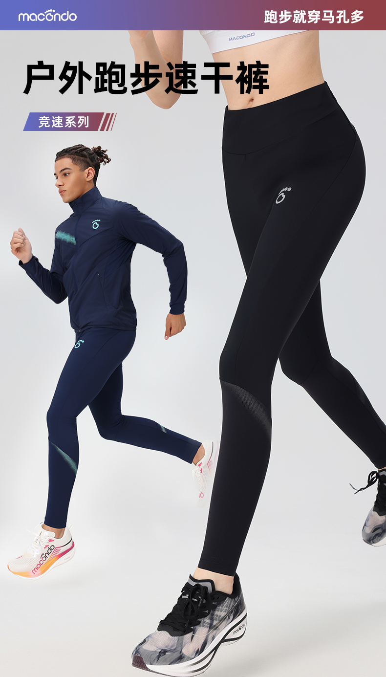 春秋马孔多男女户外跑步速干裤 前片抗冷风 吸湿速干 手机仓 隐形抽绳