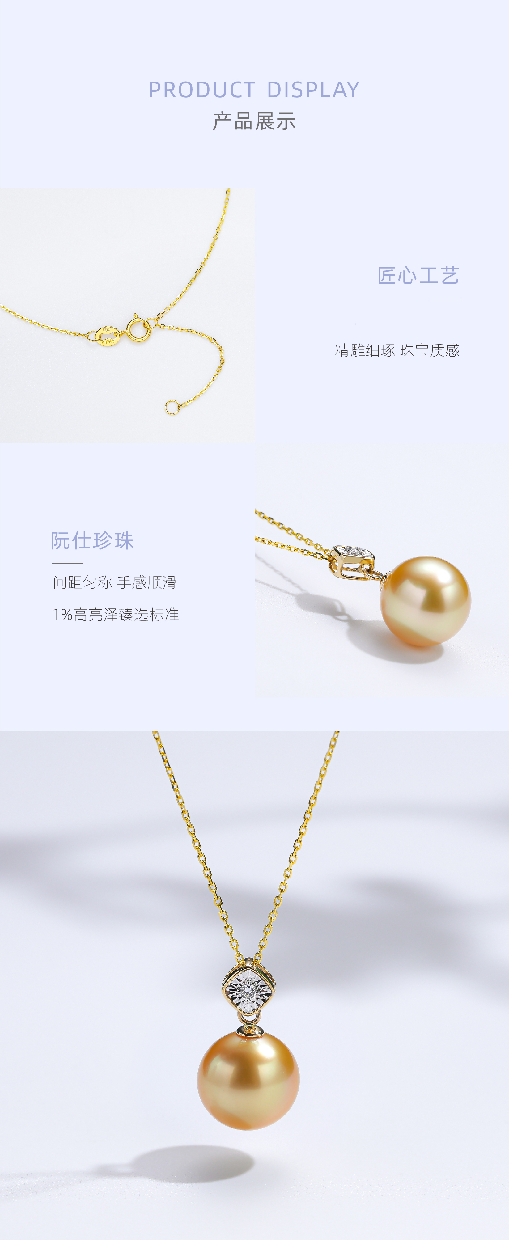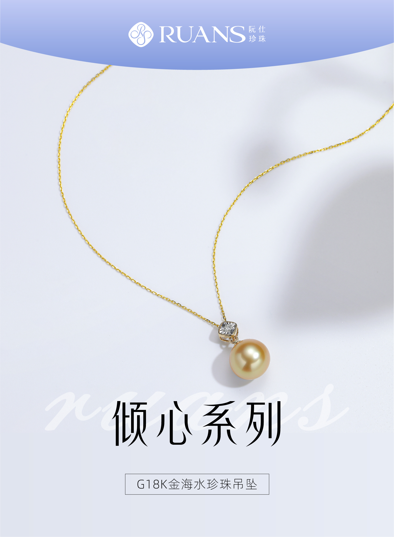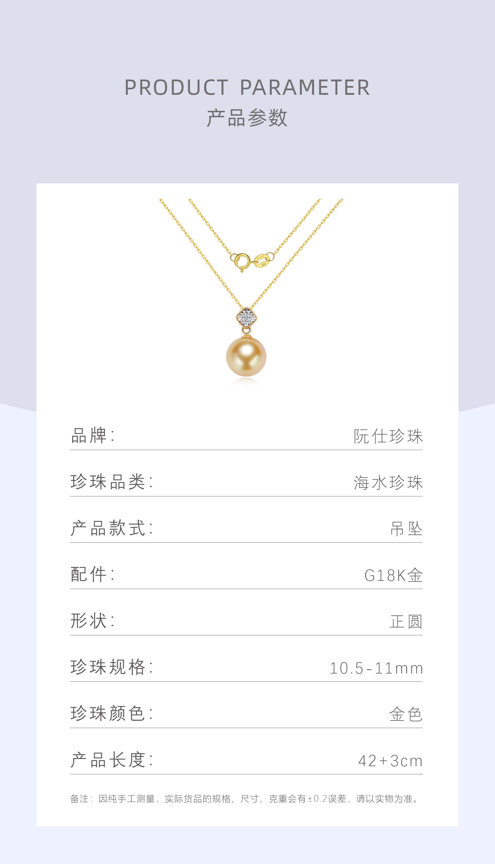 阮仕倾心系列G18K金南洋金珠珍珠链牌 10.5-11MM 正圆 无暇 极强光
