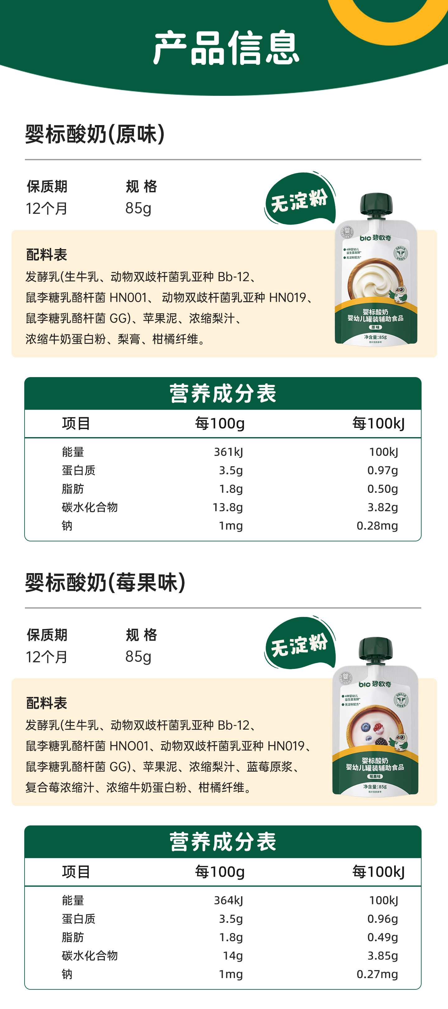 【任选6袋,单拍不发货】碧欧奇婴标酸奶无添加