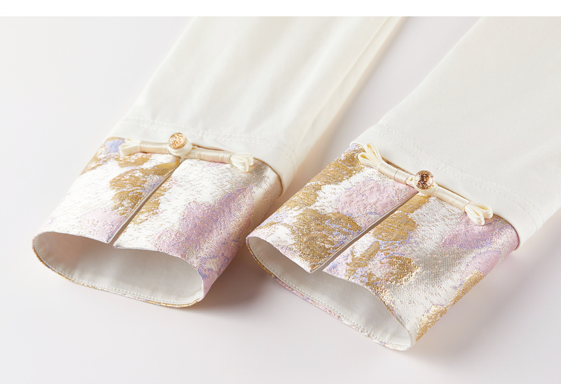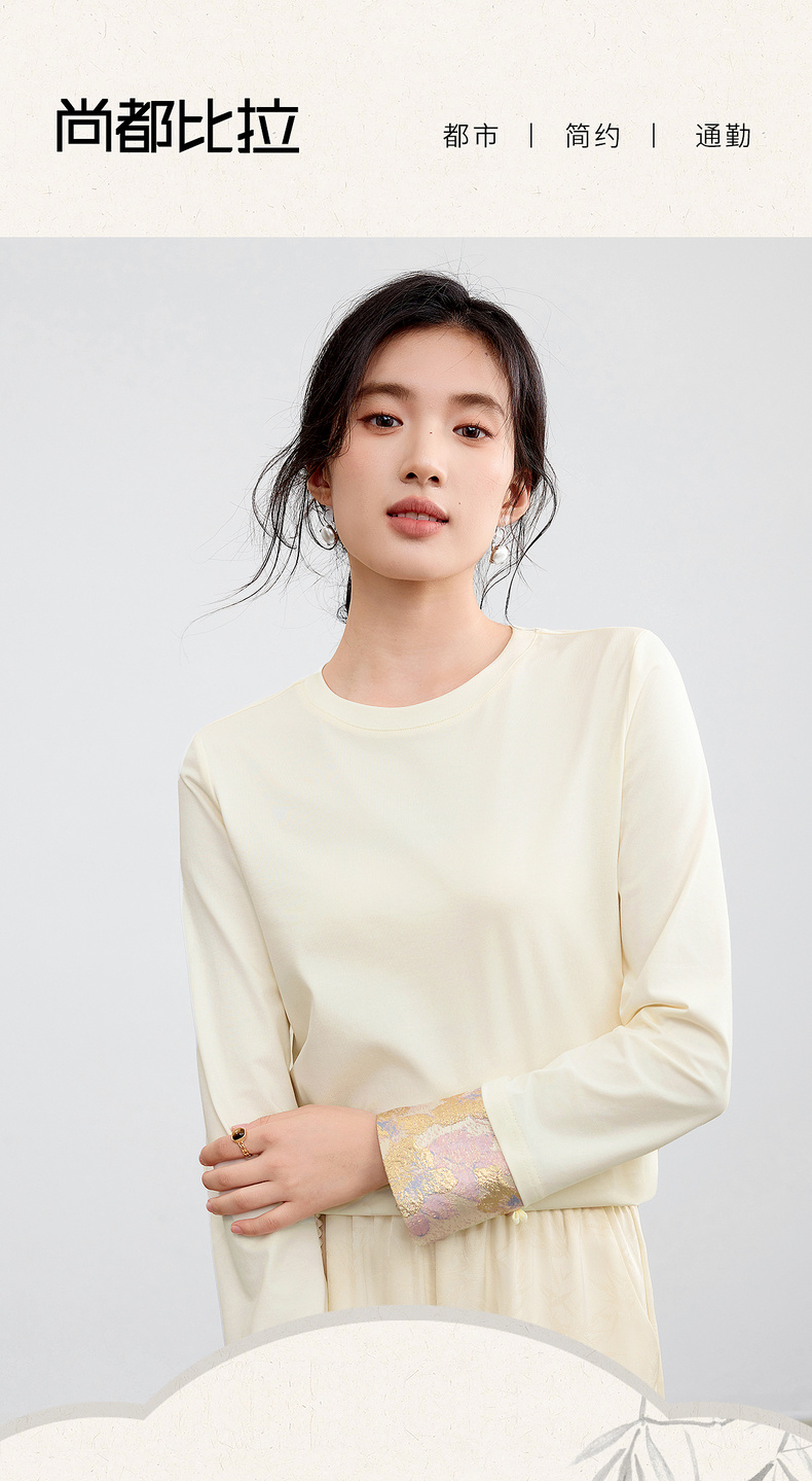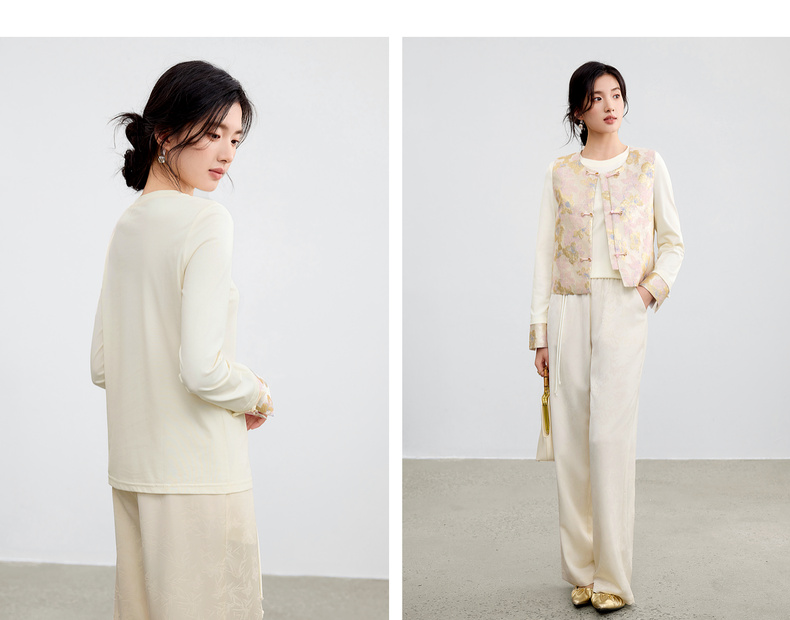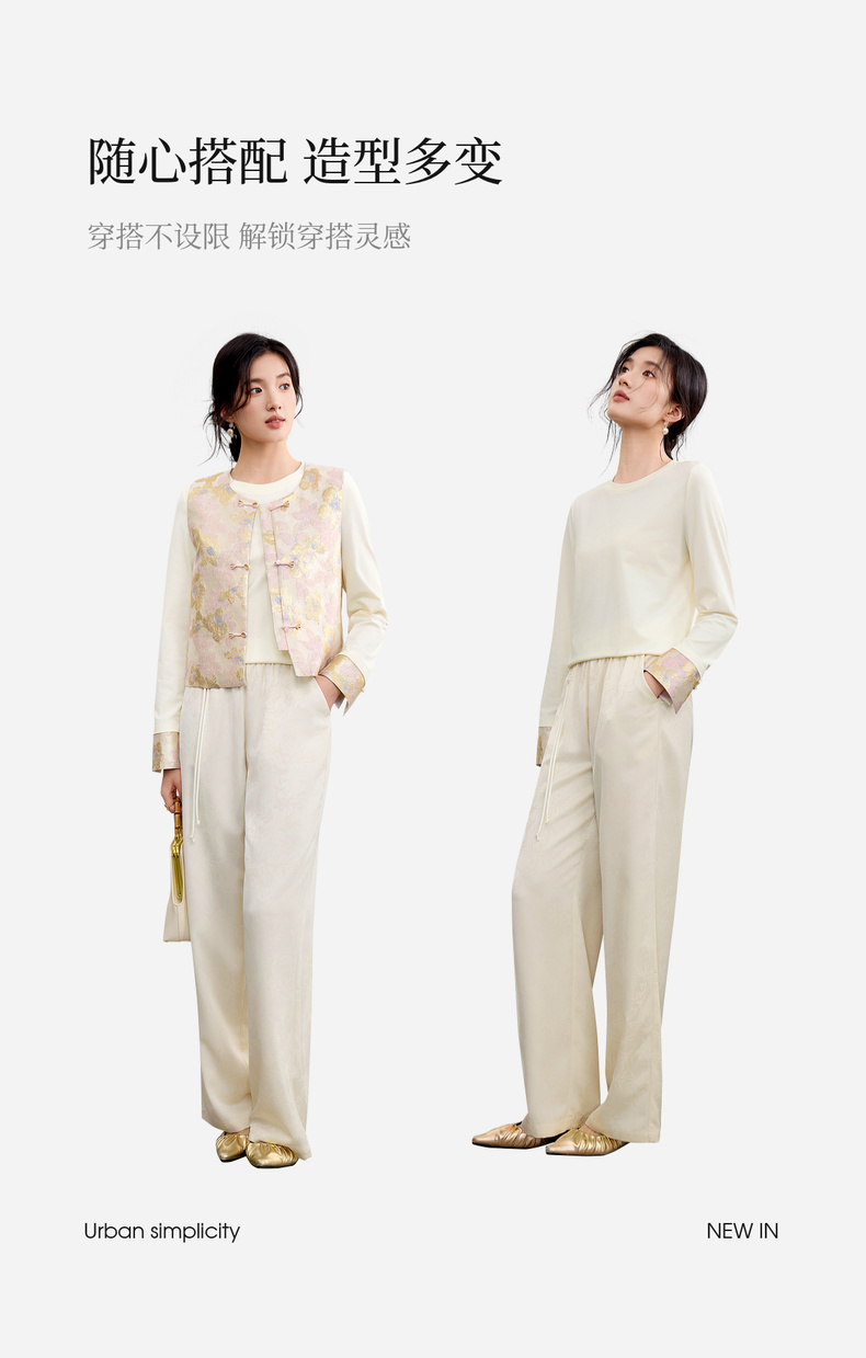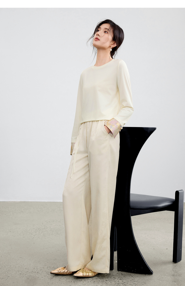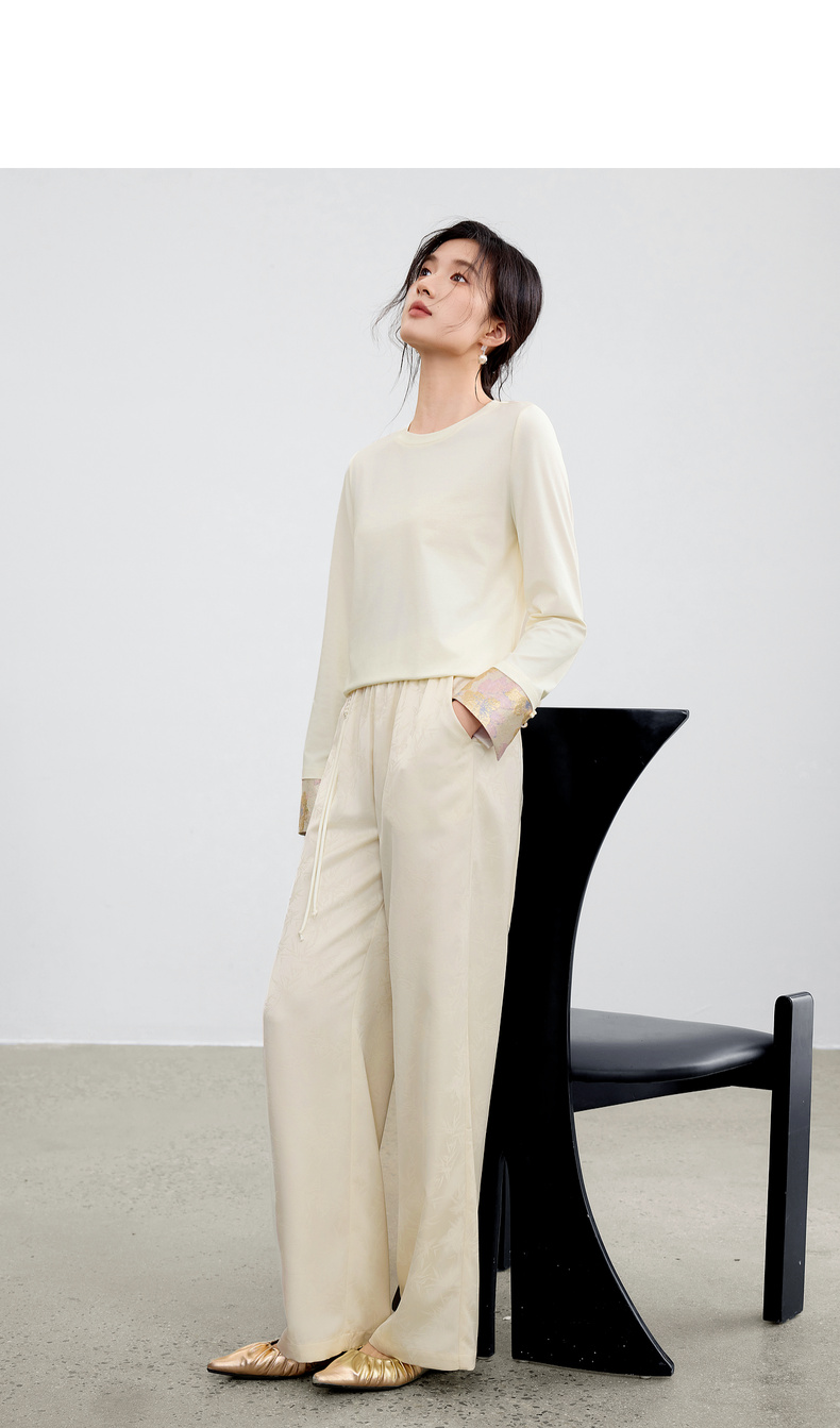【内购】【唐宋远黛系列】吸湿速干凉感抑菌国风圆领拼接提花织锦长袖T恤-153TM3149