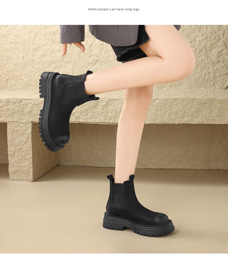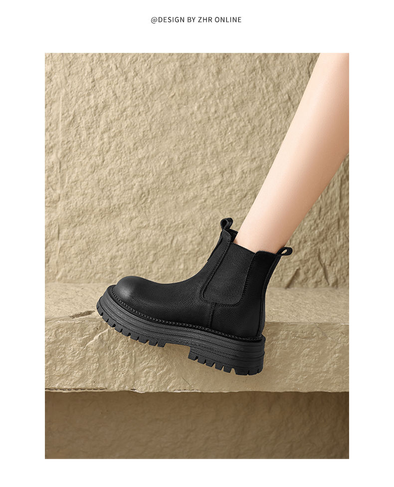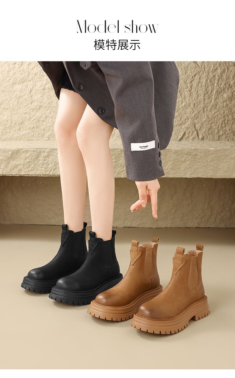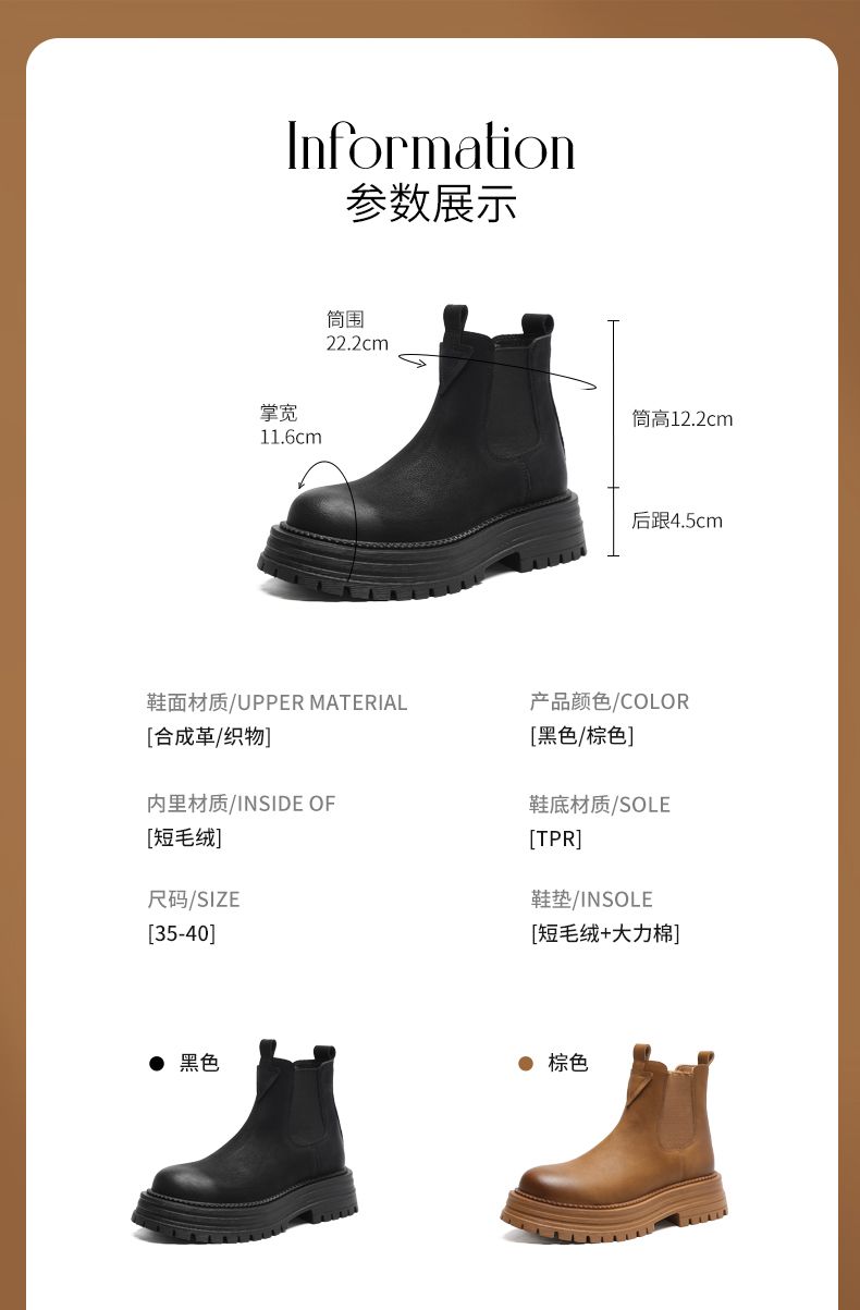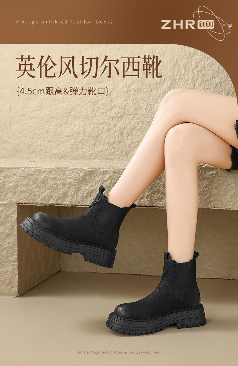 ZHR则则时尚气质厚底增高加绒短靴靴子2024冬季新款英伦百搭女鞋