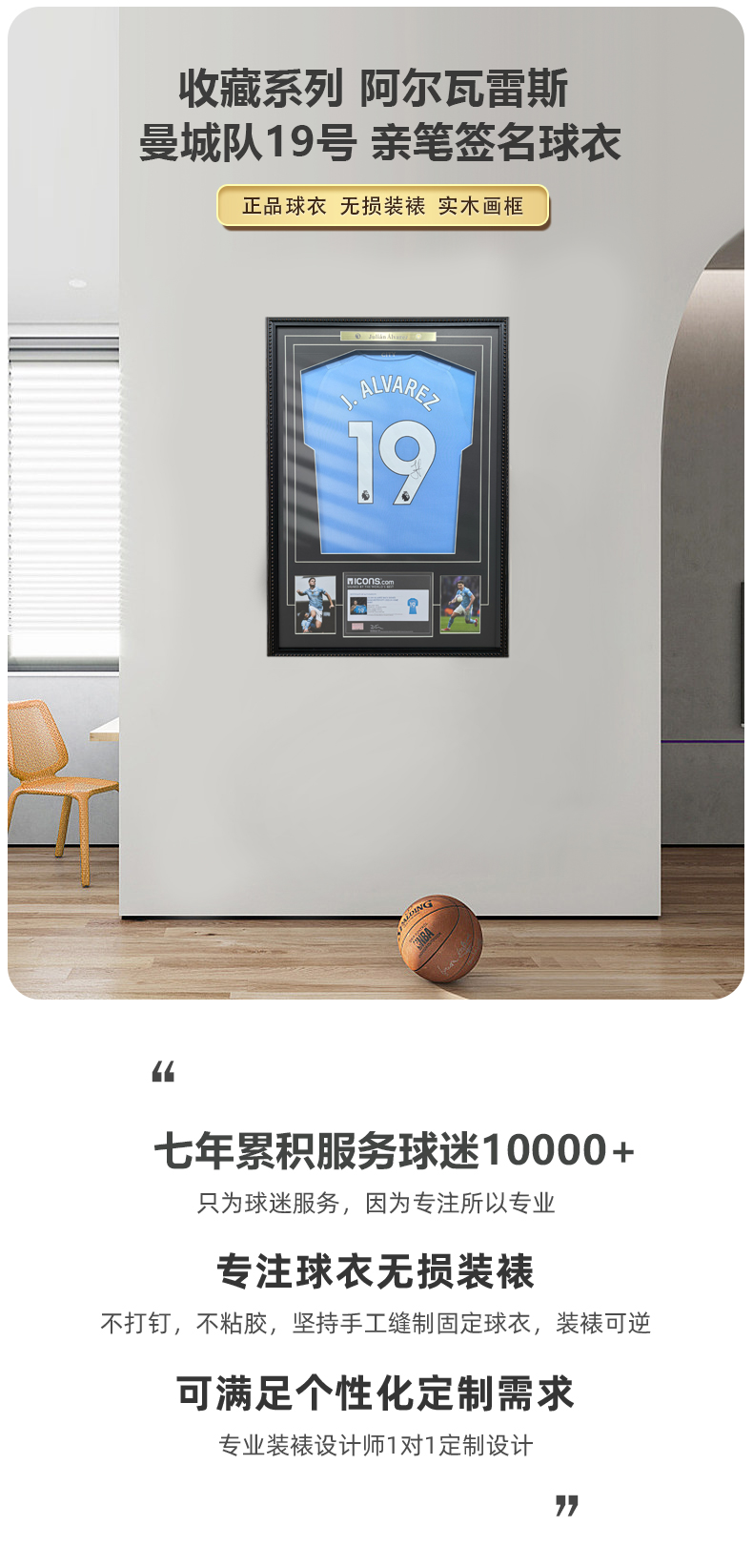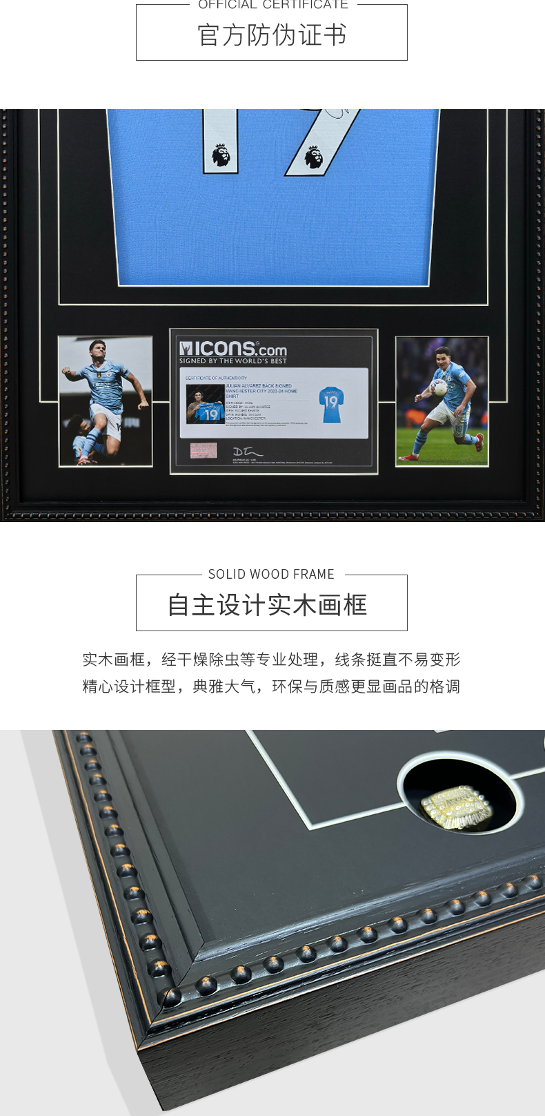 收藏系列 阿尔瓦雷斯 曼城队19号 亲笔签名球衣