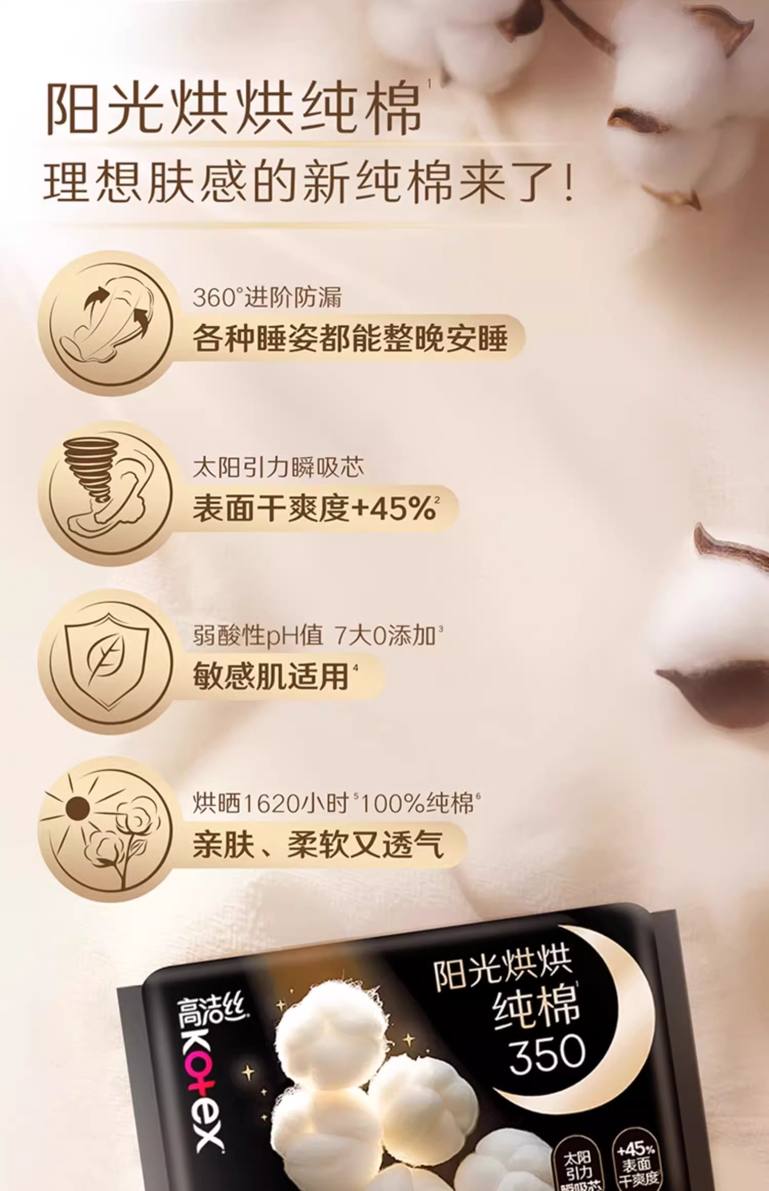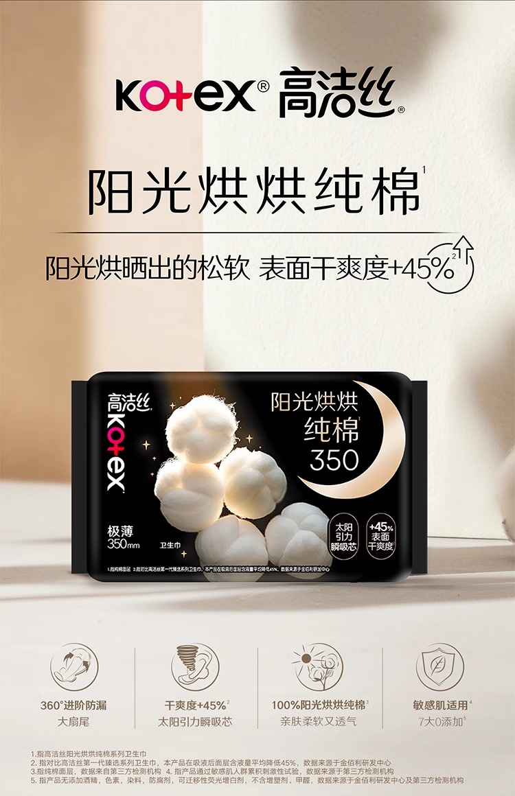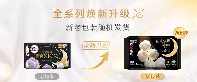 高洁丝阳光烘烘纯棉系列极薄夜用卫生巾350mm/4+2片