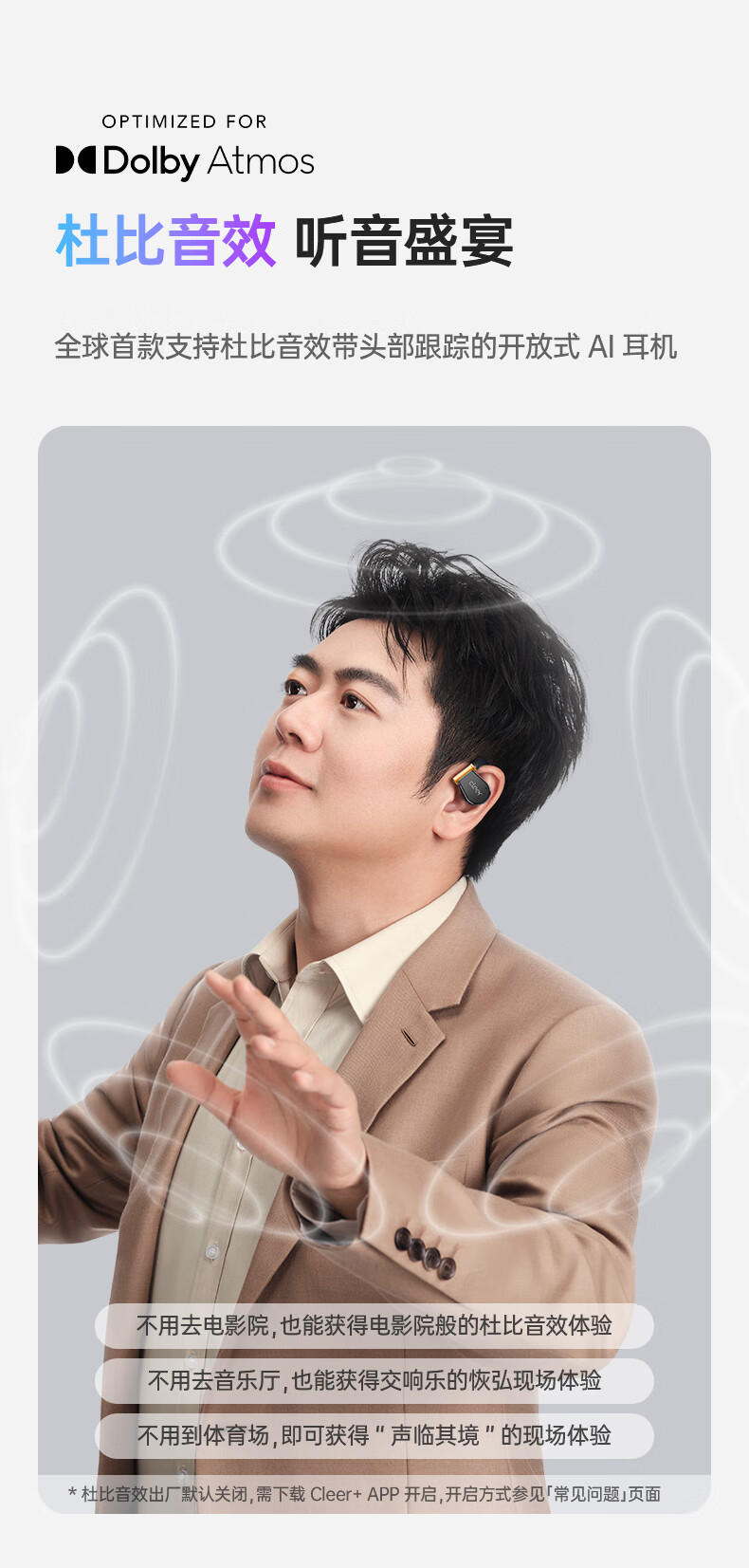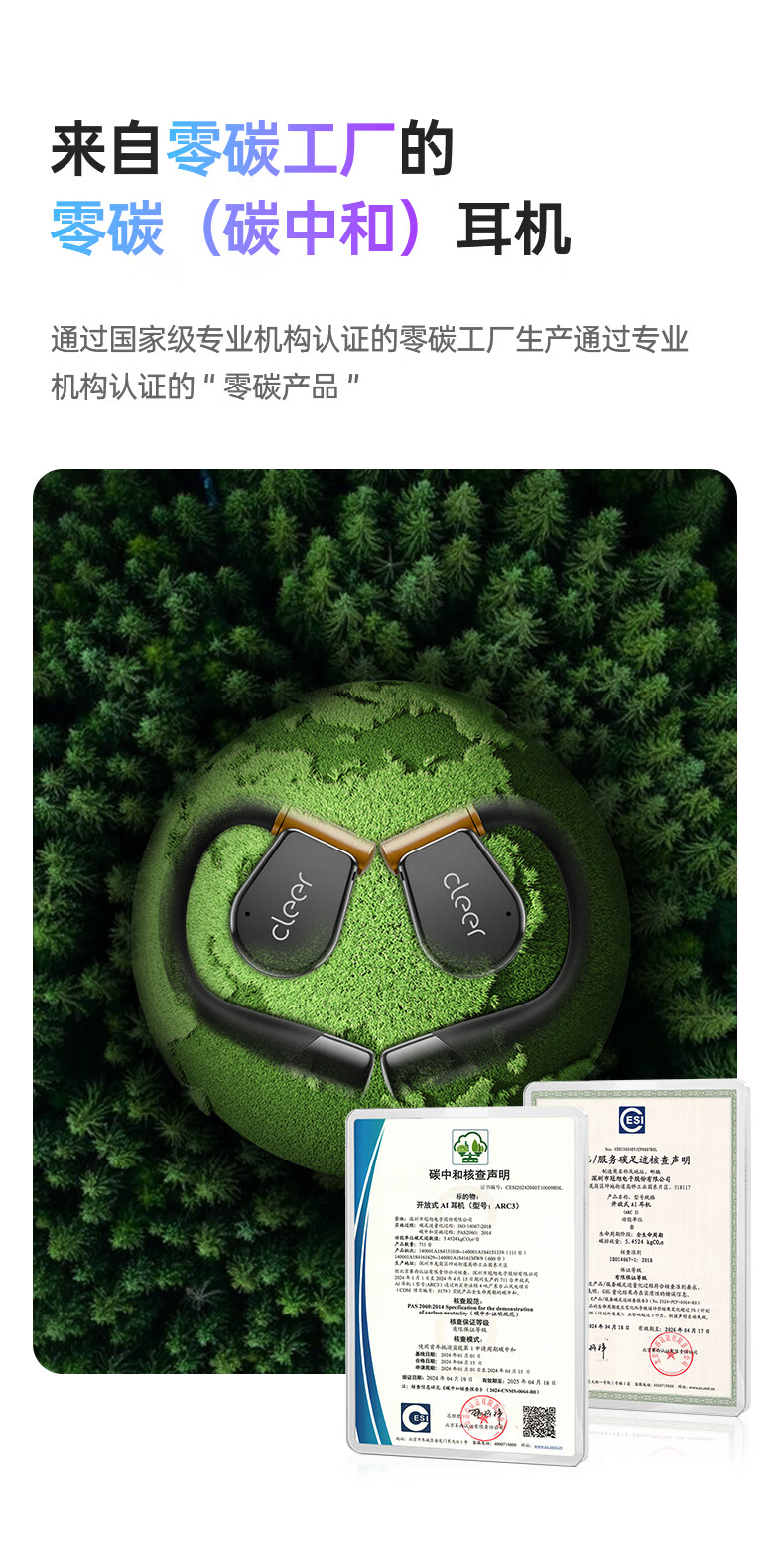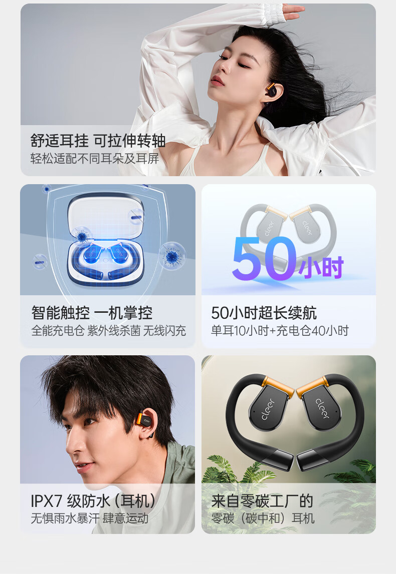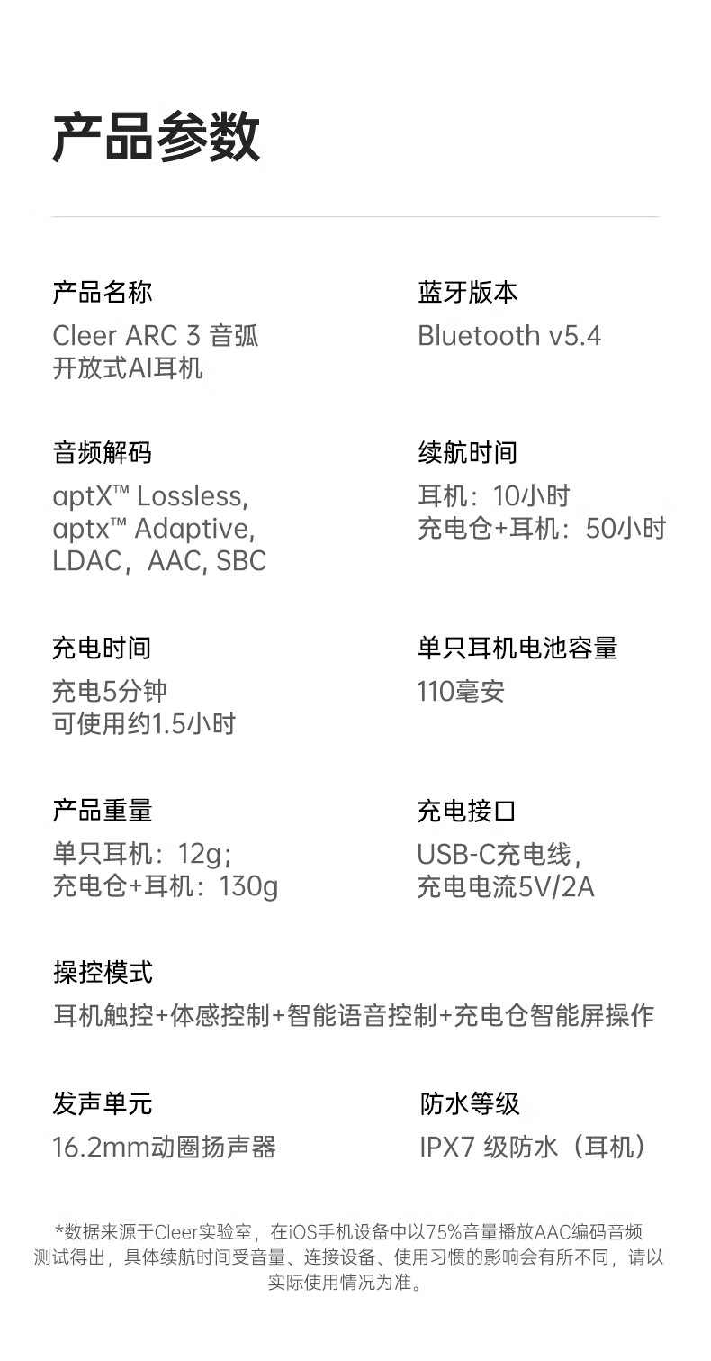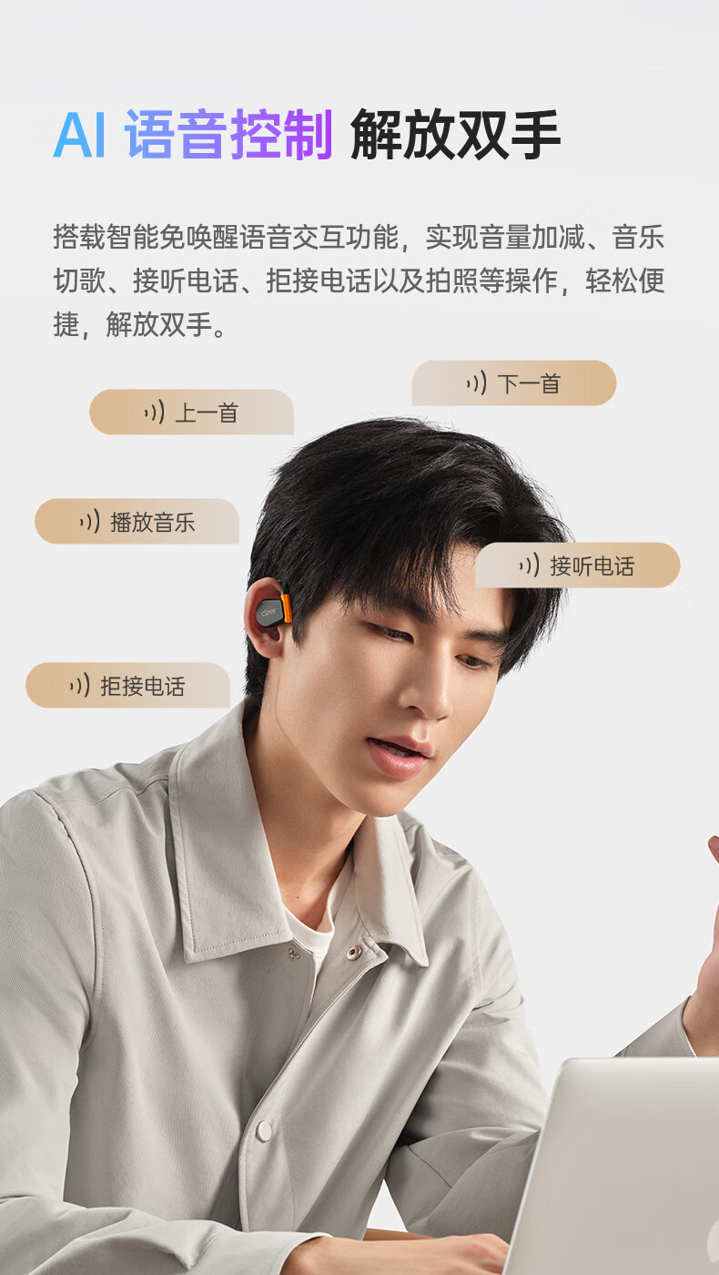 Cleer ARC3代不入耳开放式杜比空间音频AI智能无线蓝牙耳机挂耳式骨传导升级 开学必备