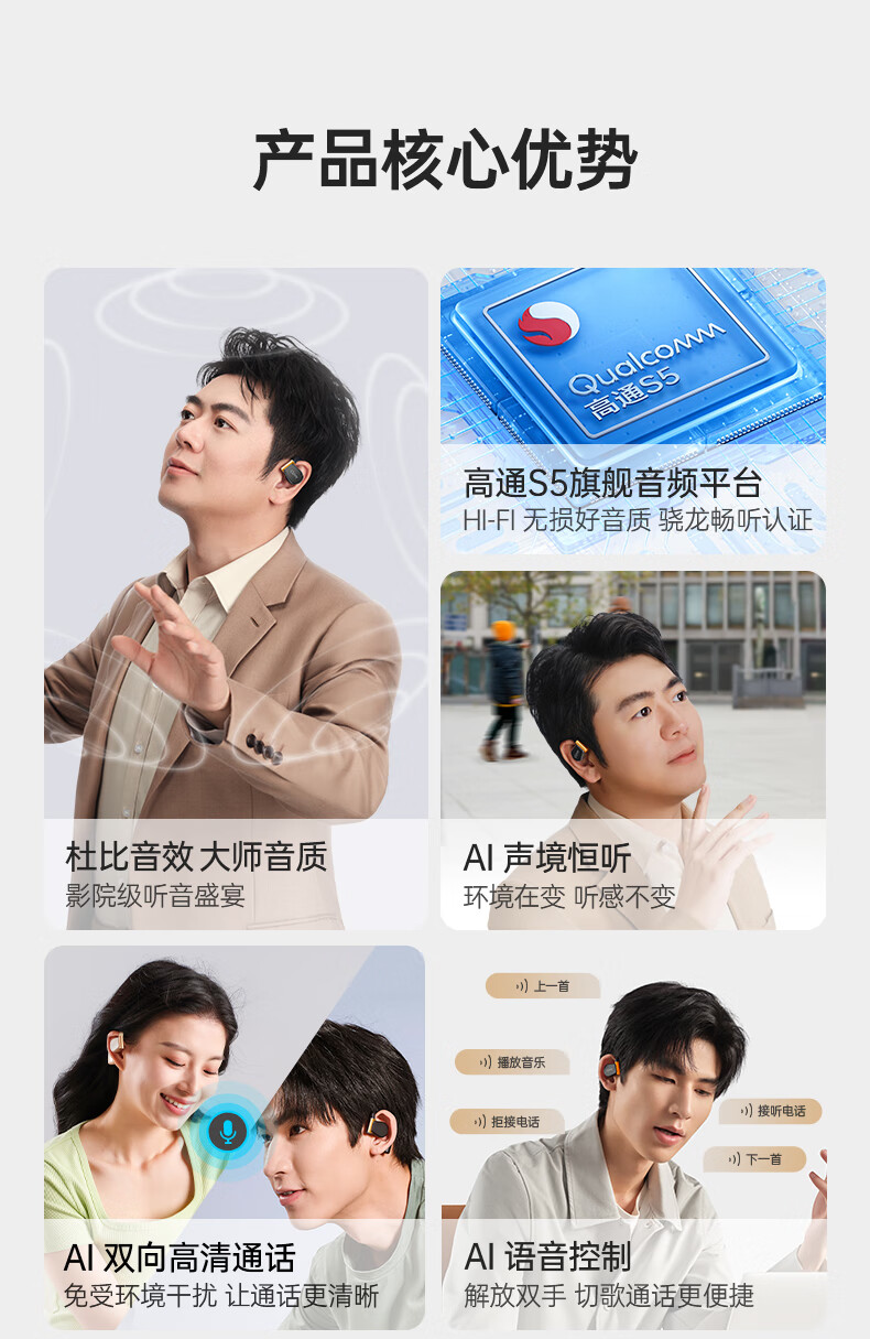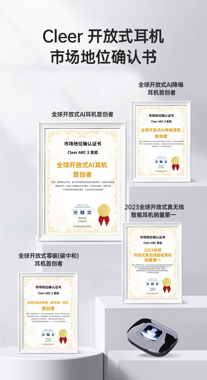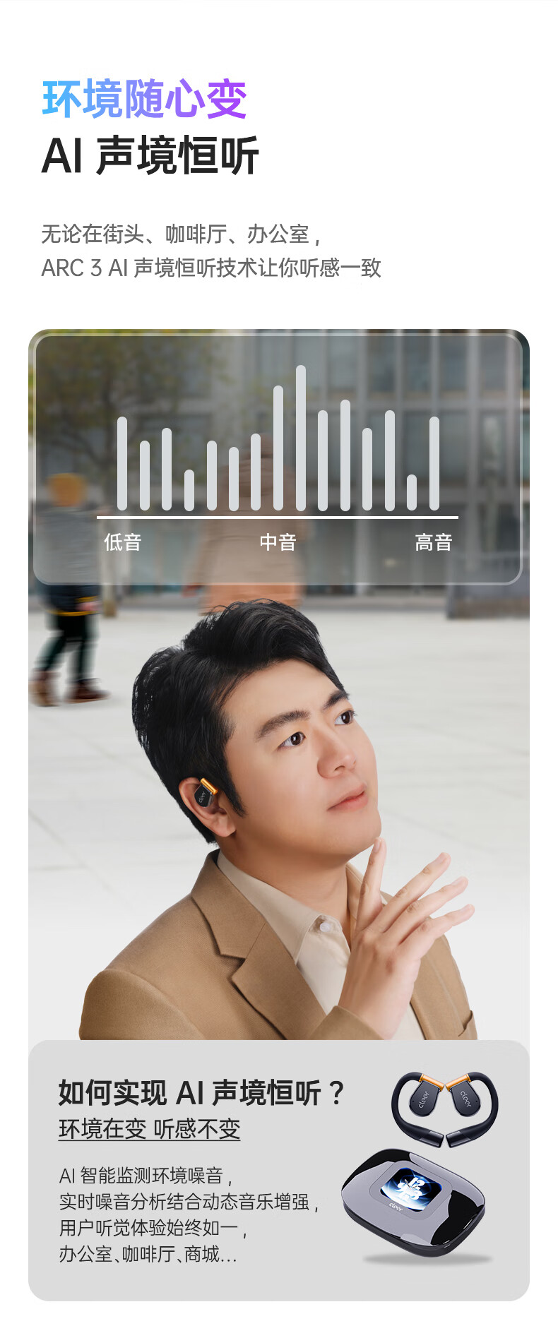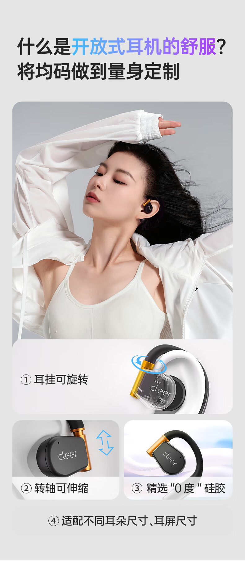 Cleer ARC3代不入耳开放式杜比空间音频AI智能无线蓝牙耳机挂耳式骨传导升级 开学必备