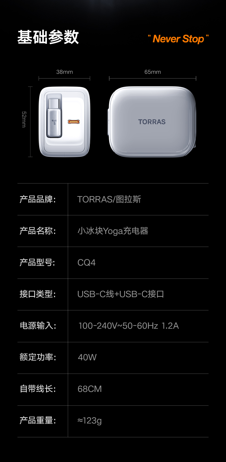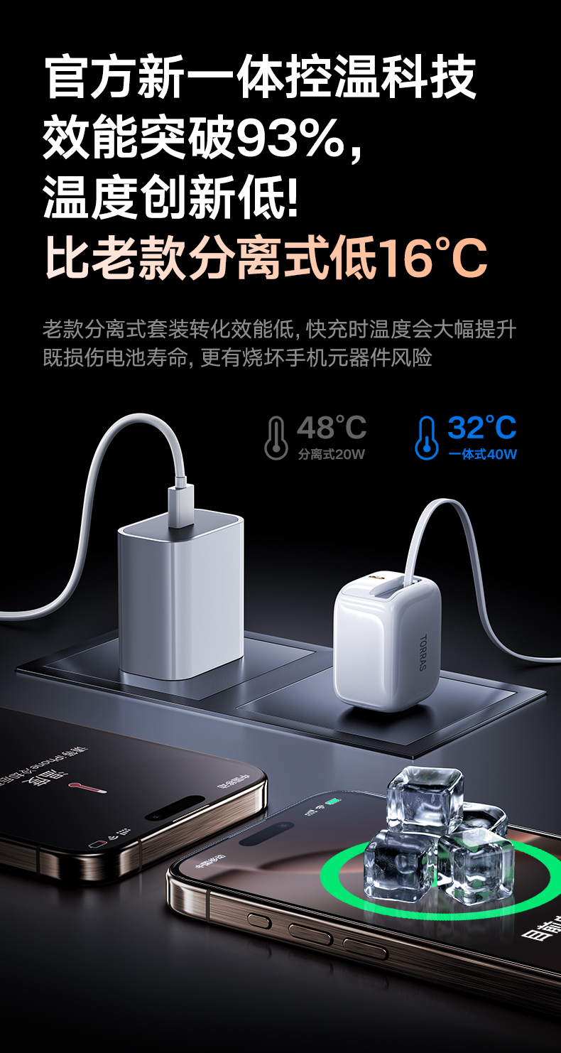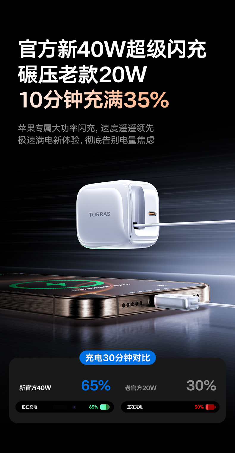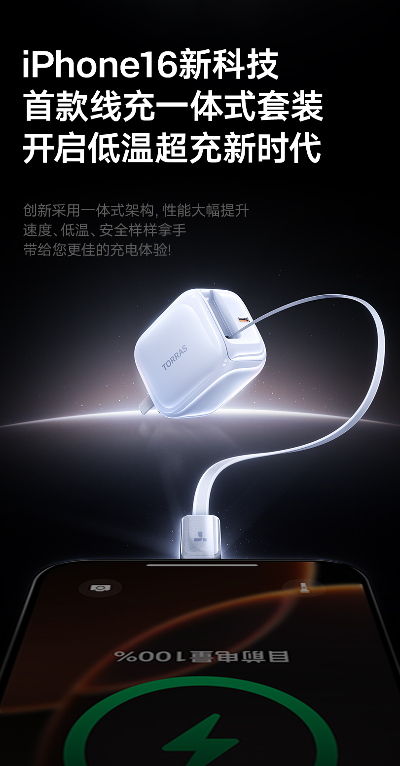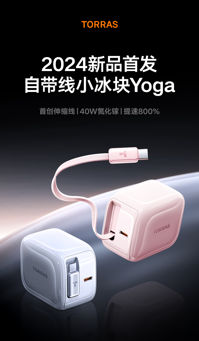 TORRAS/图拉斯 Yoga小冰块适用苹果16充电器iPhone16ProMax手机40W伸缩线快充typec正品套装iPad自带15数据线Plus插头