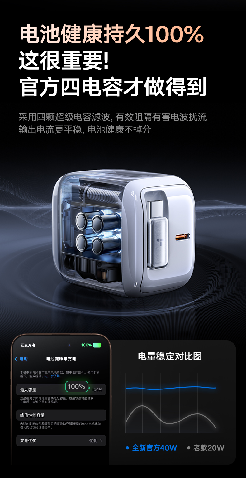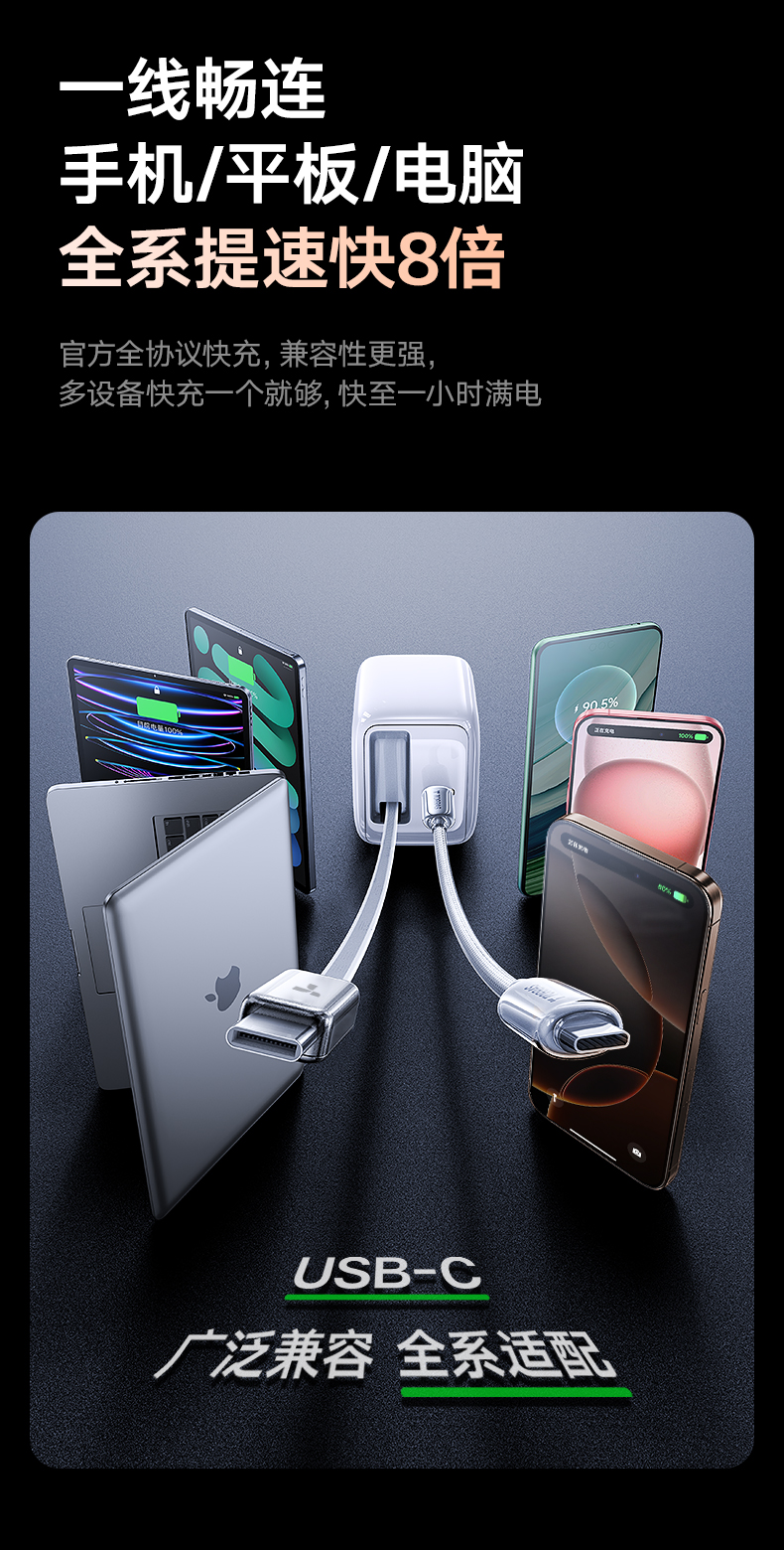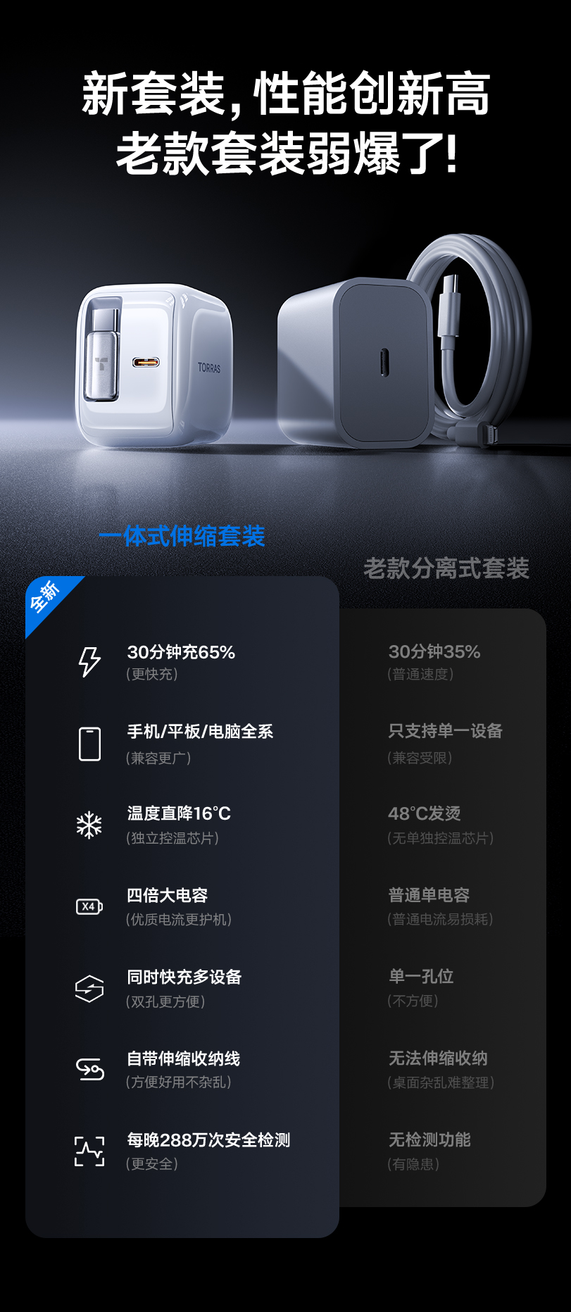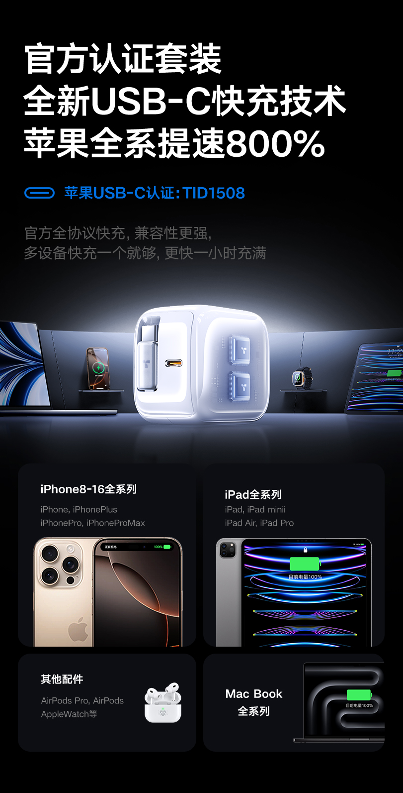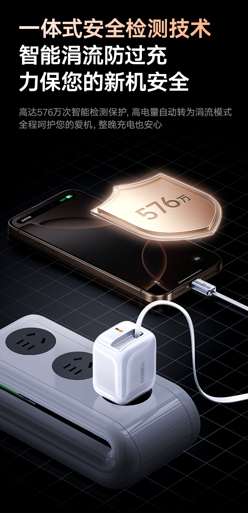 TORRAS/图拉斯 Yoga小冰块适用苹果16充电器iPhone16ProMax手机40W伸缩线快充typec正品套装iPad自带15数据线Plus插头