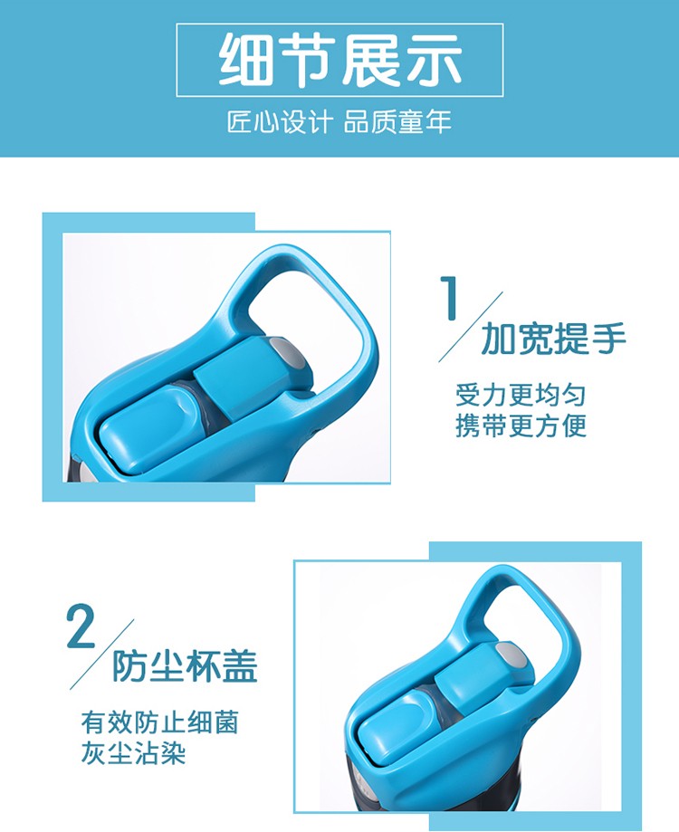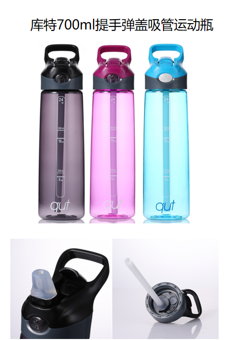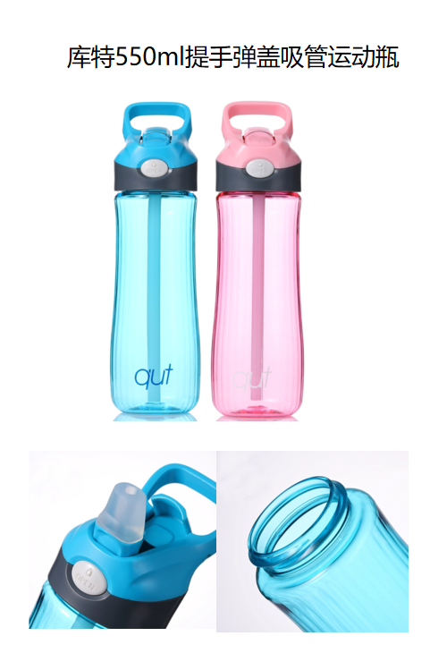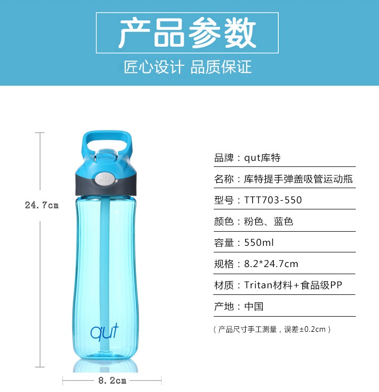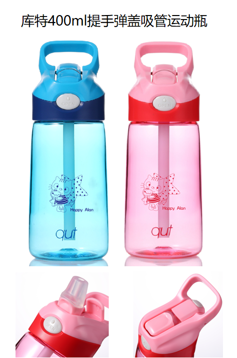 库特运动水杯qut 库特大容量便携随手杯学生成人户外运动水杯塑料夏季儿童水杯吸管杯带提手杯