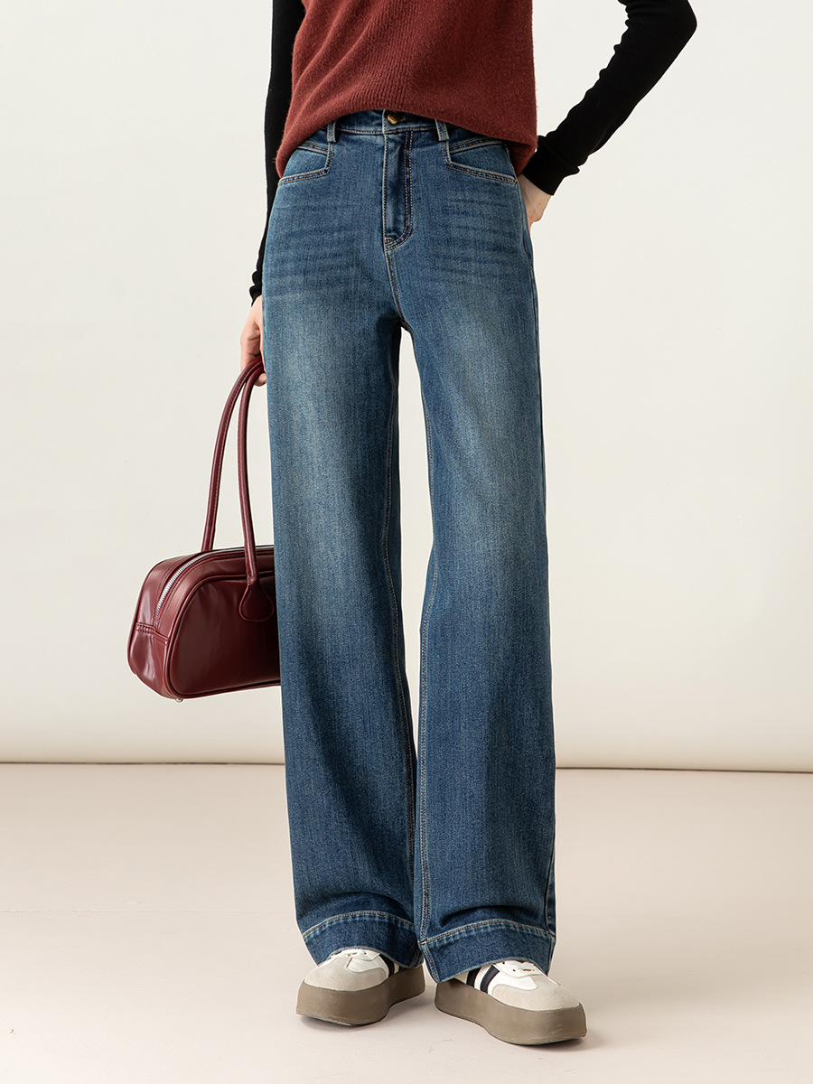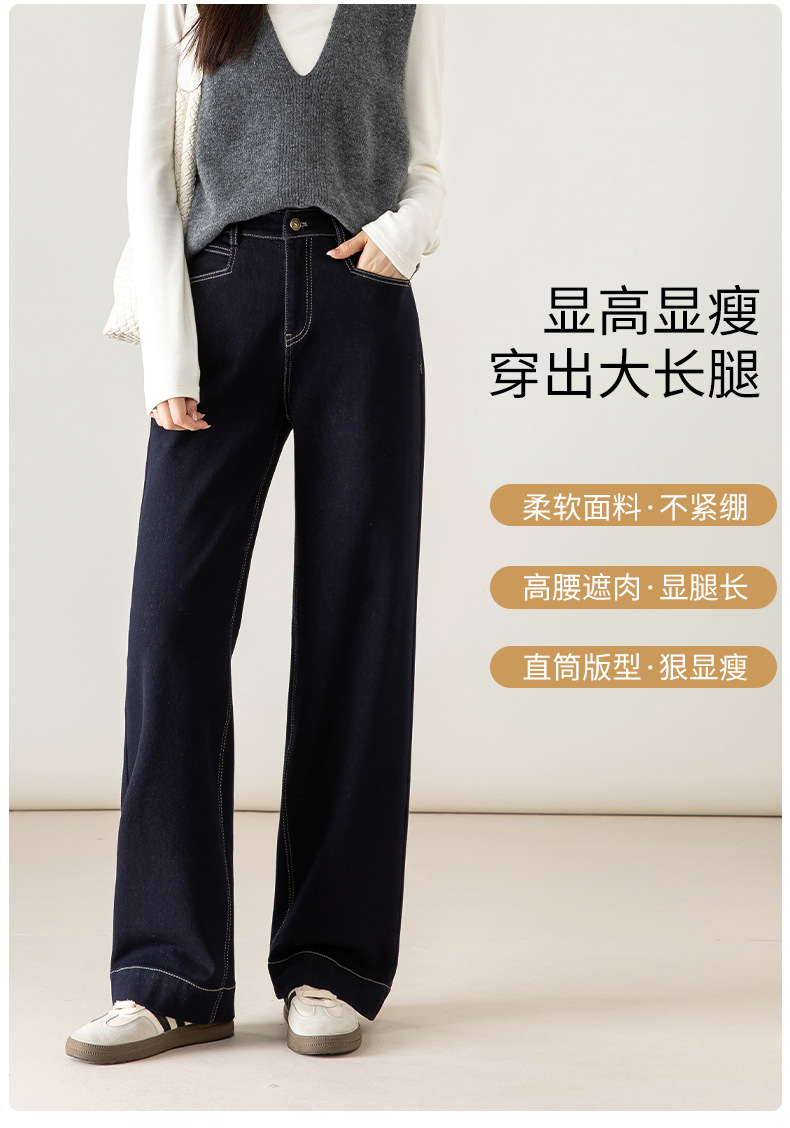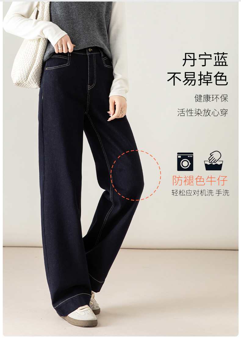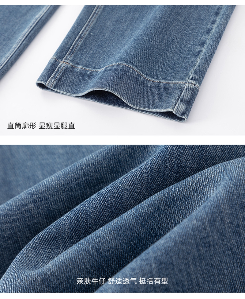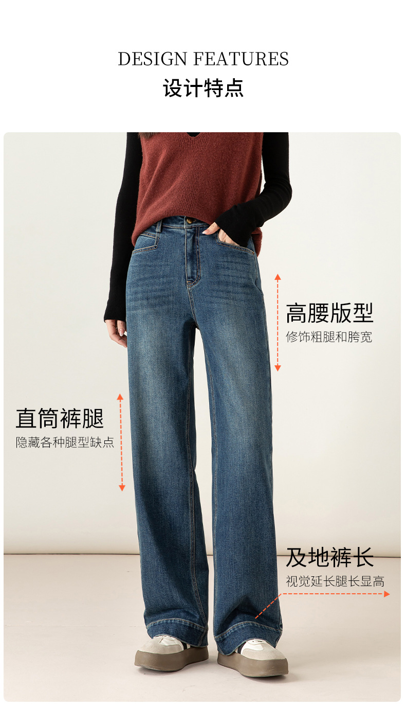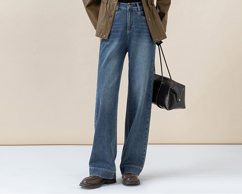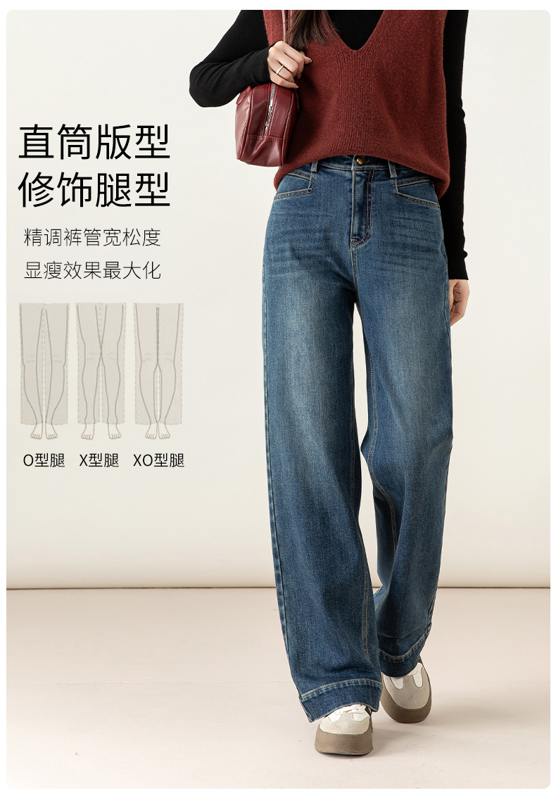 高腰拉链宽松垂感阔腿直筒牛仔裤