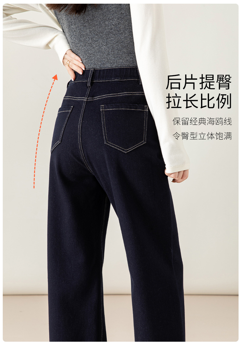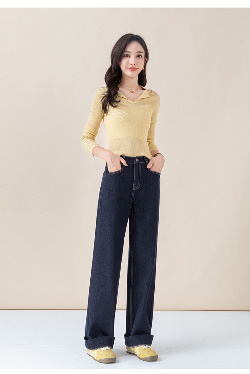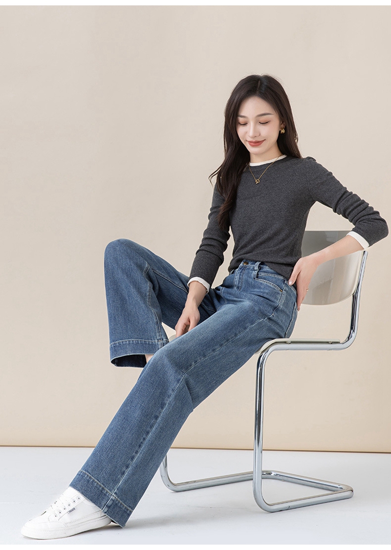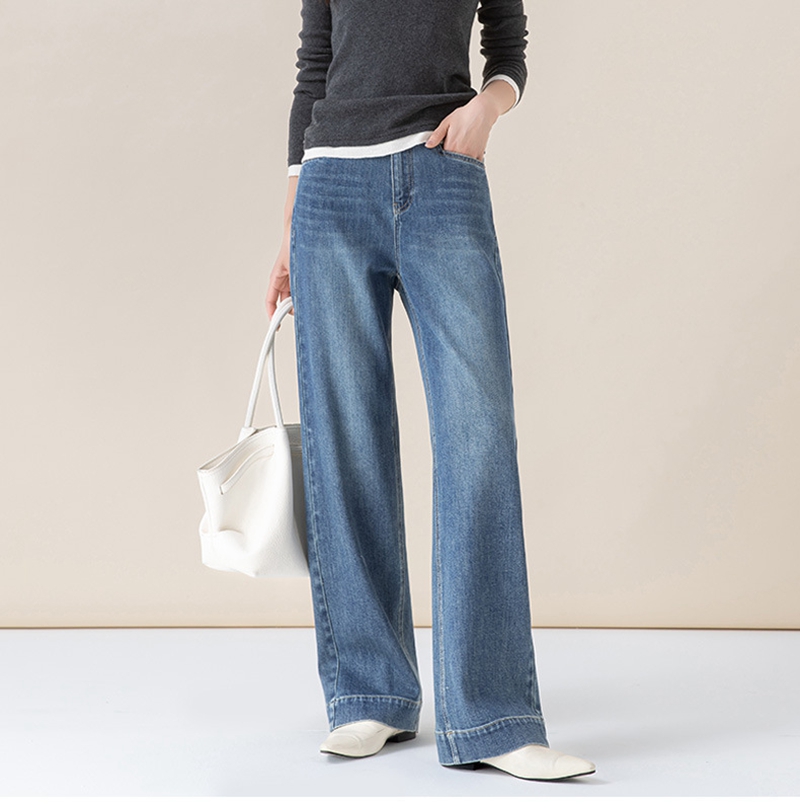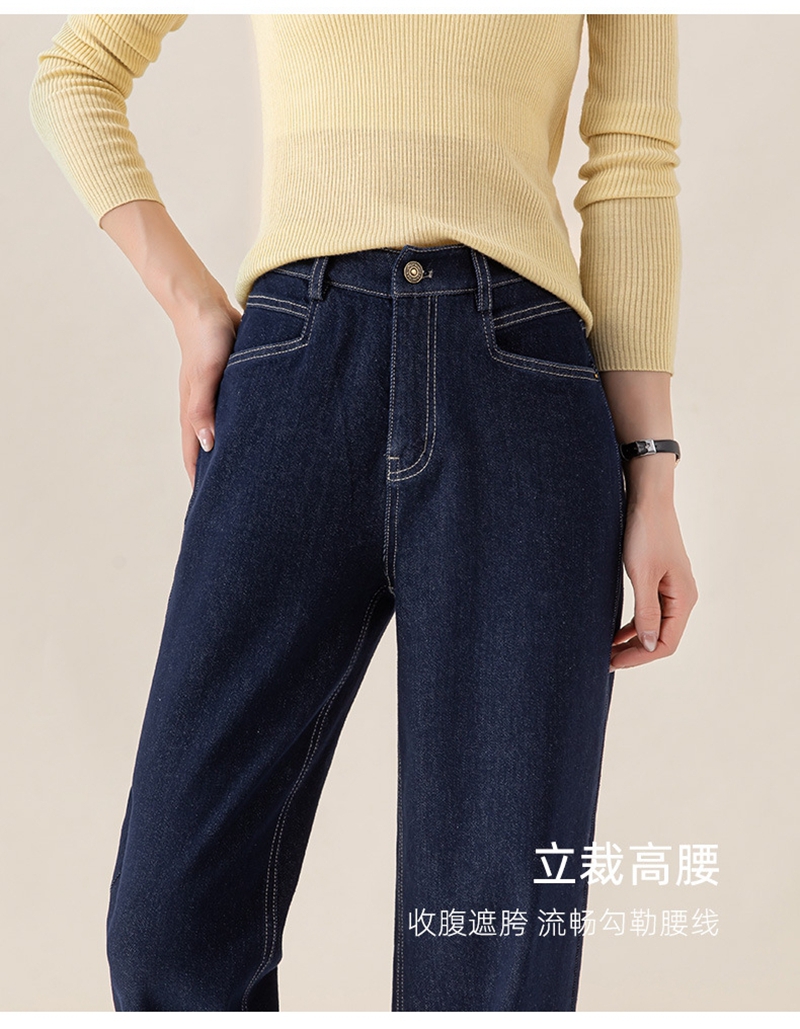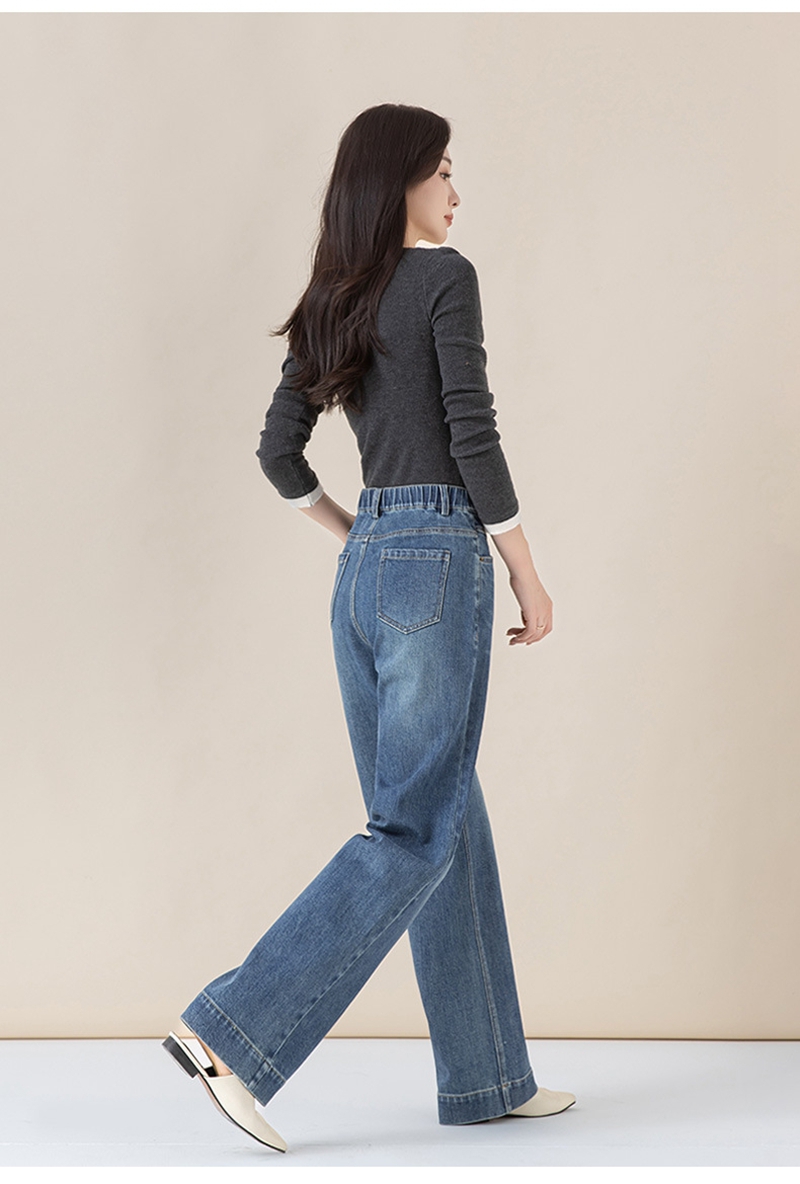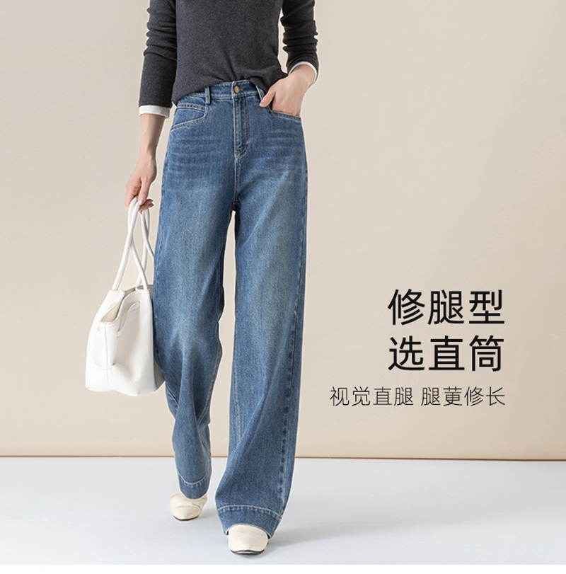 高腰拉链宽松垂感阔腿直筒牛仔裤