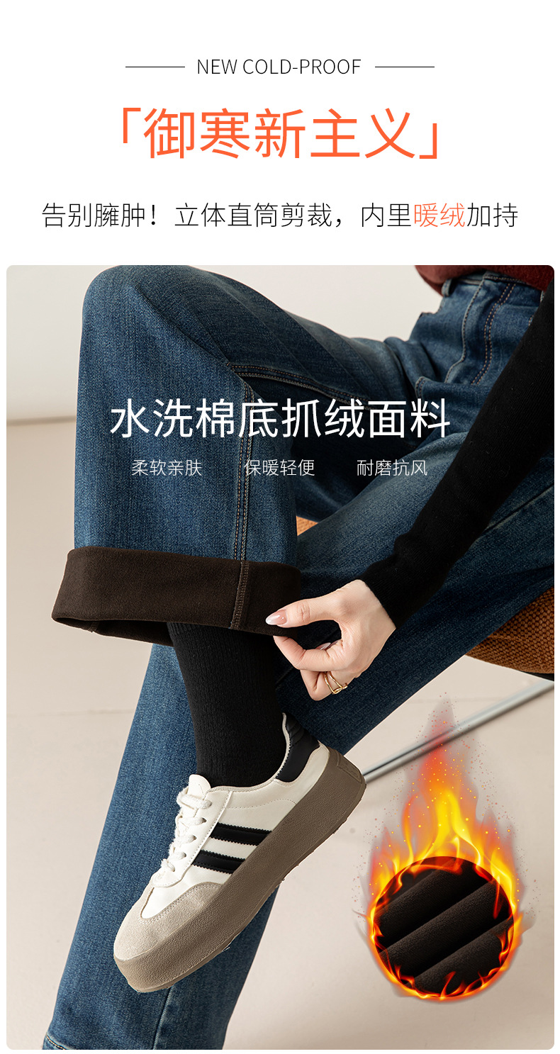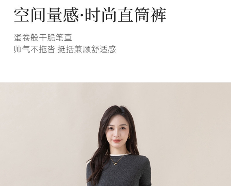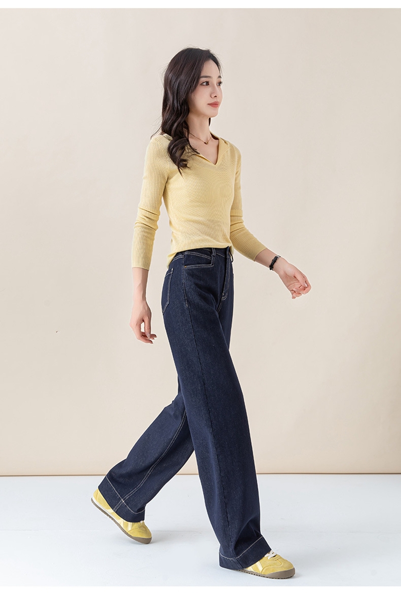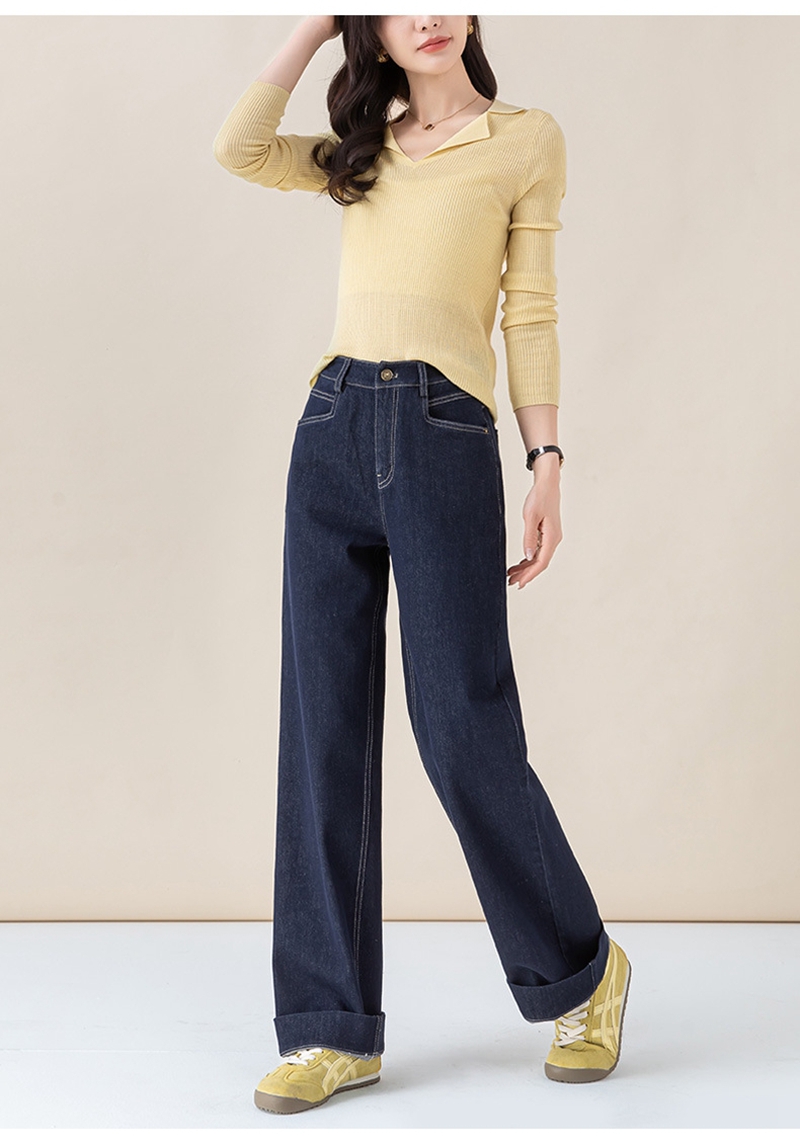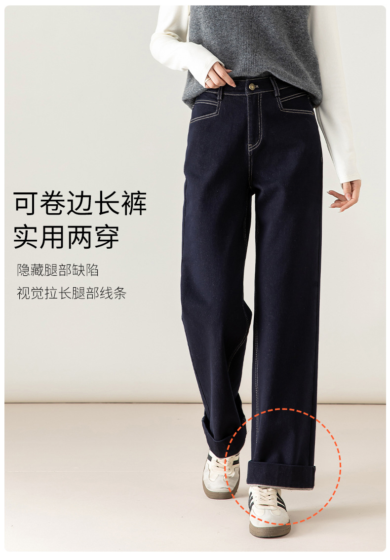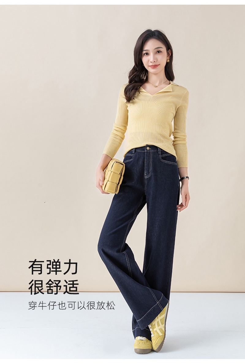 高腰拉链宽松垂感阔腿直筒牛仔裤