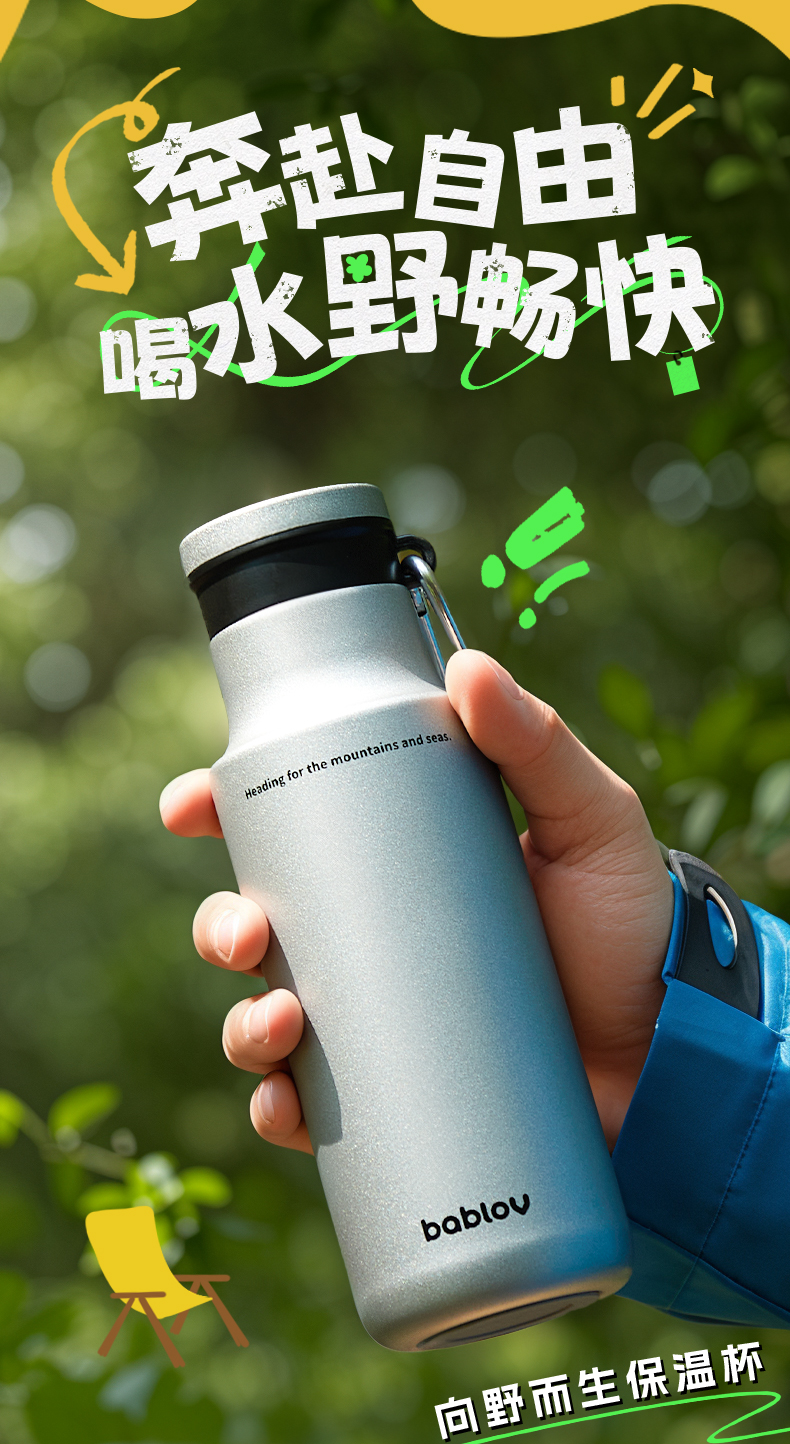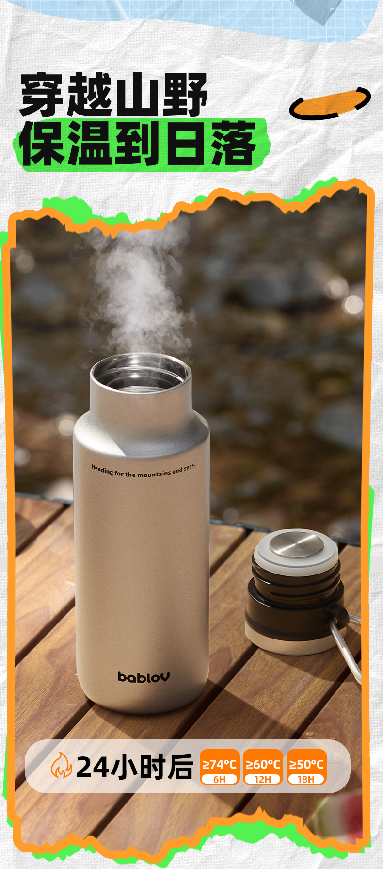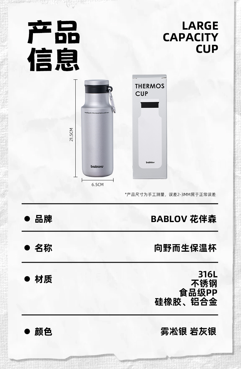 bablov保温杯女生运动随行316L不锈钢杯子男款轻便携登山户外水杯