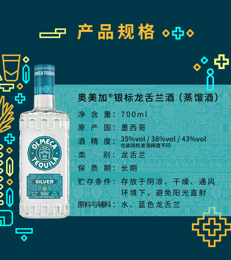 奥美加(OLMECA)银标龙舌兰酒 特其拉酒 墨西哥进口洋酒 调酒基酒 700ml