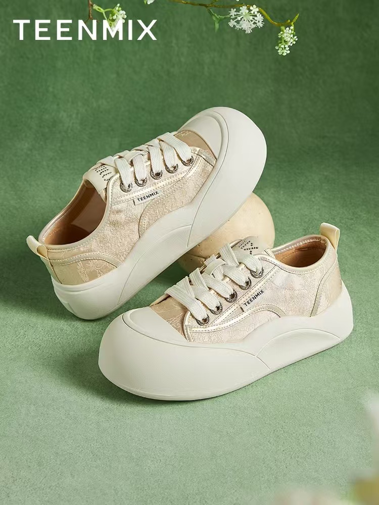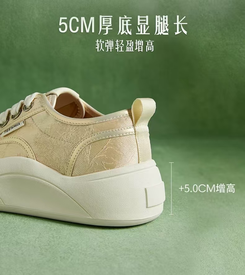 【内购会】天美意新中式浮光竹影厚底增高小白鞋女休闲板鞋帆布鞋2024秋新款