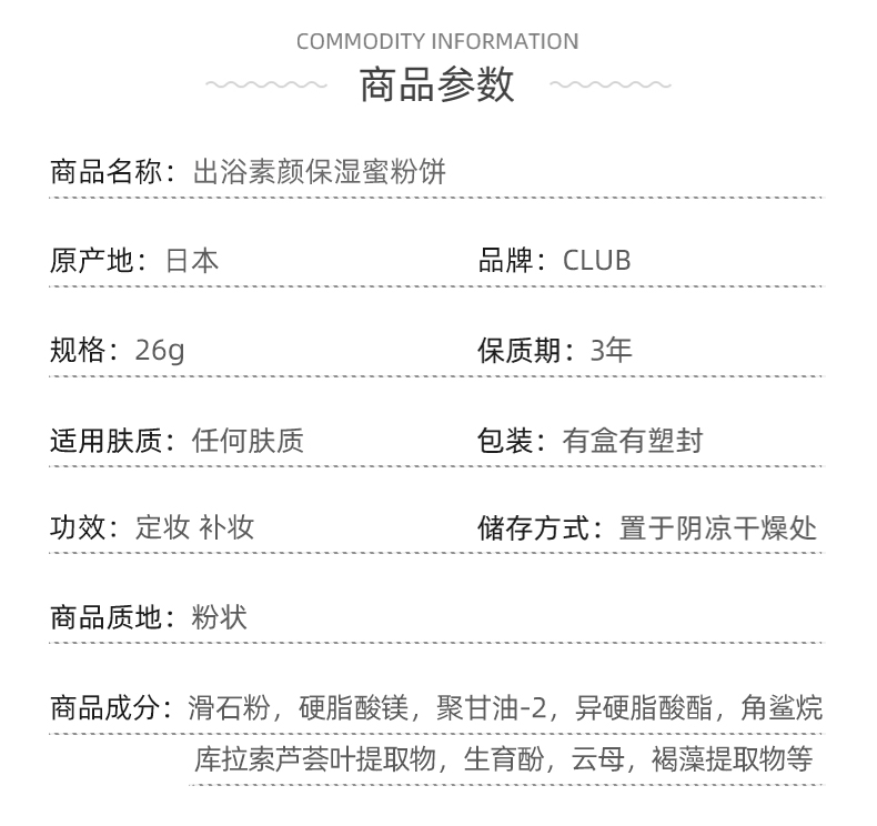 日本Club晚安粉素颜粉26g 蜜粉散粉保湿控油养肤定妆粉持久粉饼
