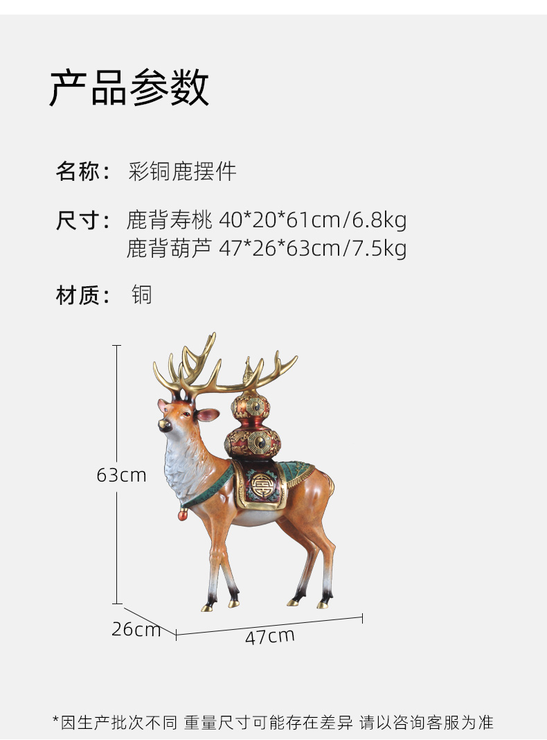 E-XR-BLN8473 招财铜鹿(葫芦) 彩铜工艺 48*28*62 大号