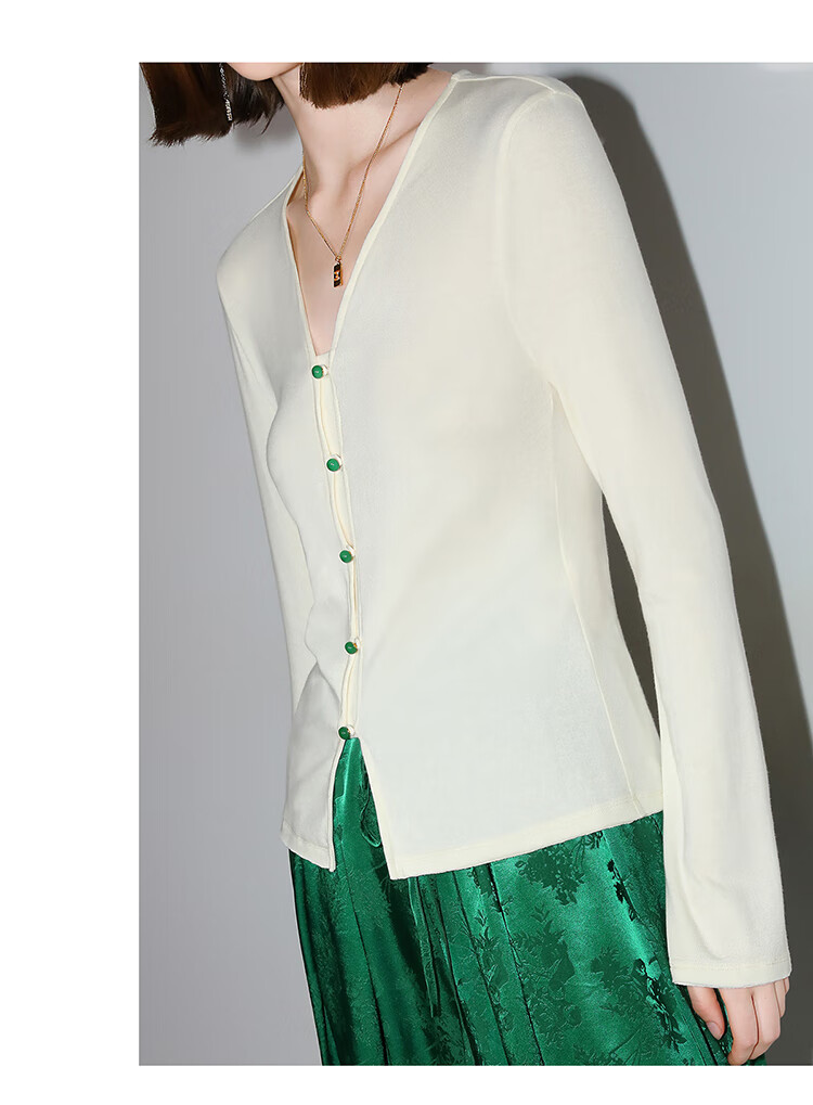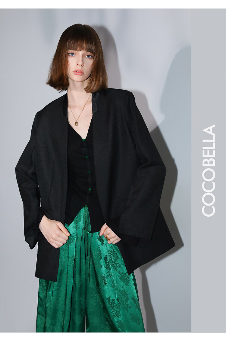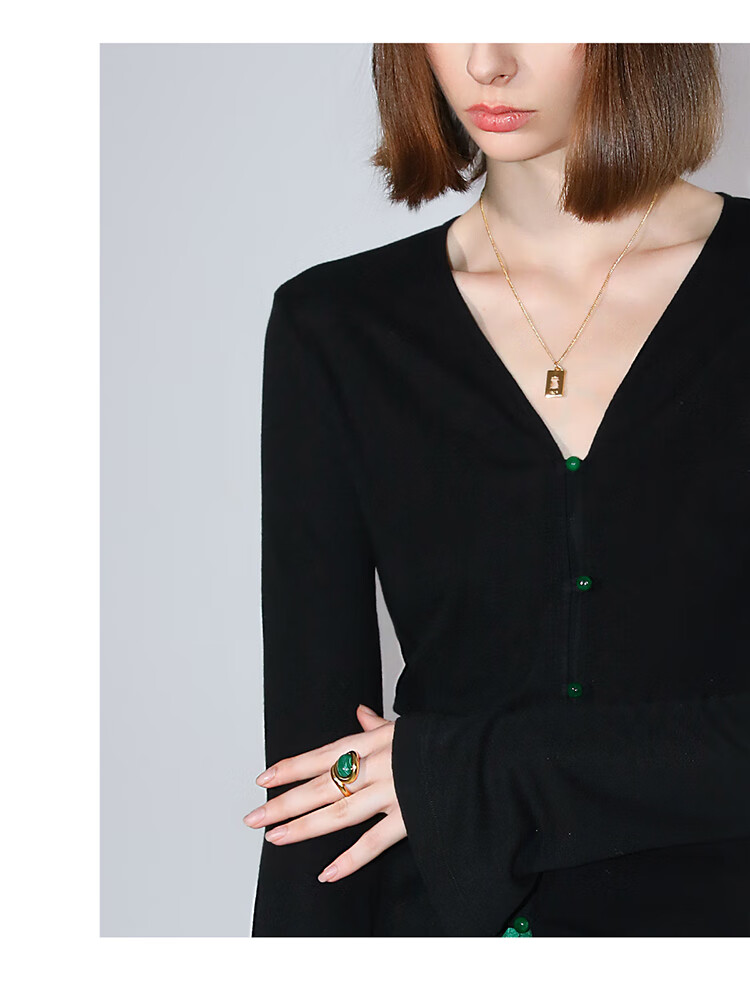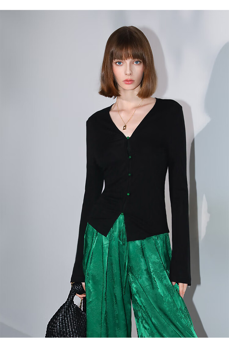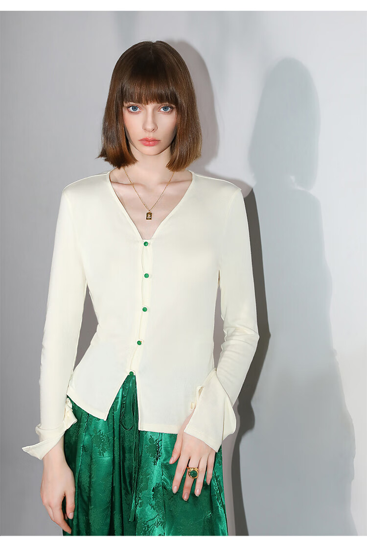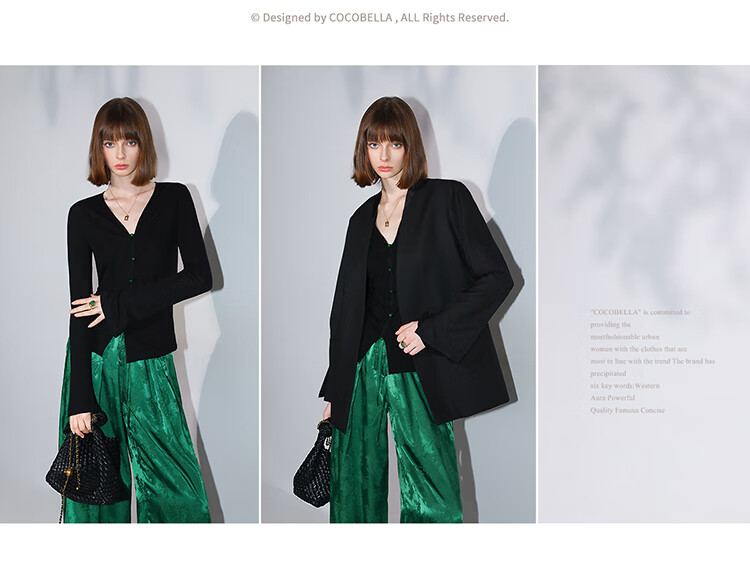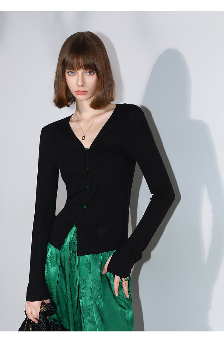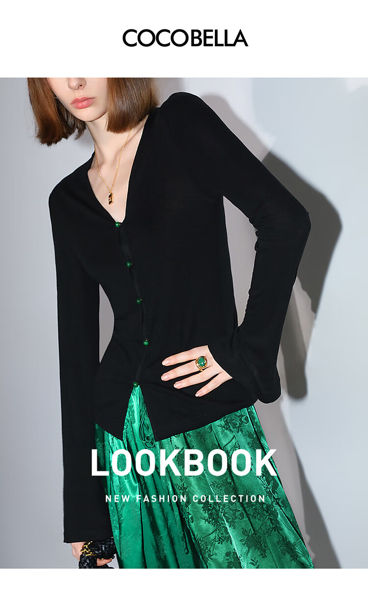 COCOBELLA新中式玉石扣针织衫女早秋设计感开叉长袖开衫MZ0012B