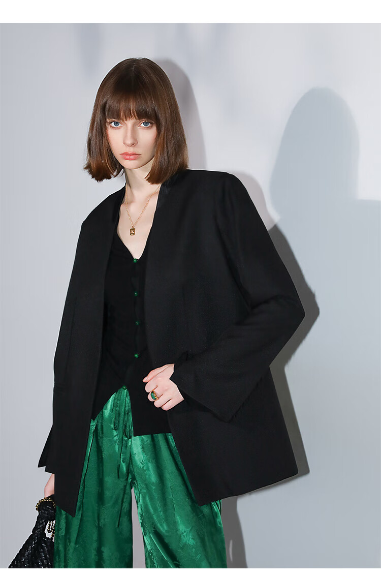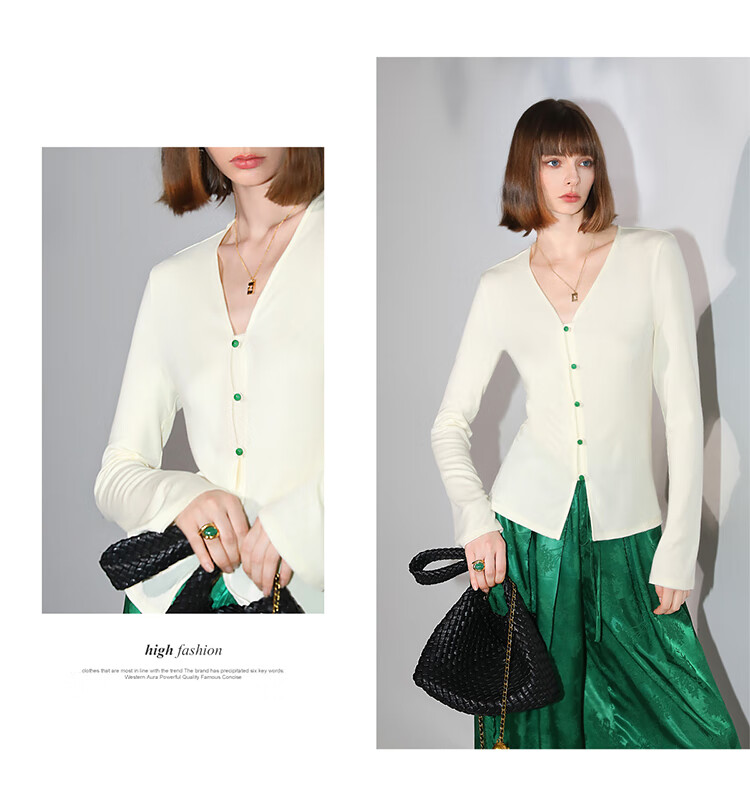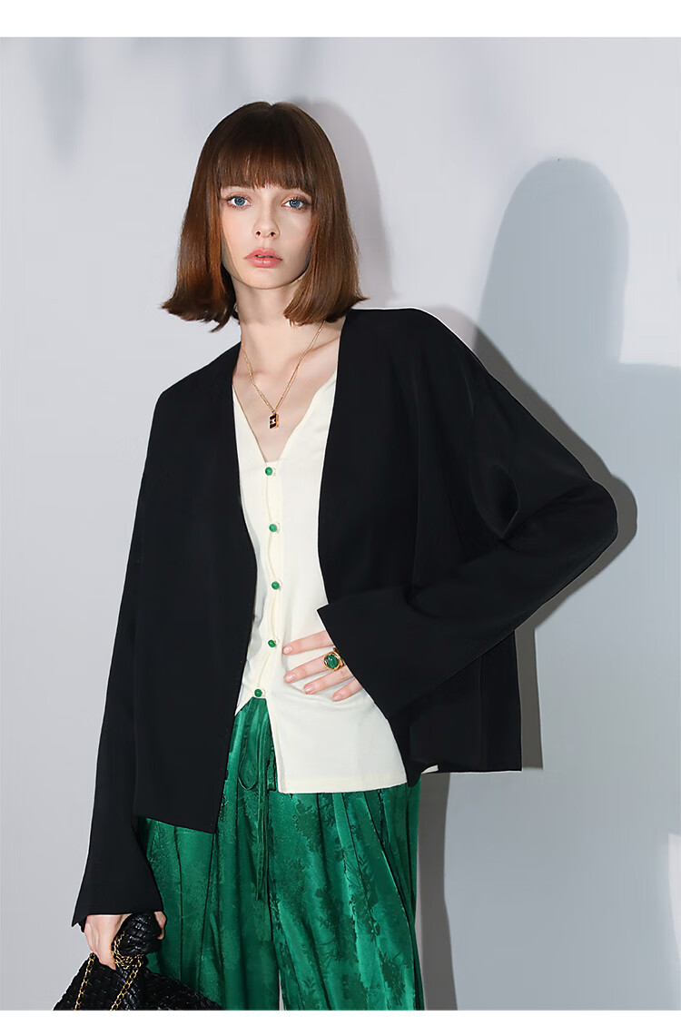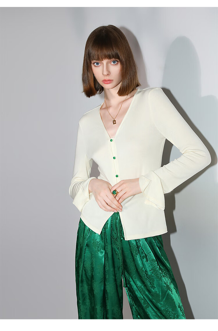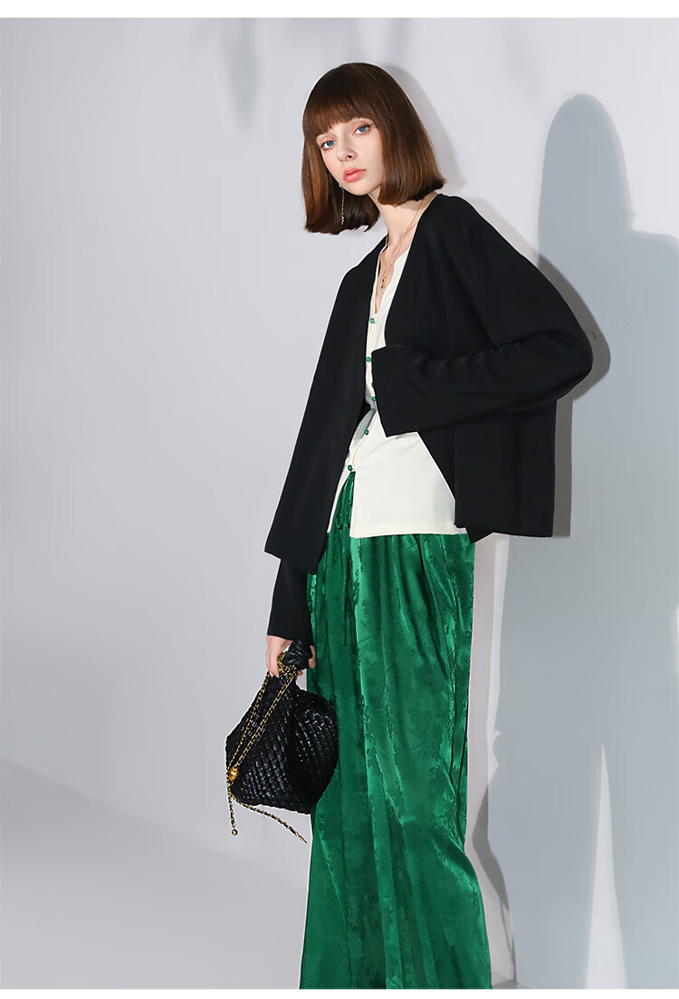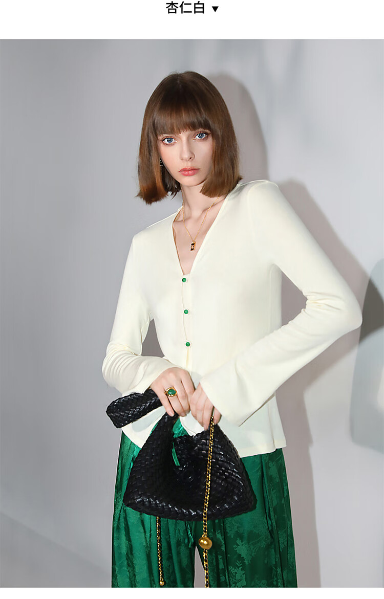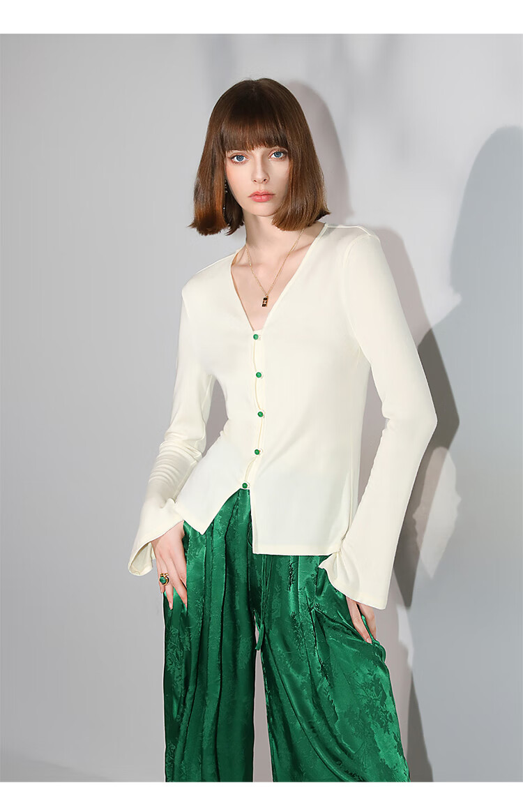 COCOBELLA新中式玉石扣针织衫女早秋设计感开叉长袖开衫MZ0012B