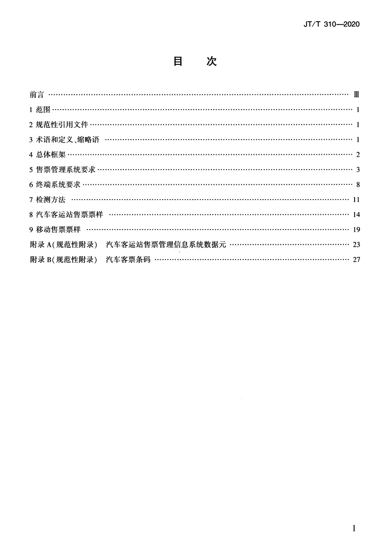 | 汽车客运站售票管理信息系统规范(JT/T 310—2020) | ||