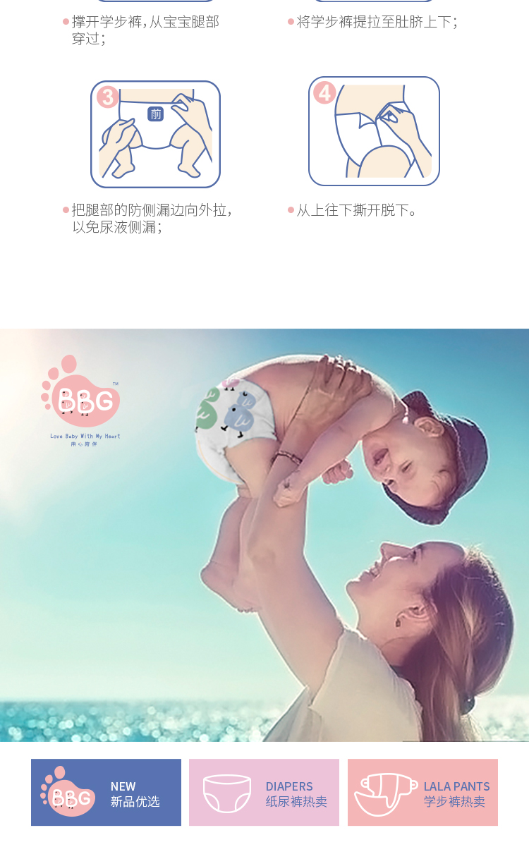 BBG变频蓝芯羽柔奢护学步裤