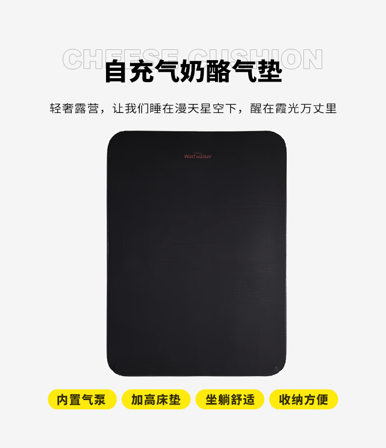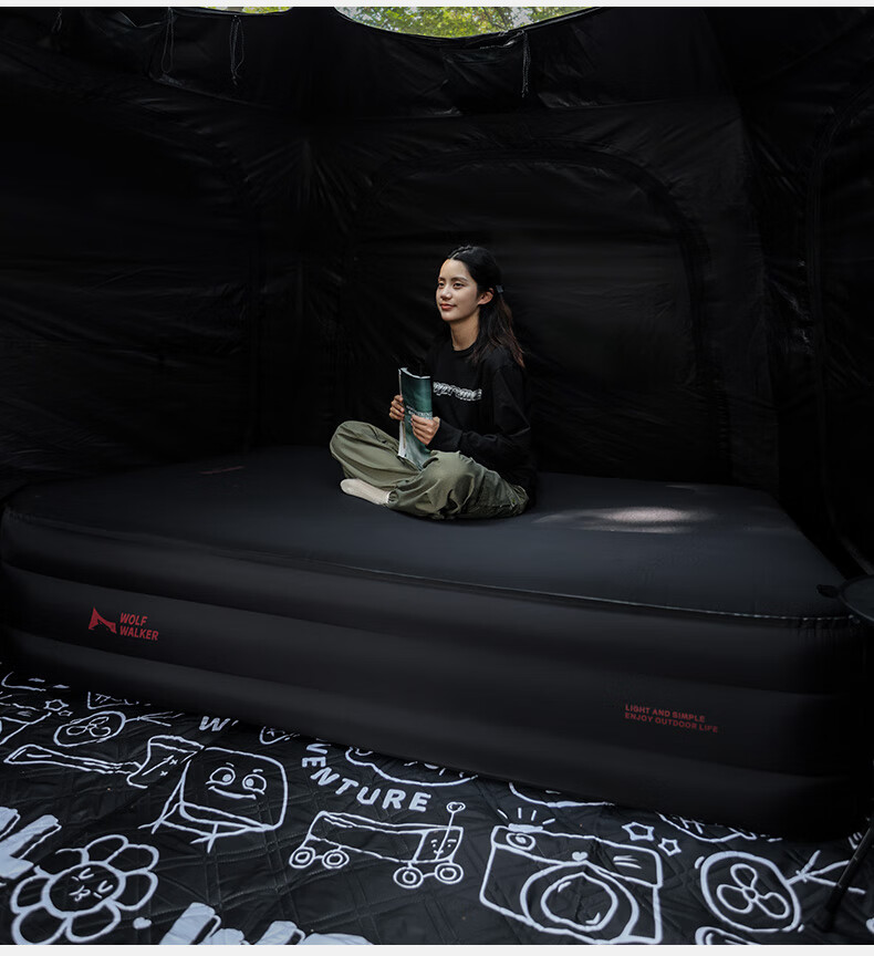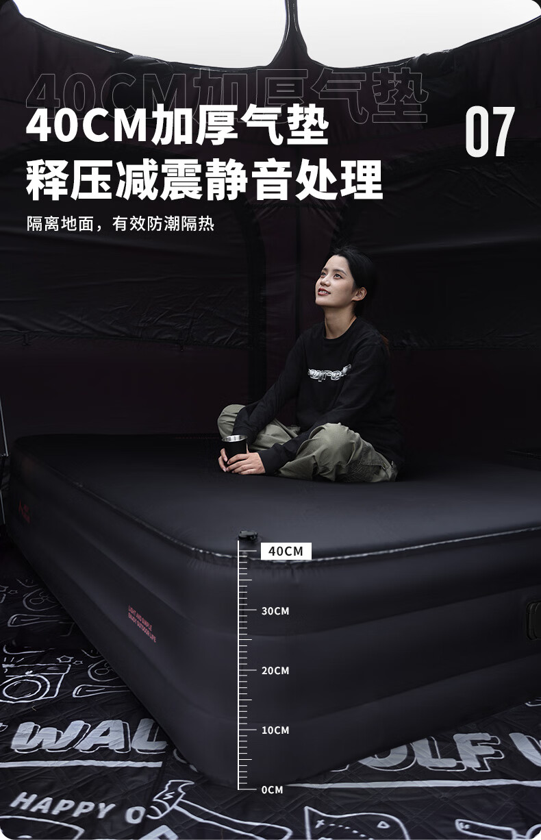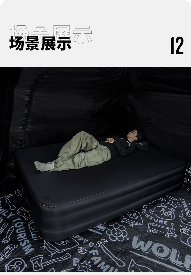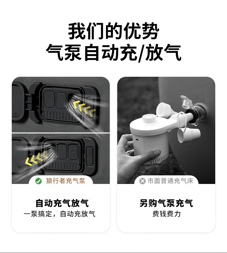 狼行者充气床垫户外露营防潮加高气垫床海绵充气睡垫全自动户外充气垫 绒-一键式充放奶酪床