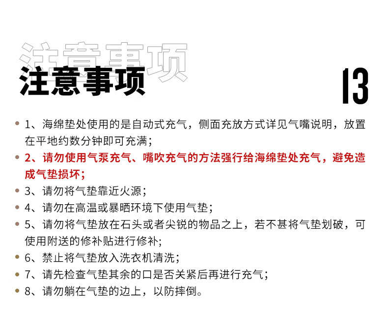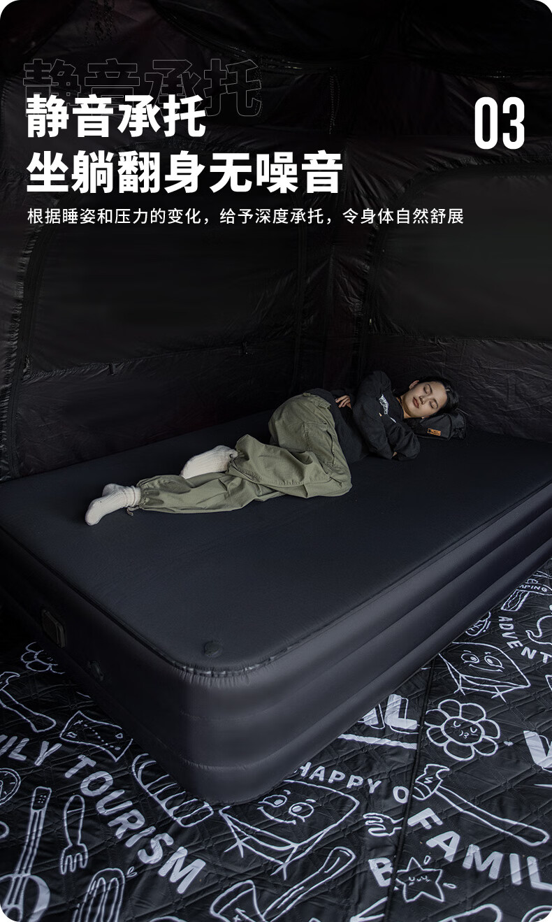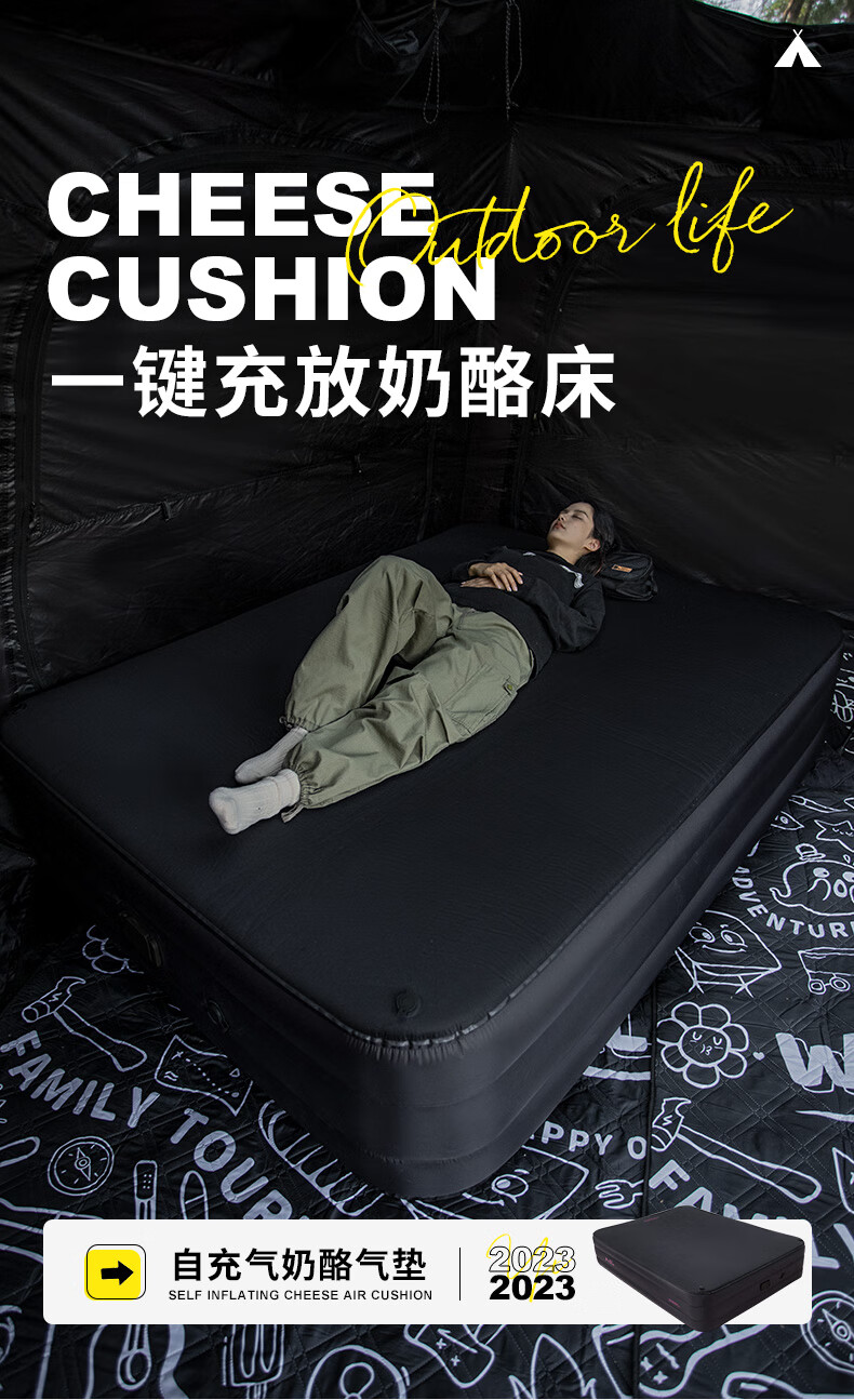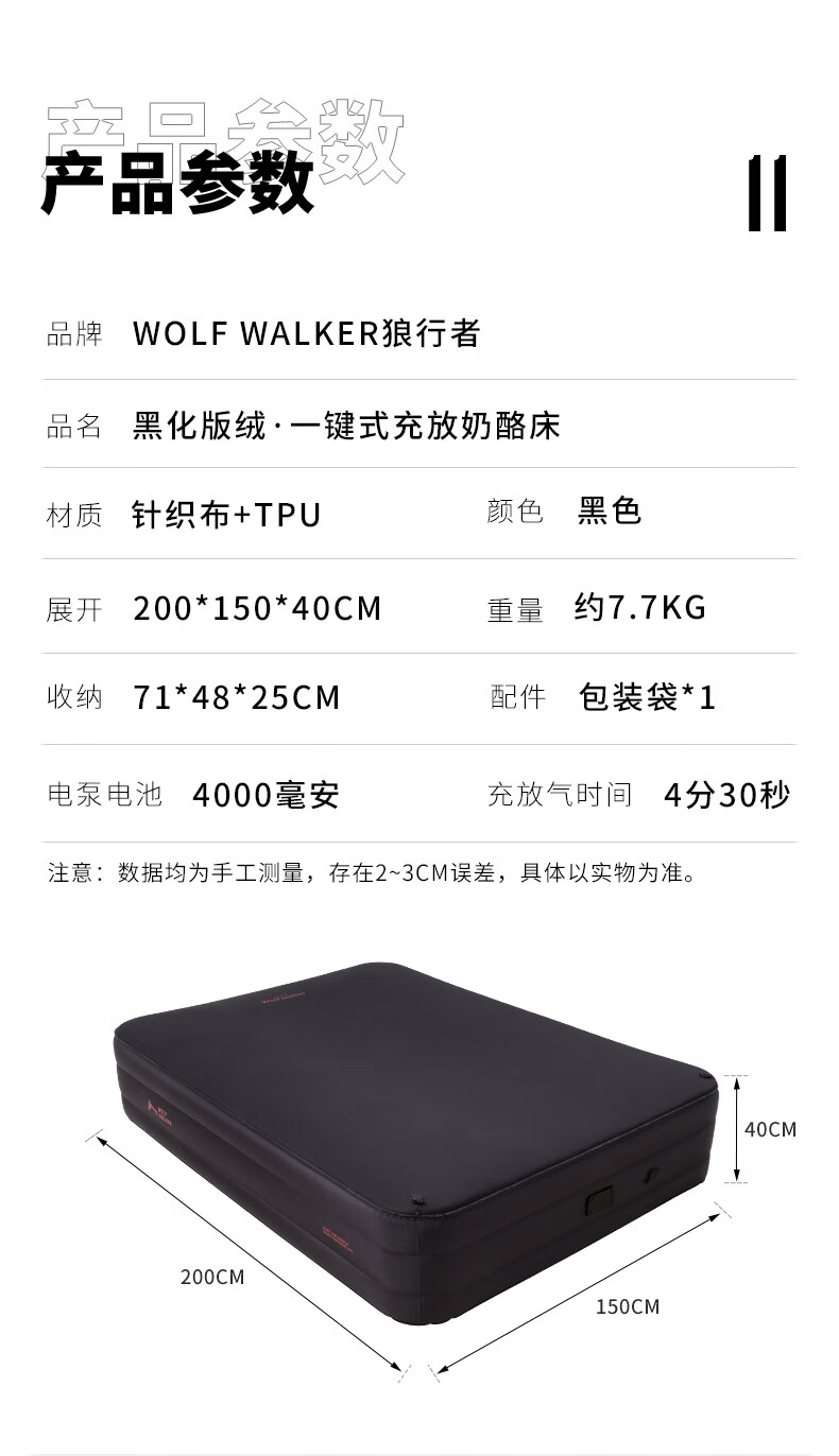 狼行者充气床垫户外露营防潮加高气垫床海绵充气睡垫全自动户外充气垫 绒-一键式充放奶酪床