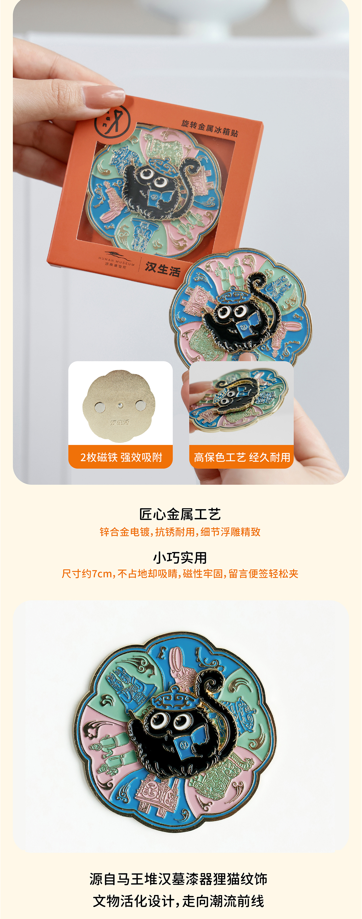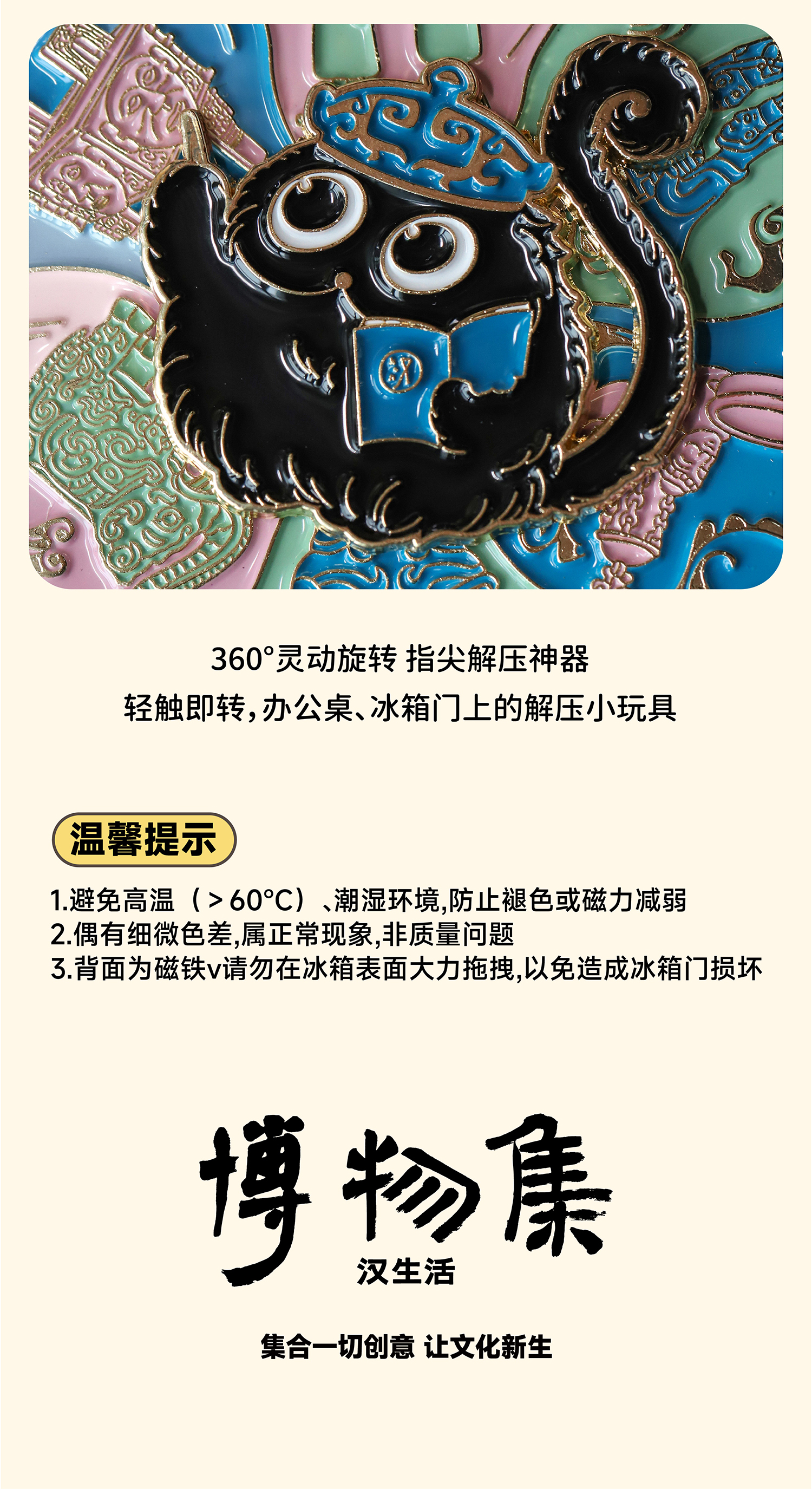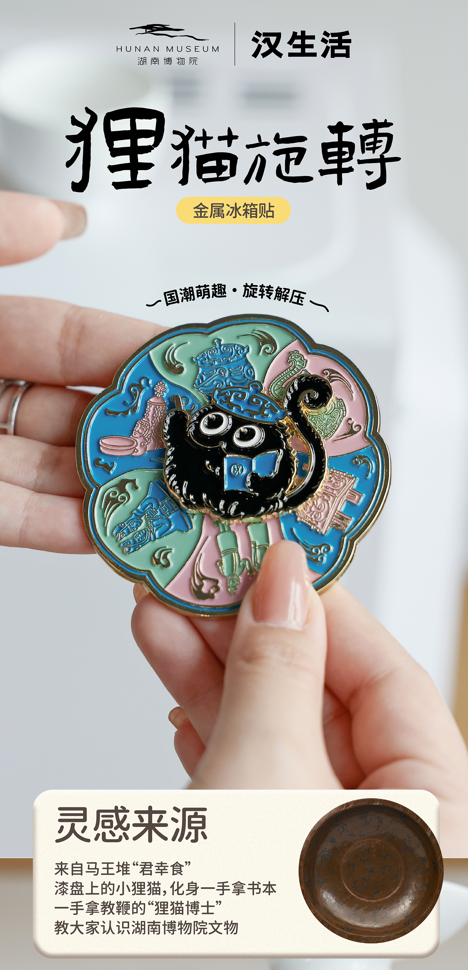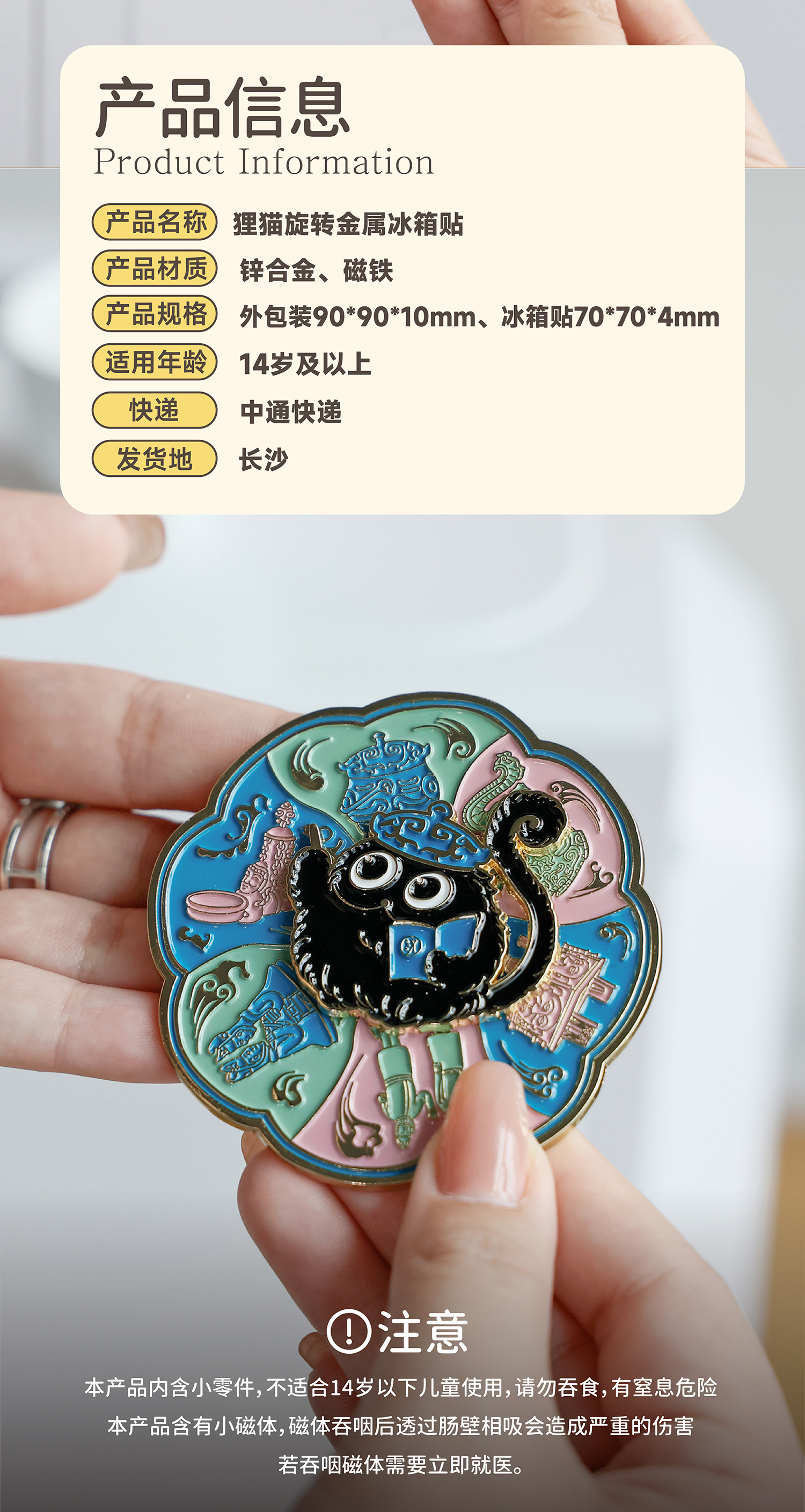 狸猫旋转金属冰箱贴 狸猫文创旅游礼物磁吸纪念品