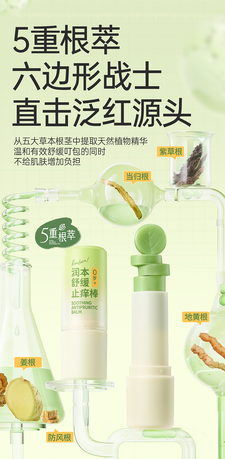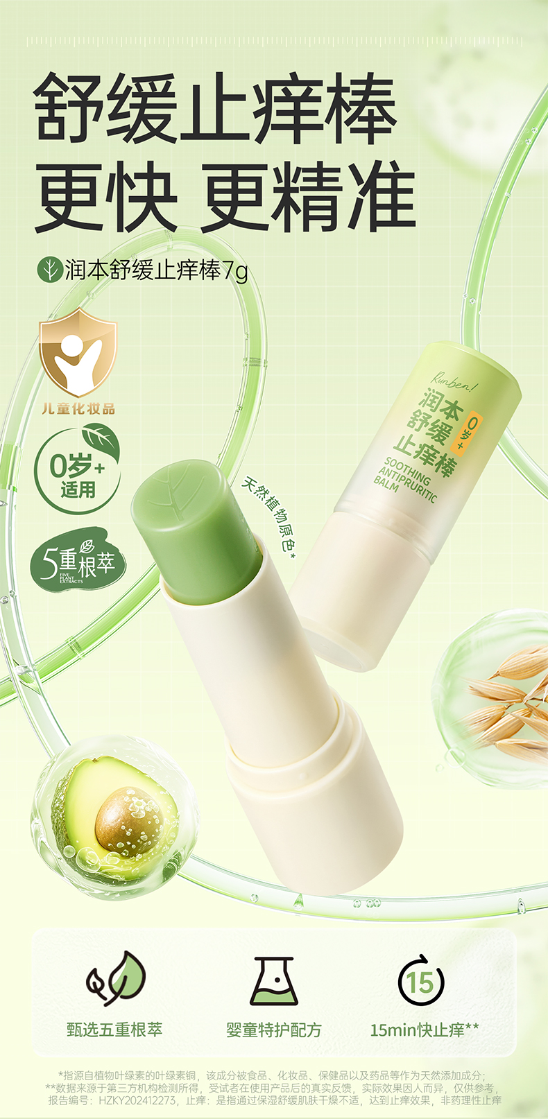 润本舒缓止痒膏 舒缓蚊虫子叮咬清凉便携 青草膏