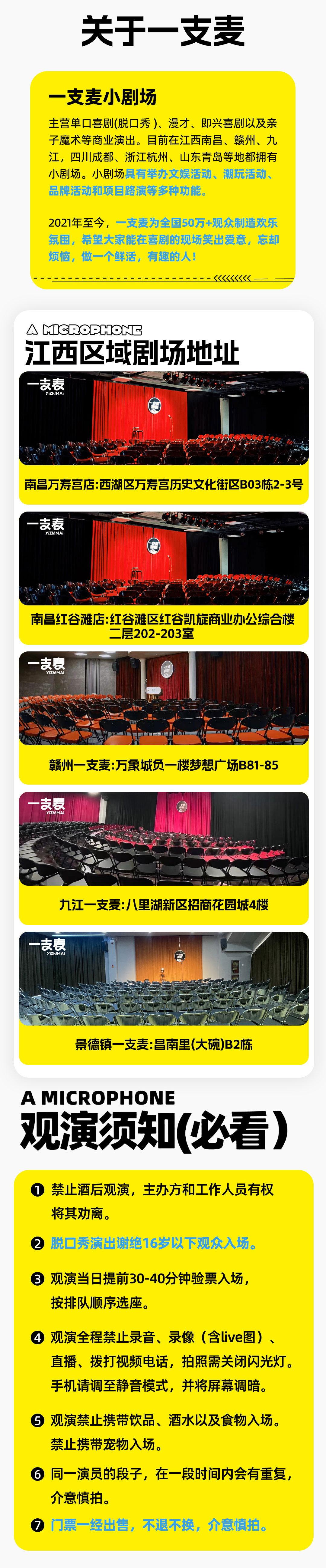 - 一支麦成立于2018年,其小剧场于2021年正式开业,致力于打造年轻人更喜欢的城市文娱新空间。目前主营单口喜剧、脱口秀、漫才、即兴喜剧以及近景魔术等商业演出,是一支麦喜剧的常驻场地。