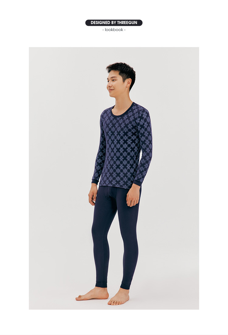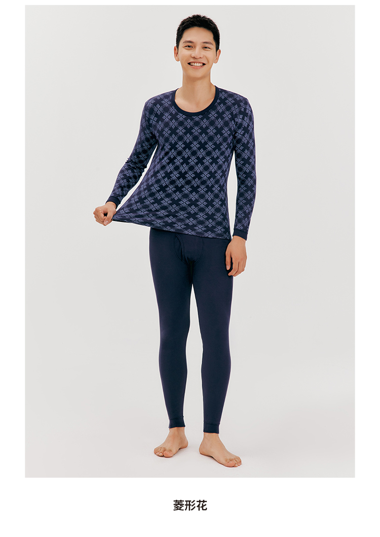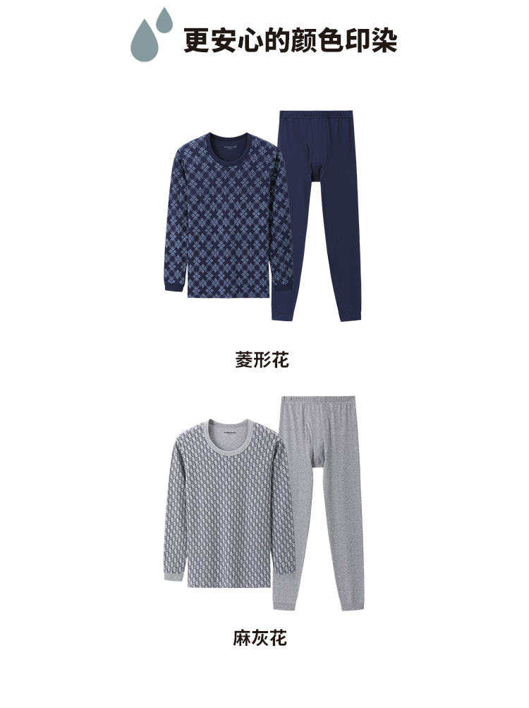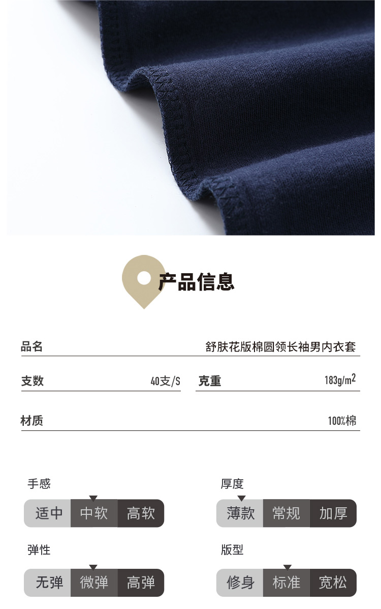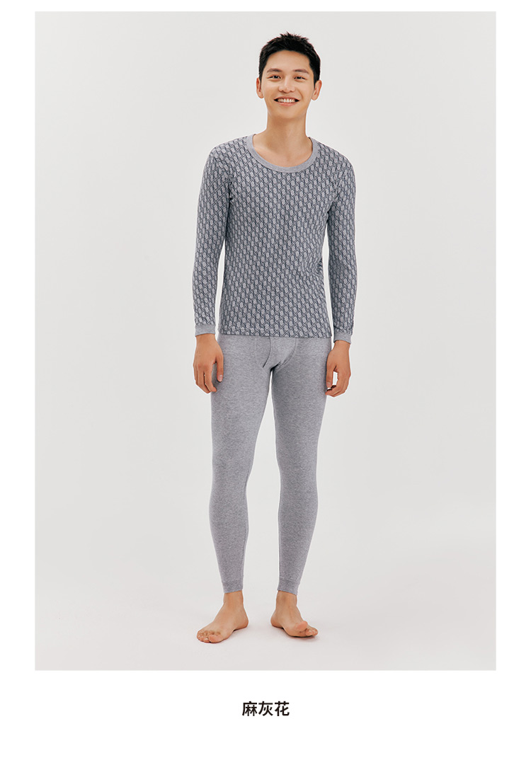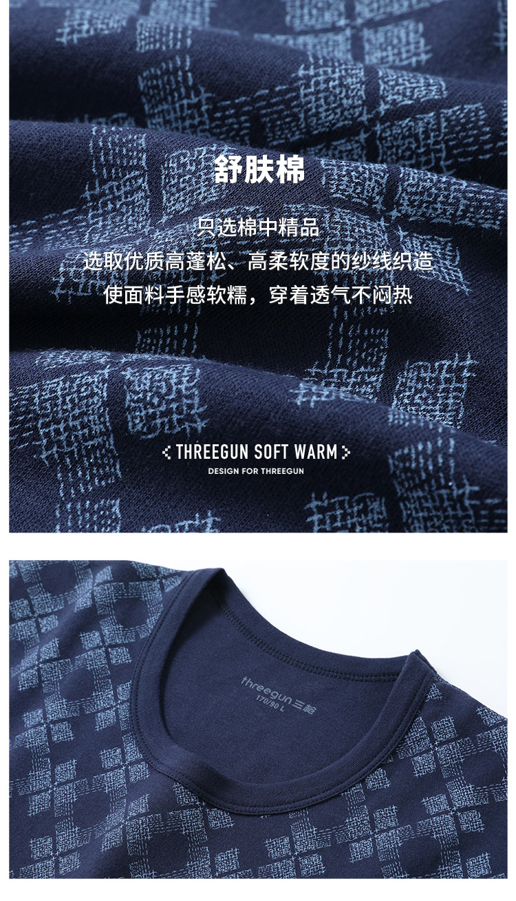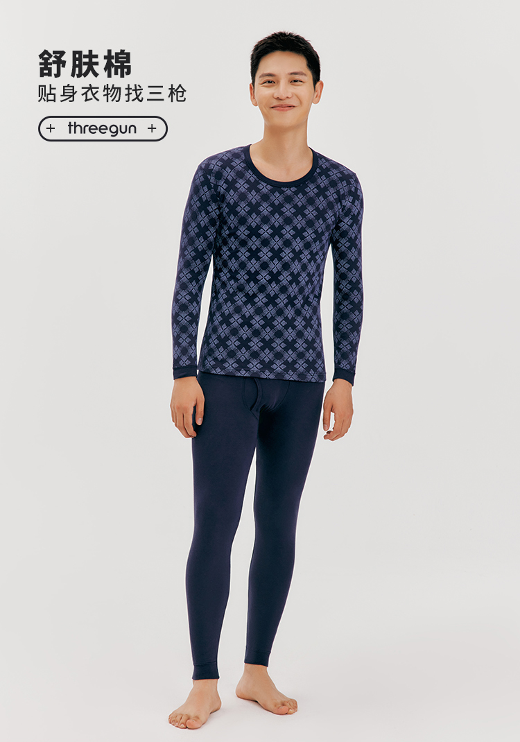 Threegun三枪 舒肤花版棉圆领长袖男士内衣套-23719D011