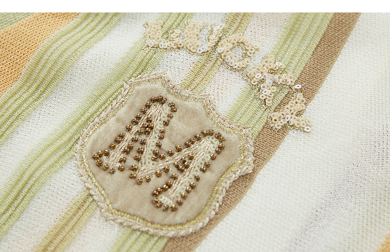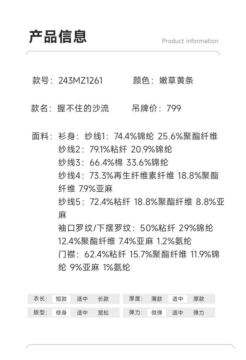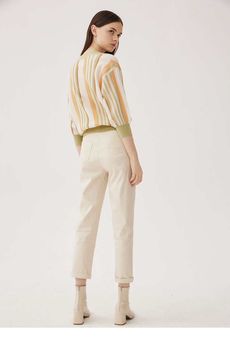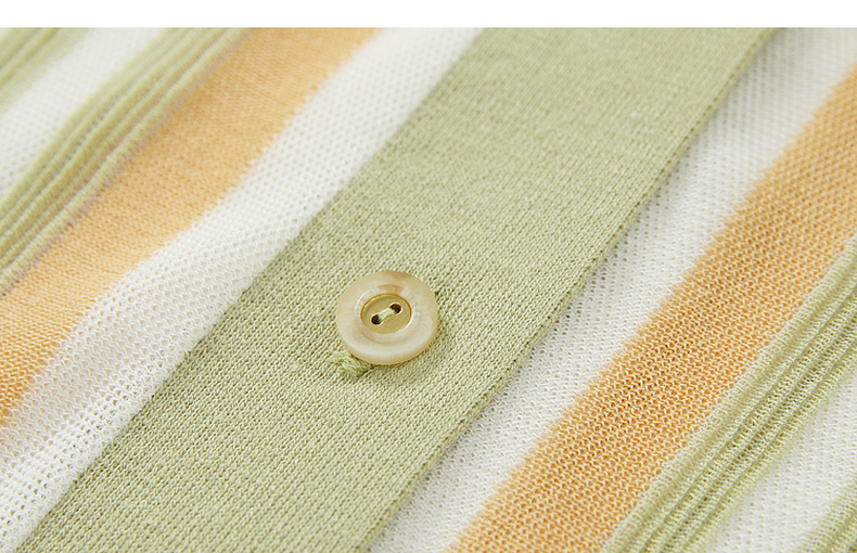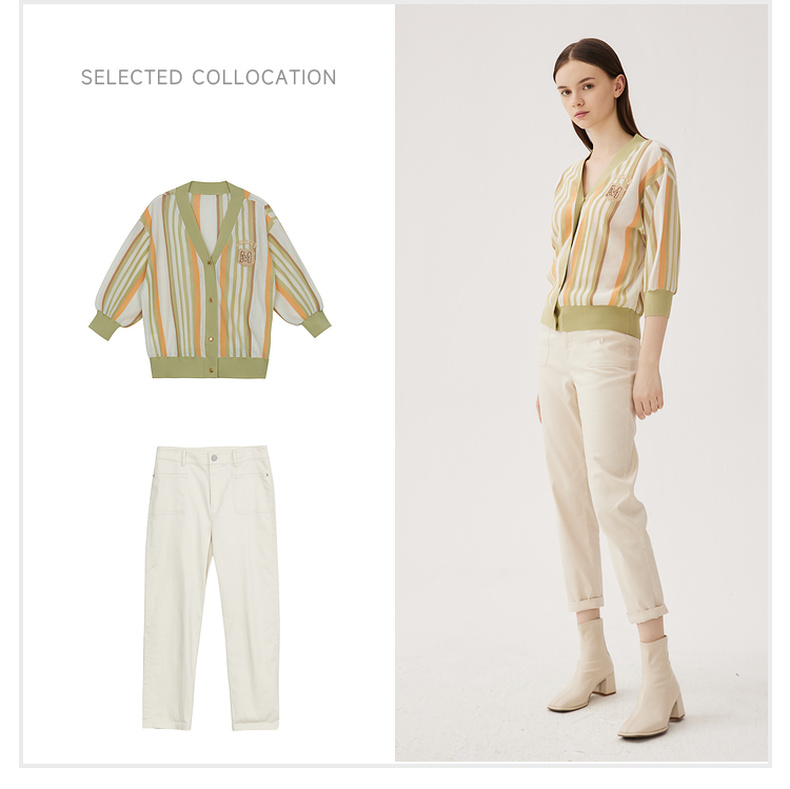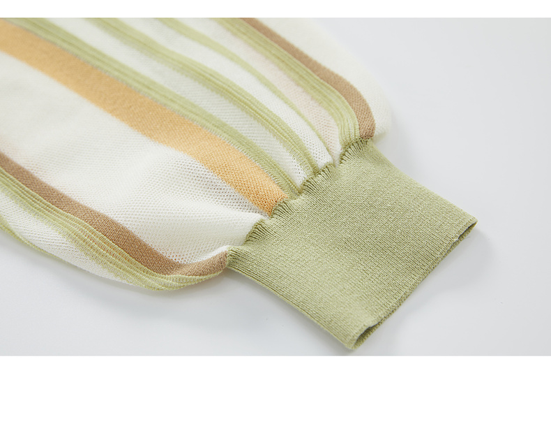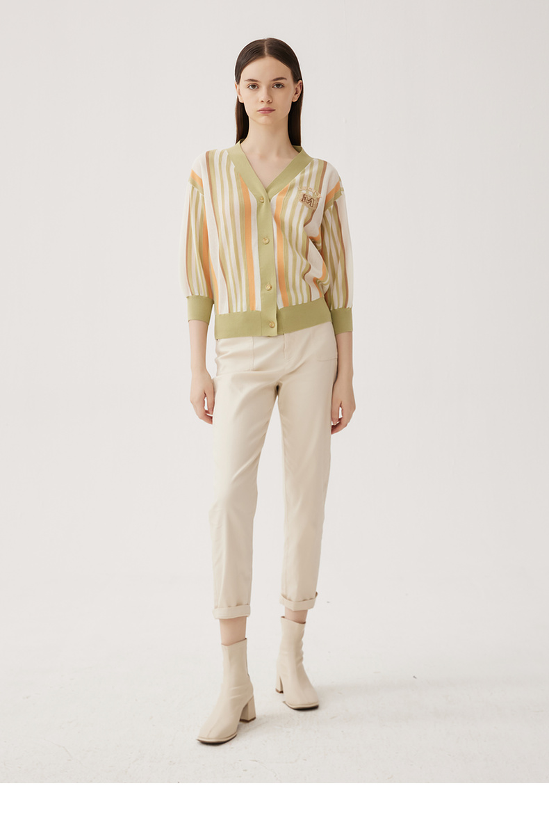 谜底针织开衫分袖女2024秋季新品文艺风彩条V领短款毛衫243MZ1261