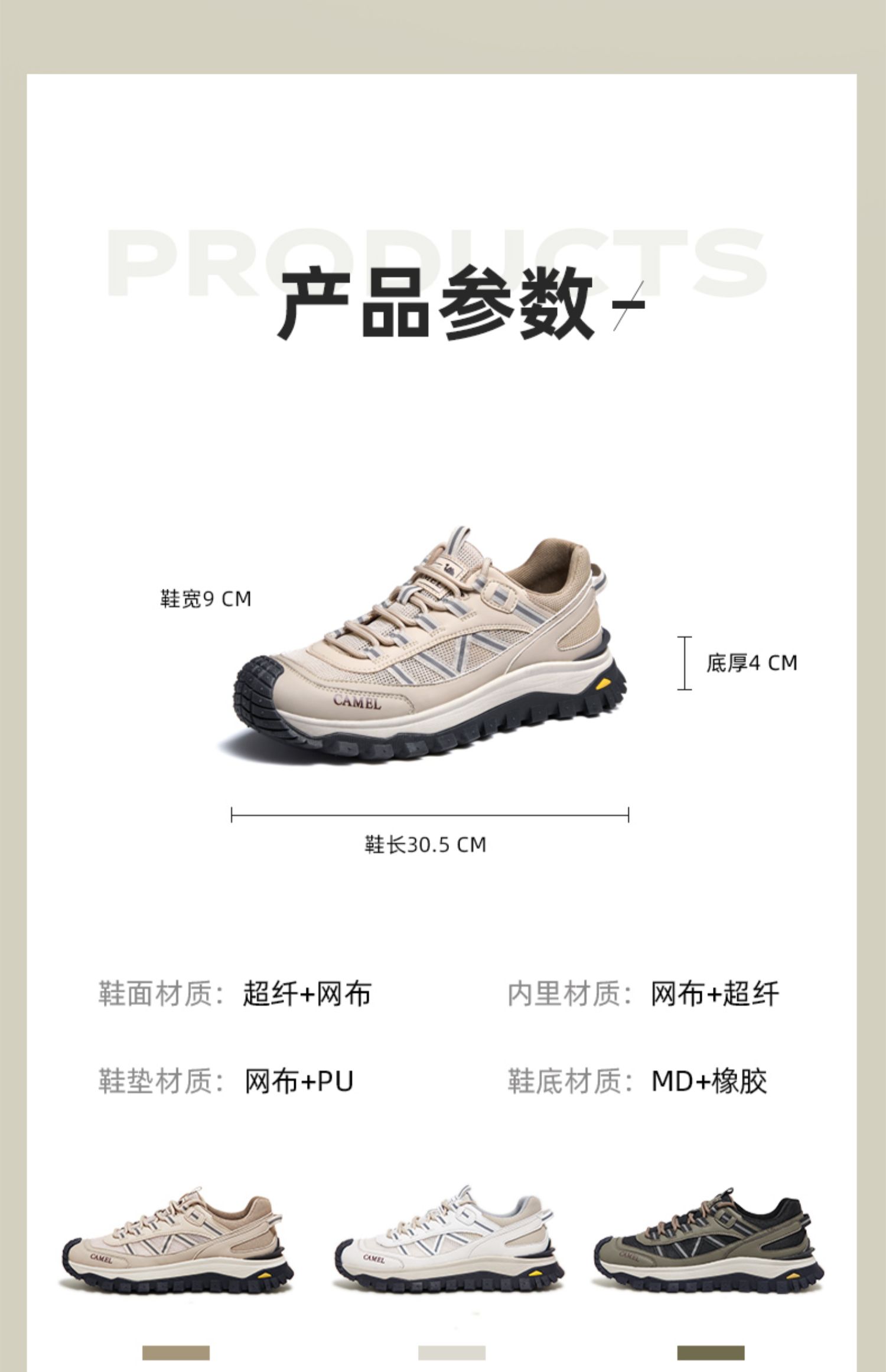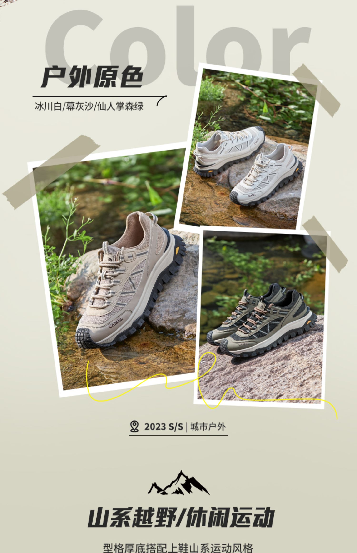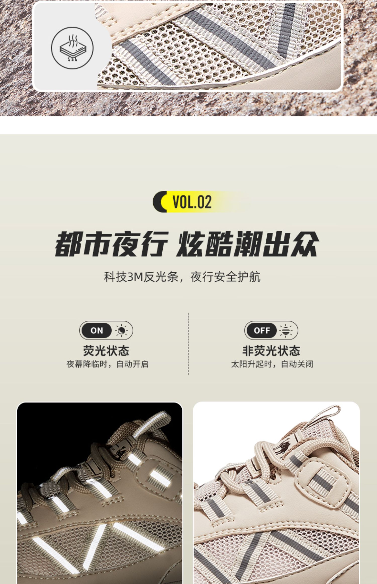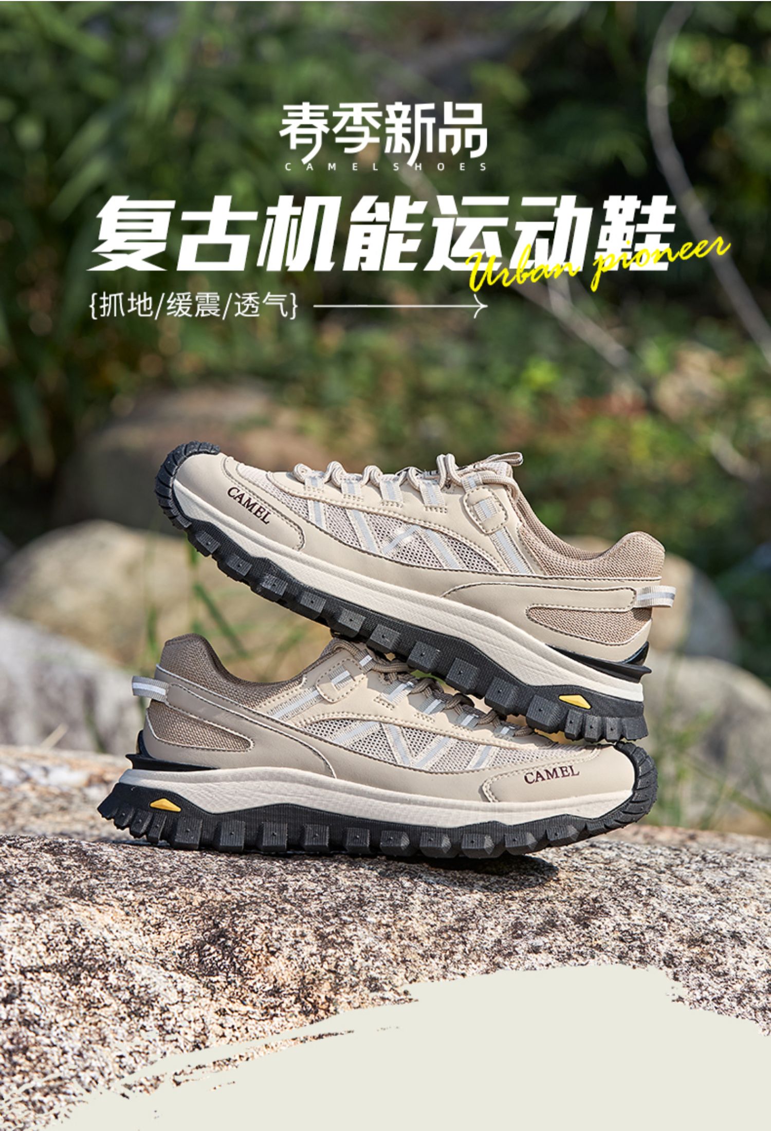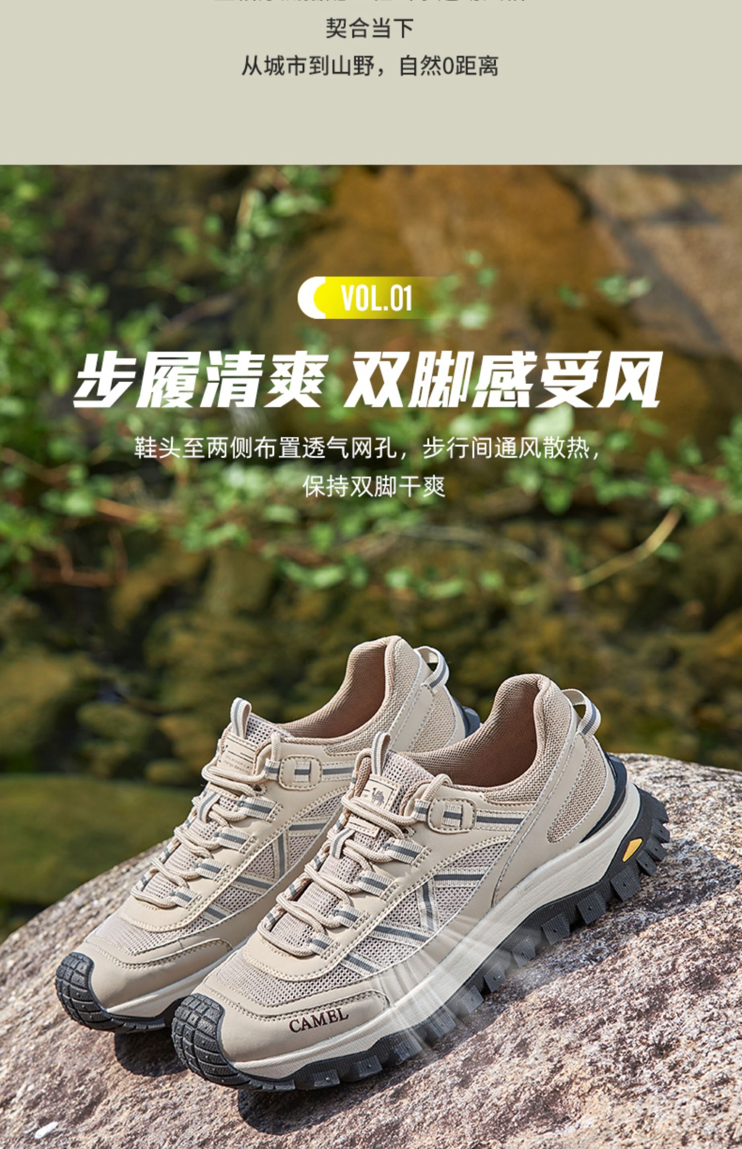 骆驼2025春夏季3M反光厚底缓震城市户外网面轻徒步鞋 G13S342069