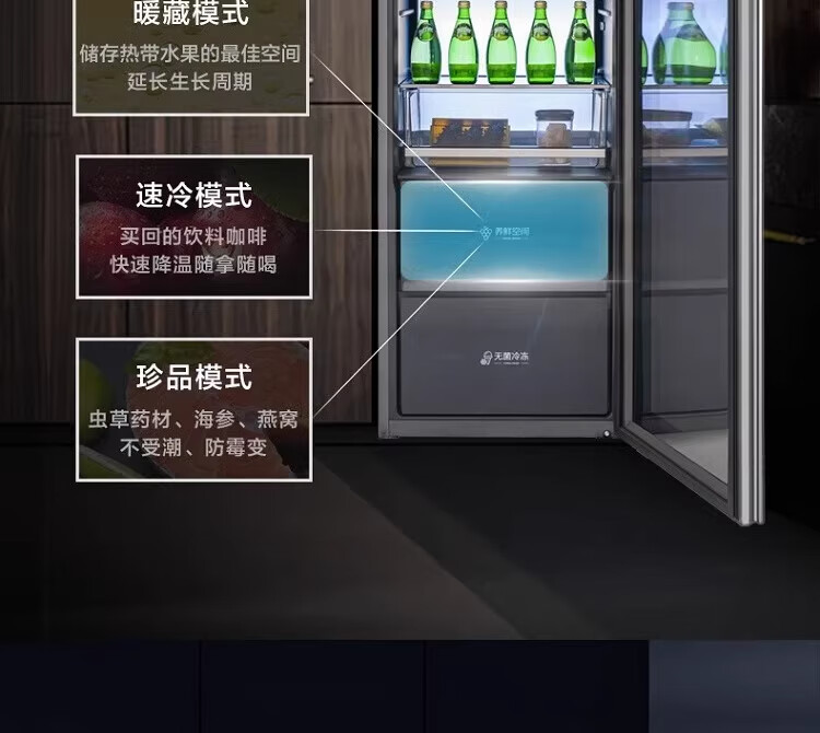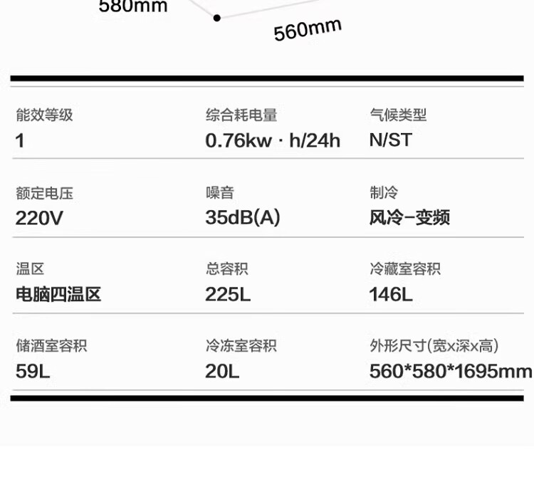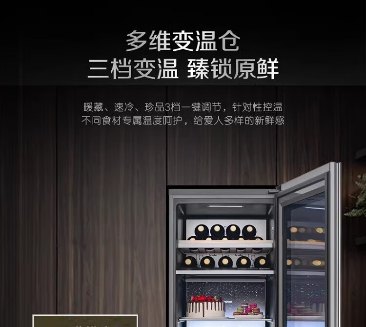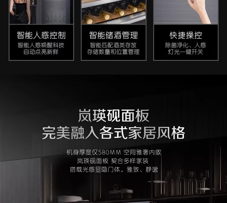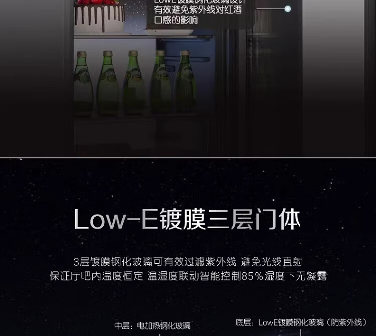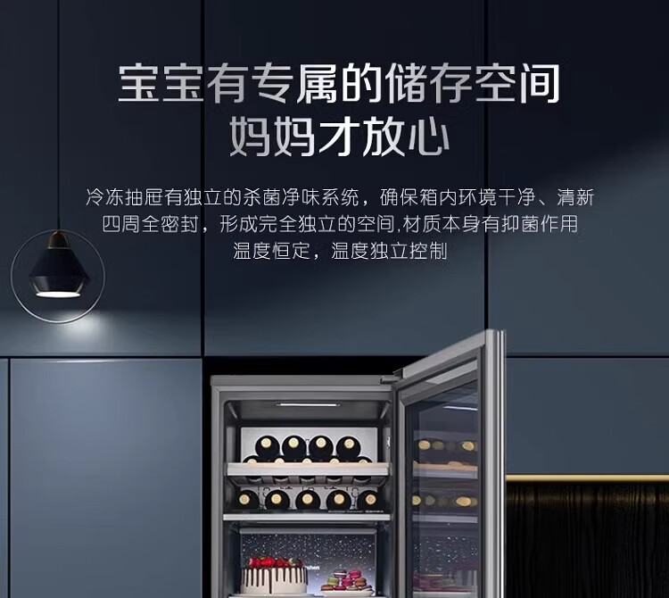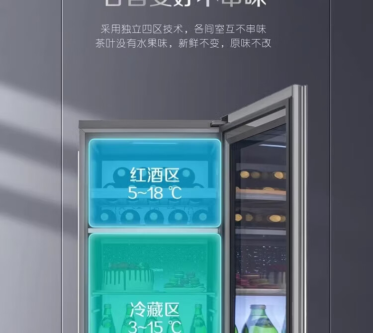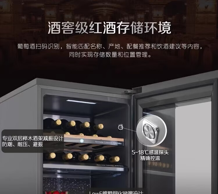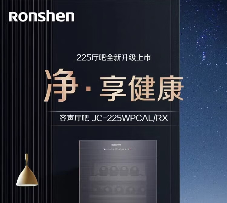 容声225升家用冰吧茶叶柜雪茄柜红酒柜冷藏冷冻双系统IDP主动除菌智能感应透视窗 JC-225WPCAL/RX