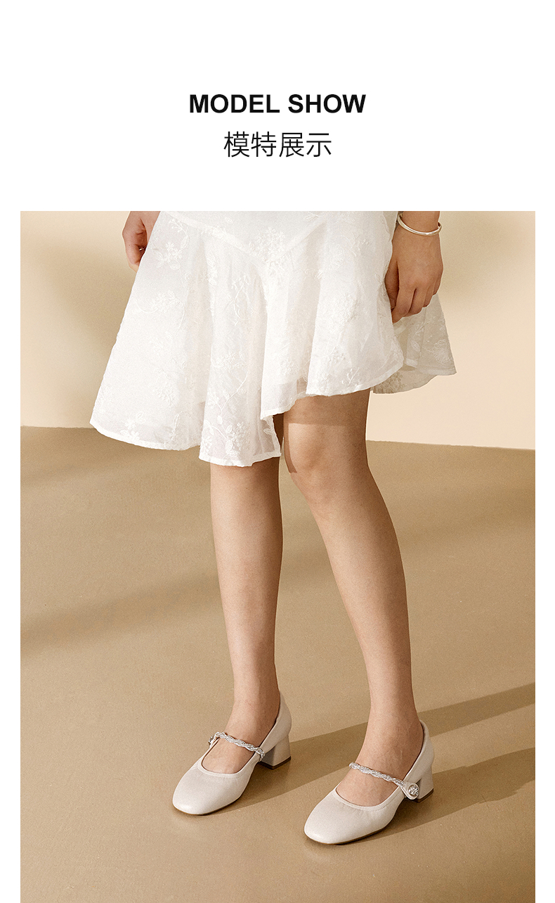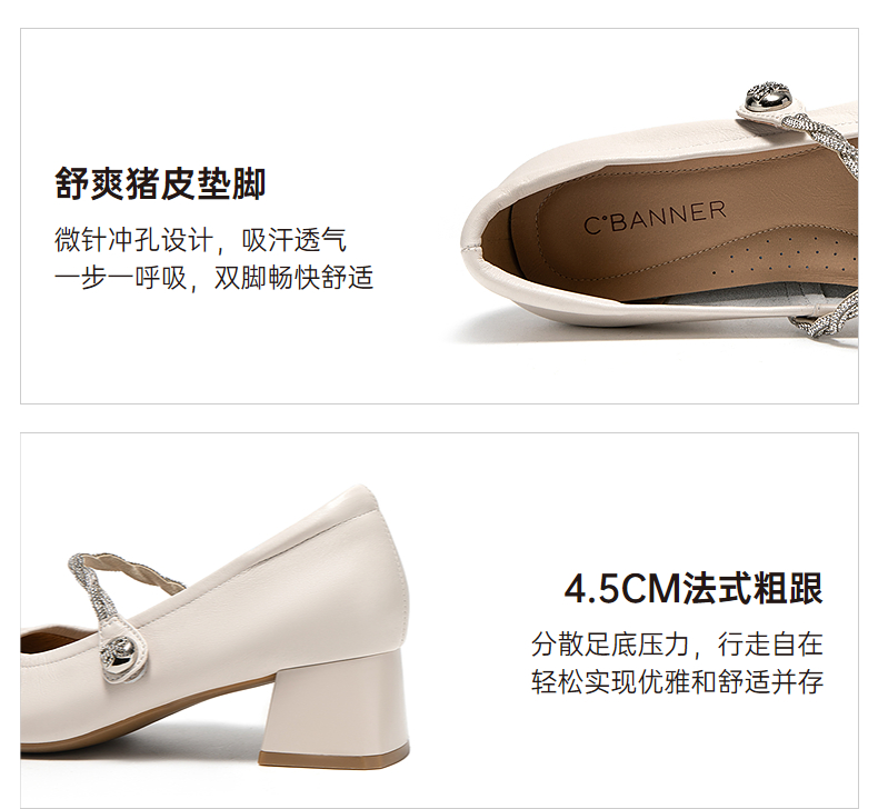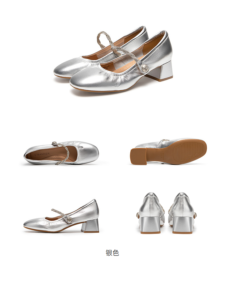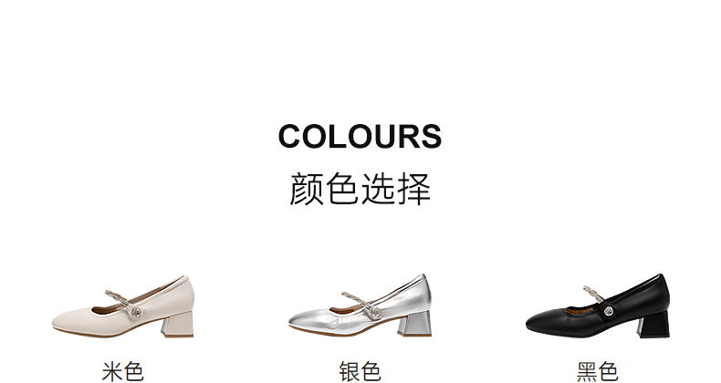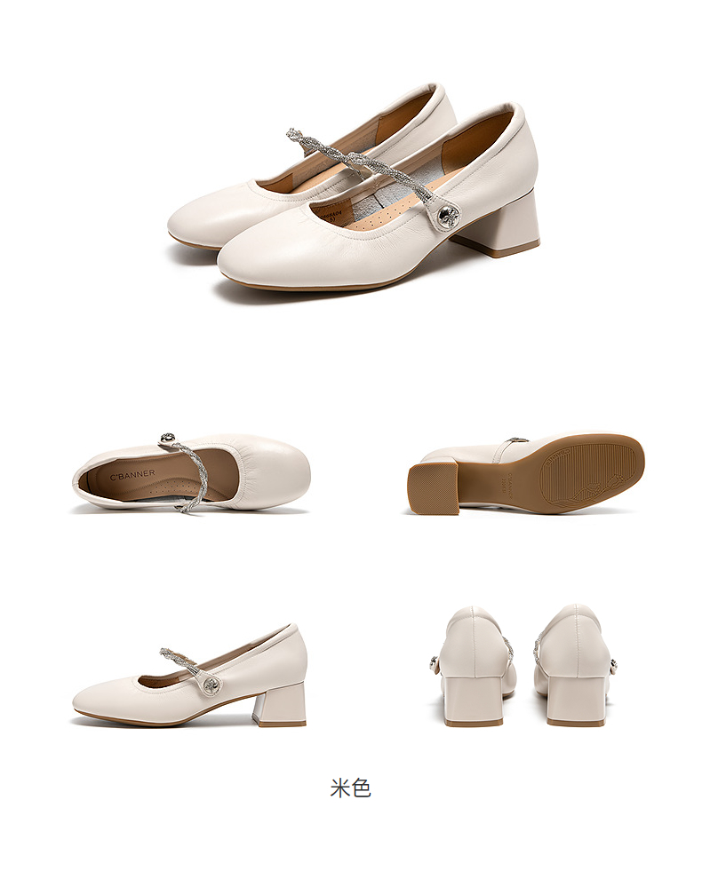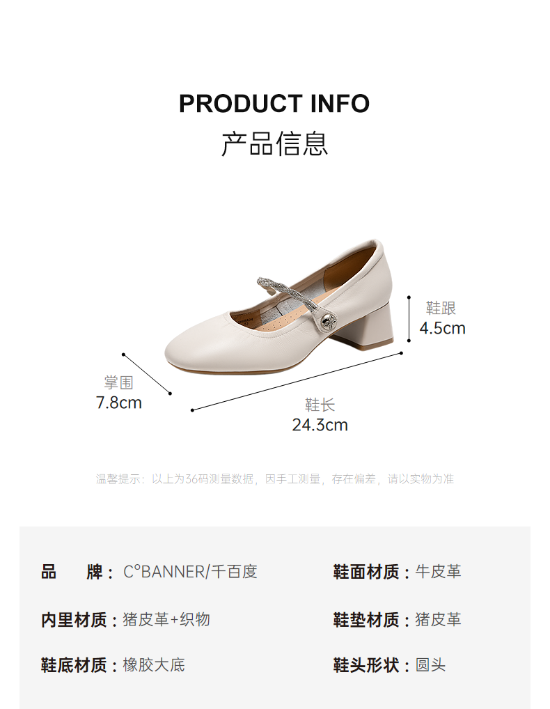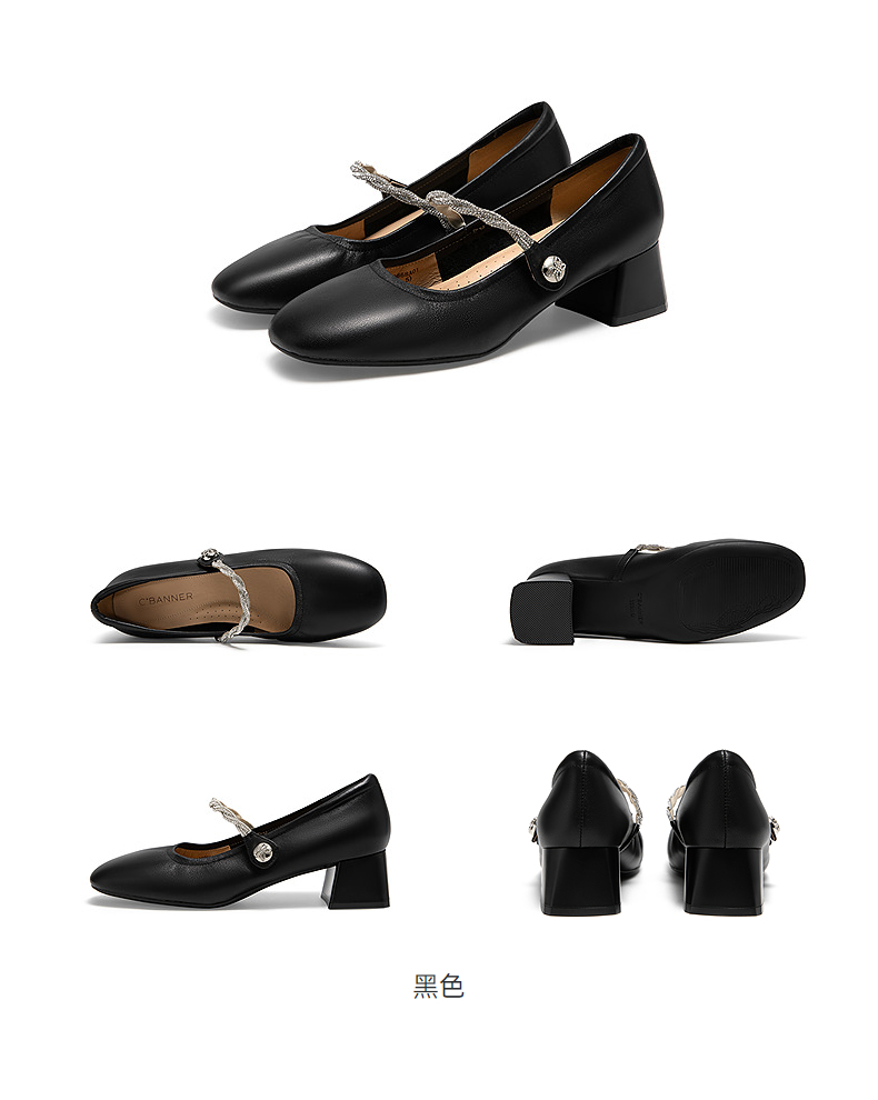 千百度法式粗跟玛丽珍鞋女款真皮通勤正装高跟鞋单鞋A25110868