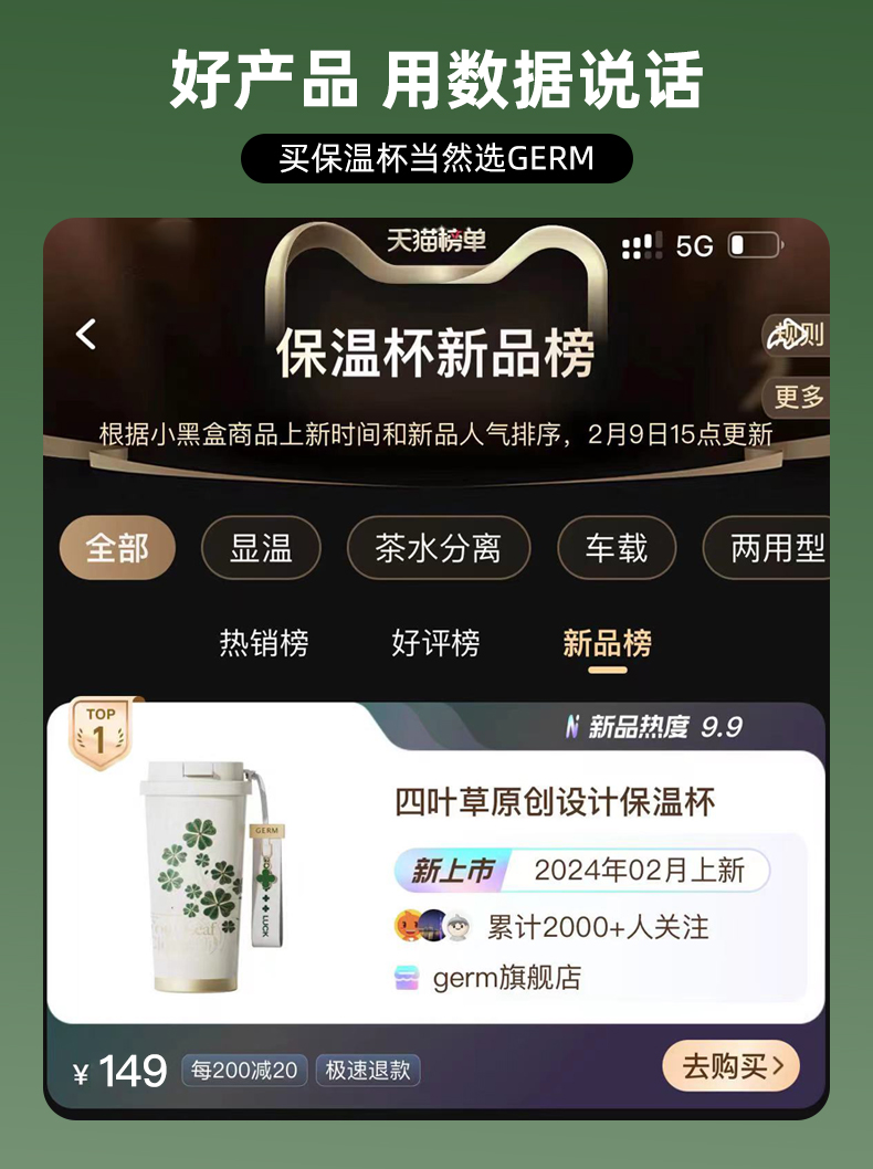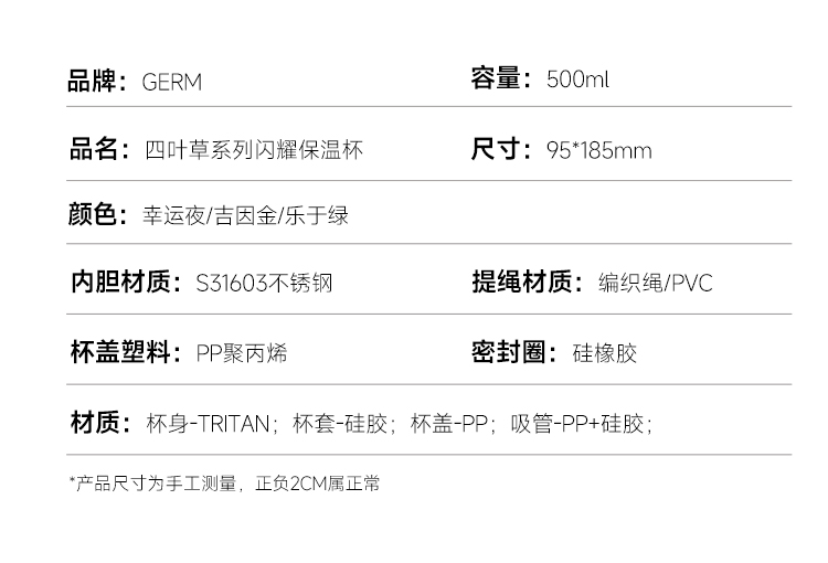 A-GERM-23AW-B76格米-四叶草闪耀保温杯500ml