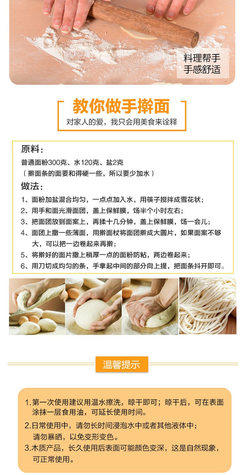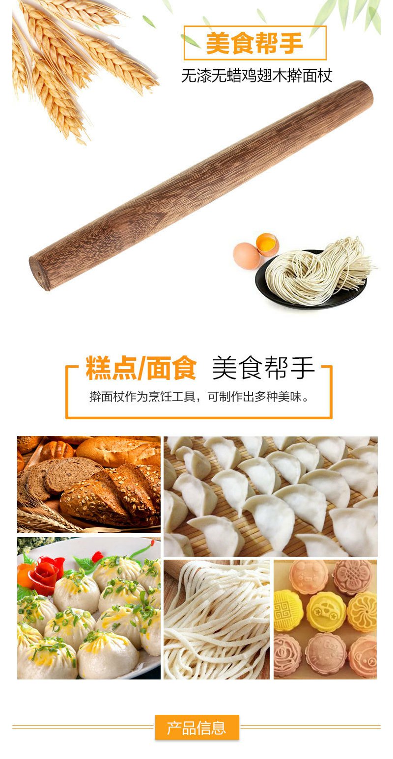 达乐丰鸡翅木擀面杖实木杆面棒擀饺子皮器烘焙家用38CM