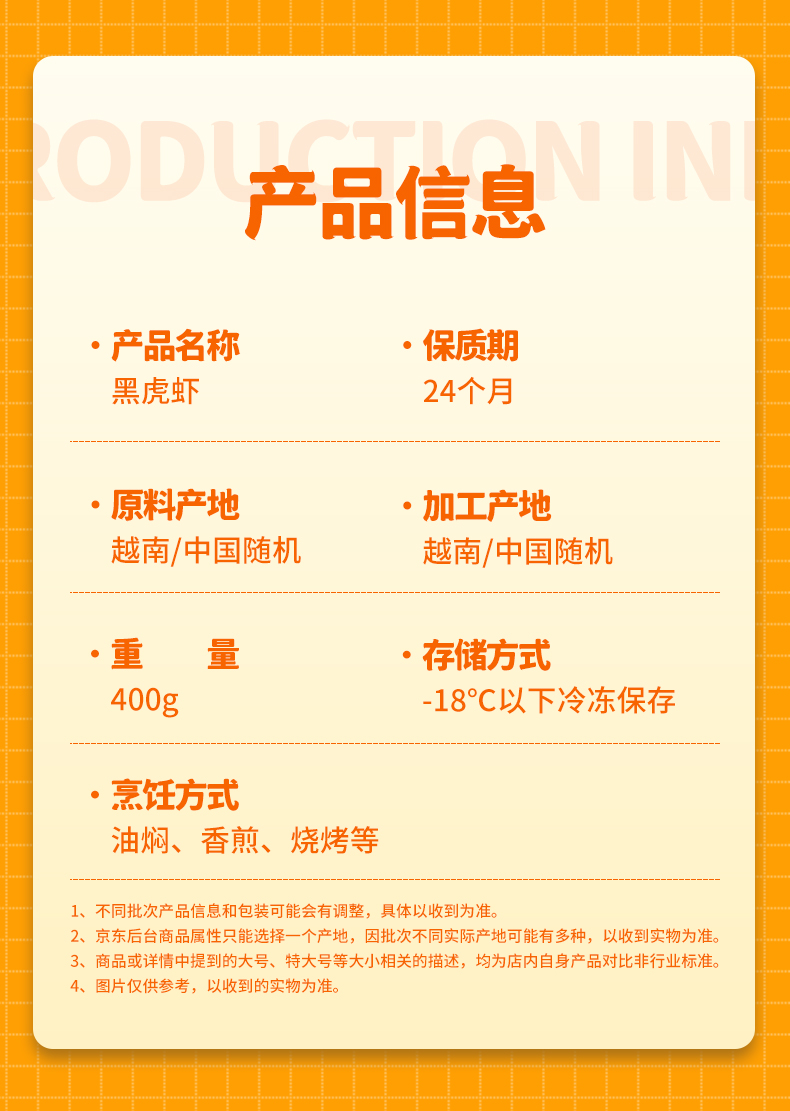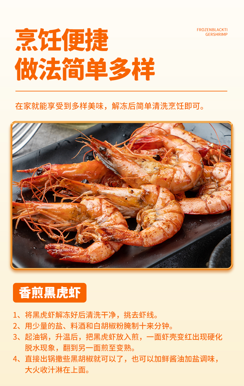 弹指鲜生活冻黑虎虾400g(16-20只)*4袋