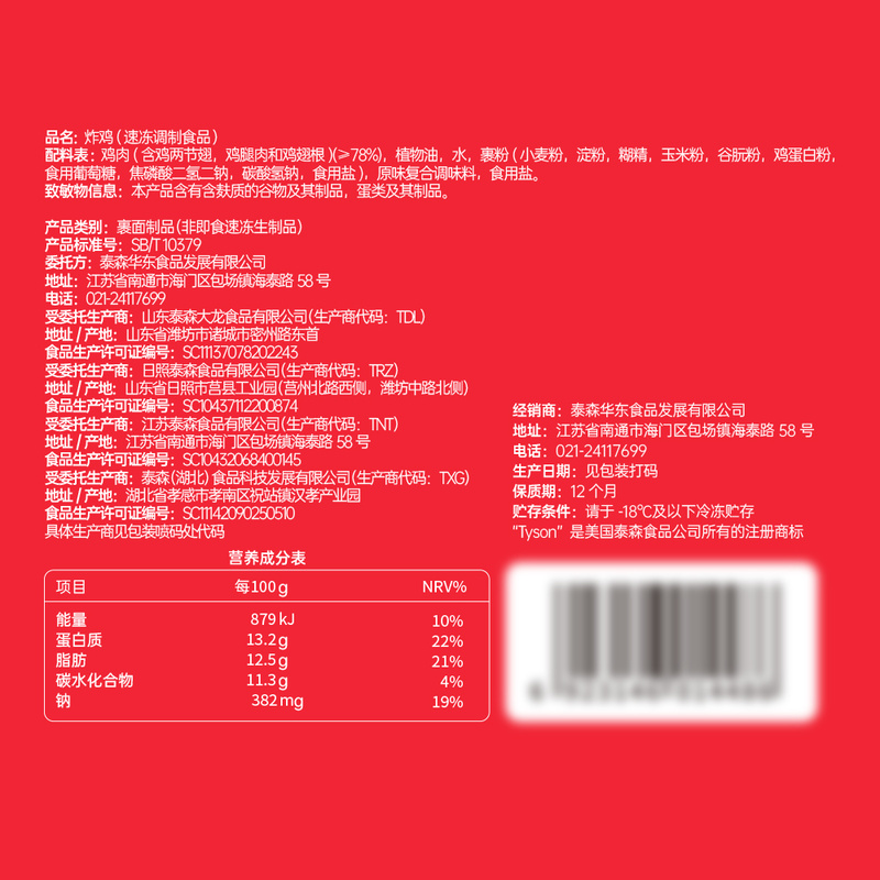 泰森派对炸鸡组合(韩式风味)1.2kg 山姆会员店商品非商品原因不支持退款