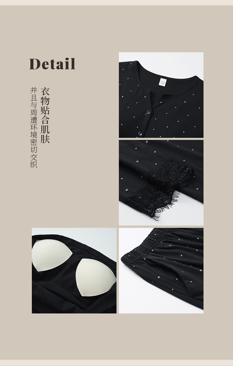 秋冬季女士睡衣波点蕾丝可外穿带胸垫长袖长裤甜美可爱家居服套装 商品图3