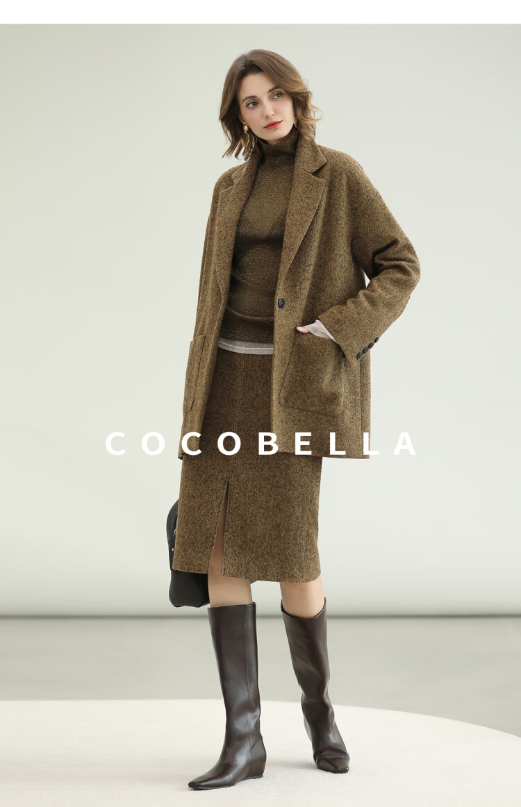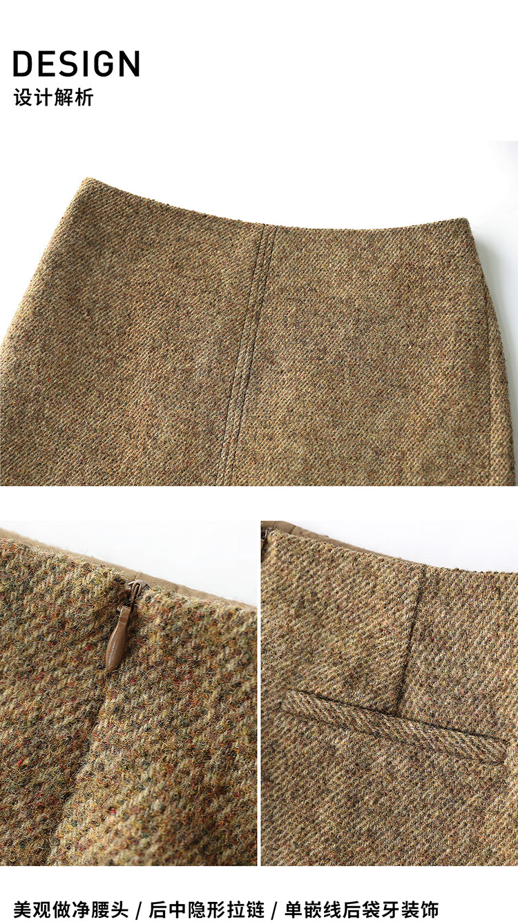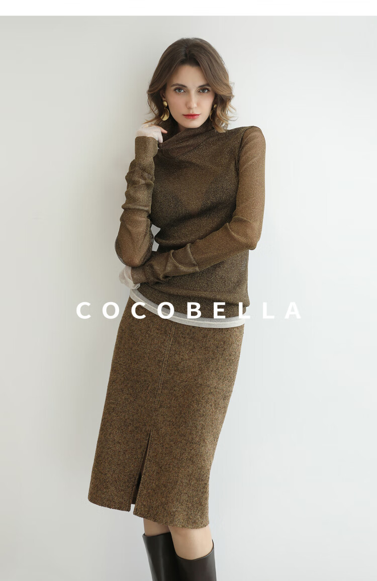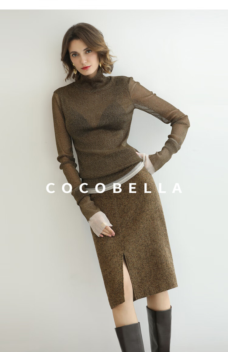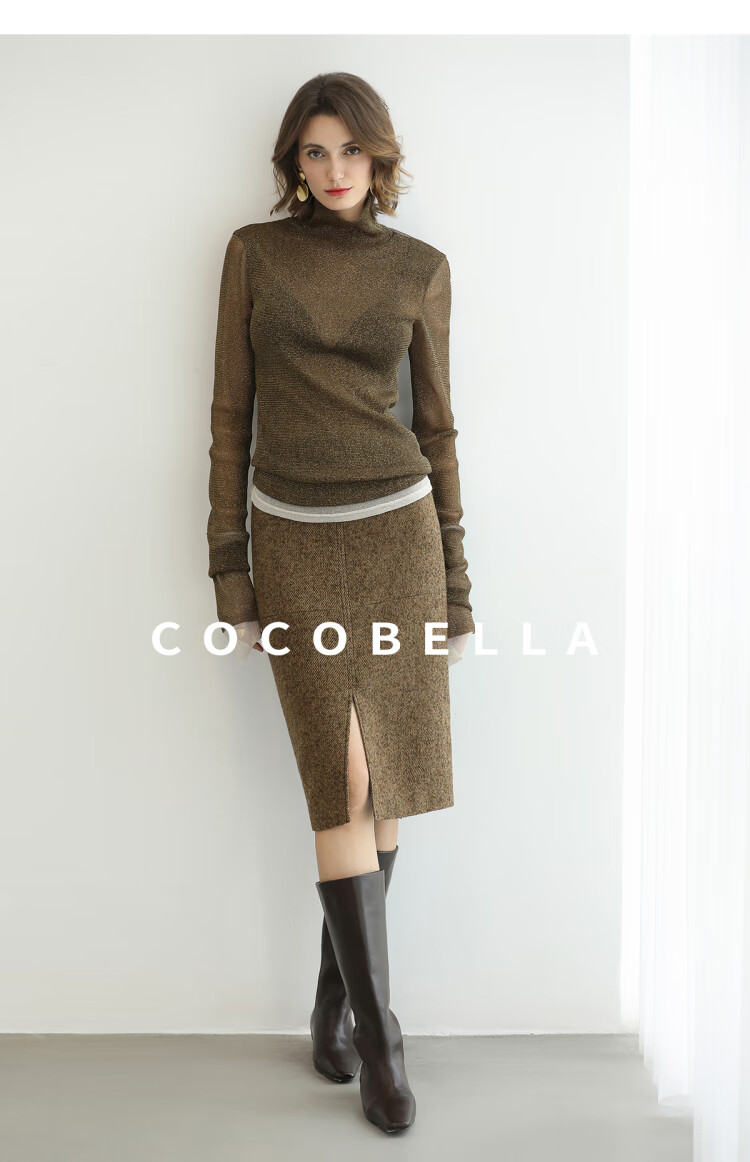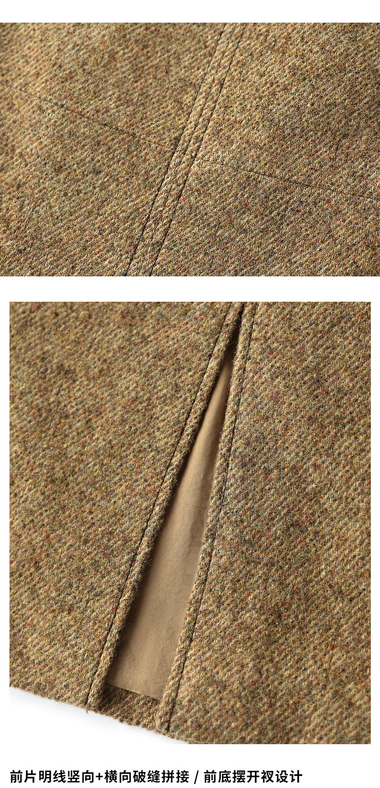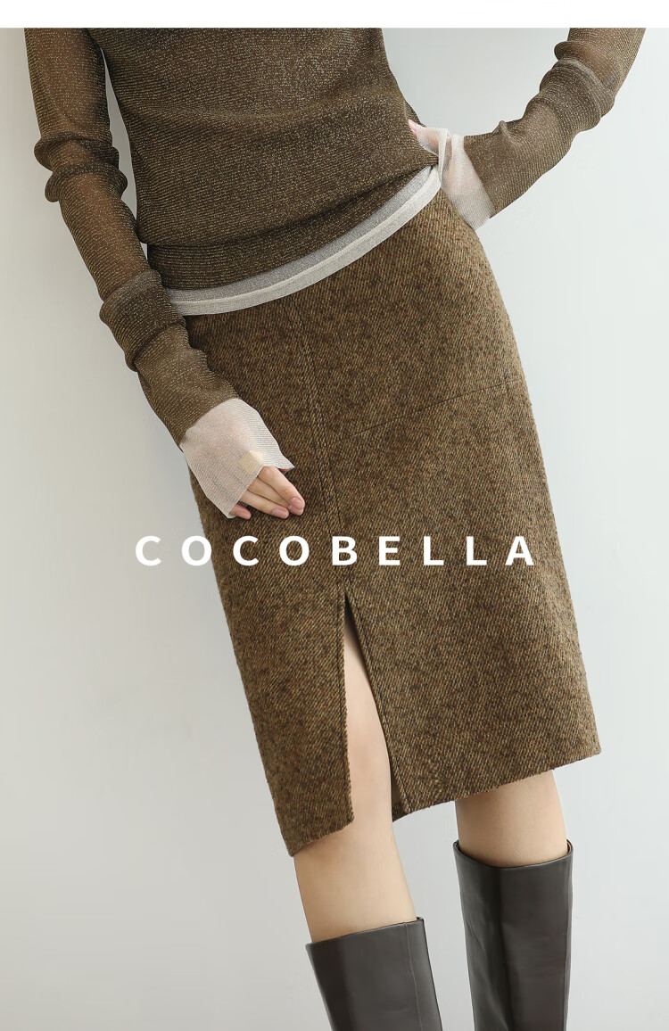 COCOBELLA气质美拉德羊毛半身裙女秋冬前开叉直筒短裙HS0063